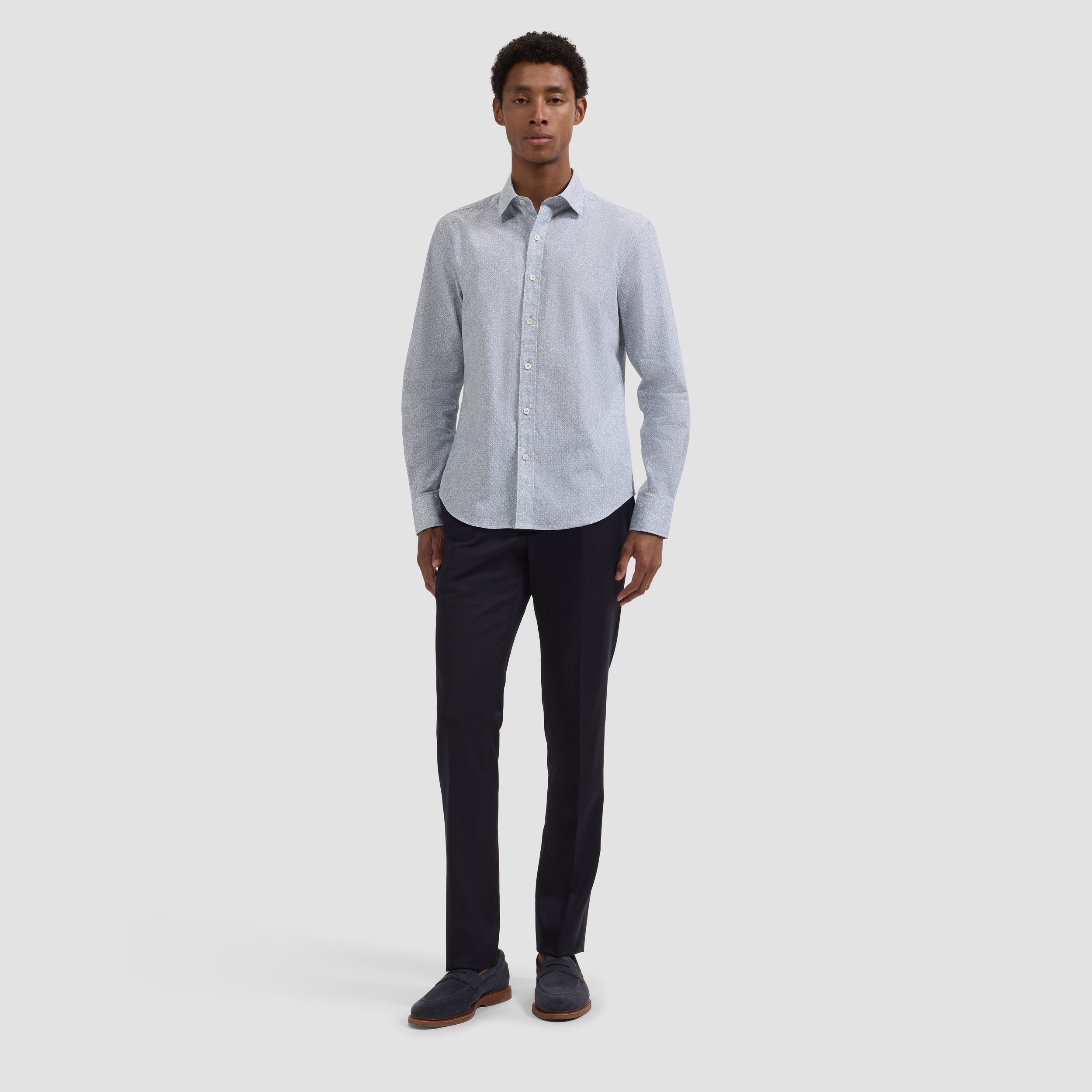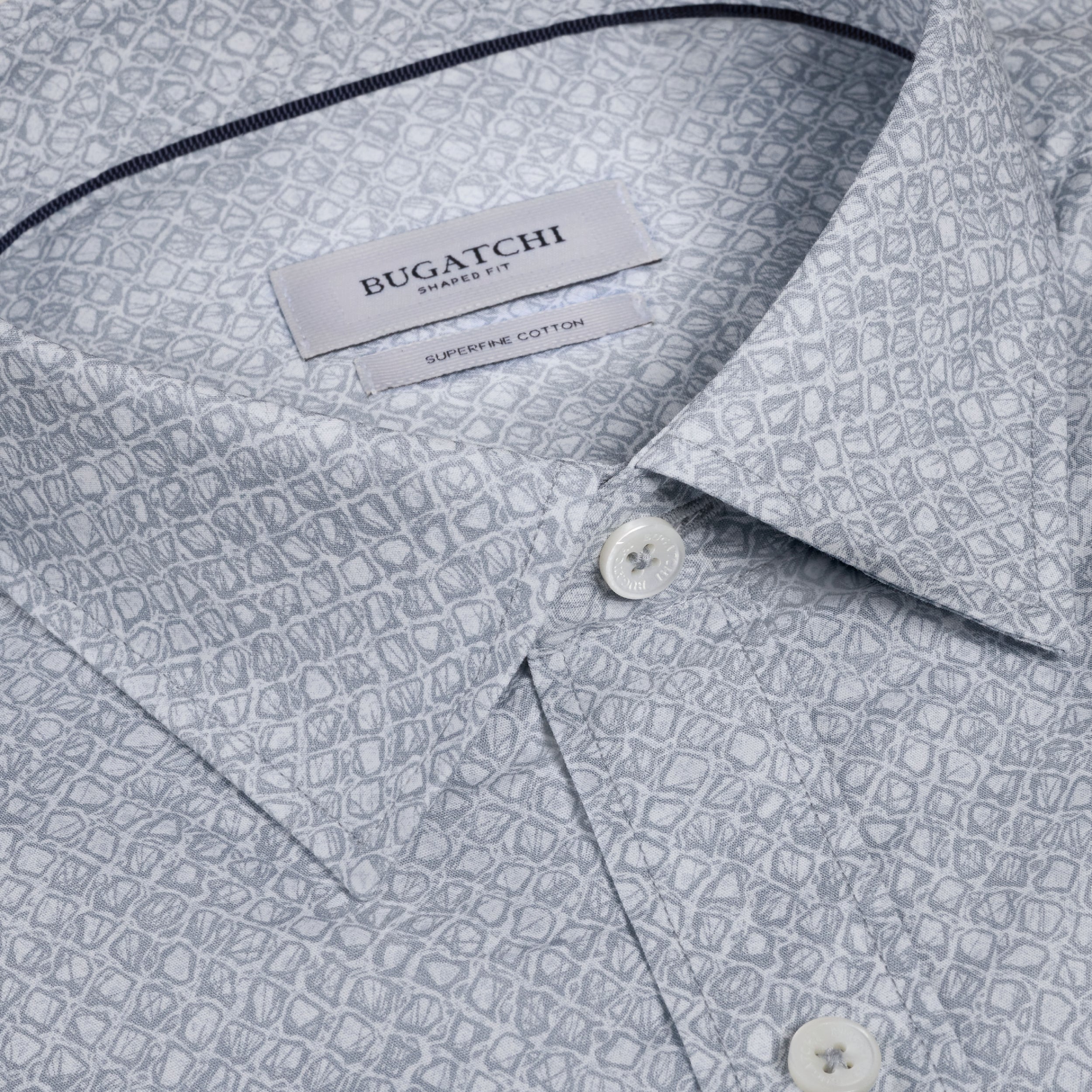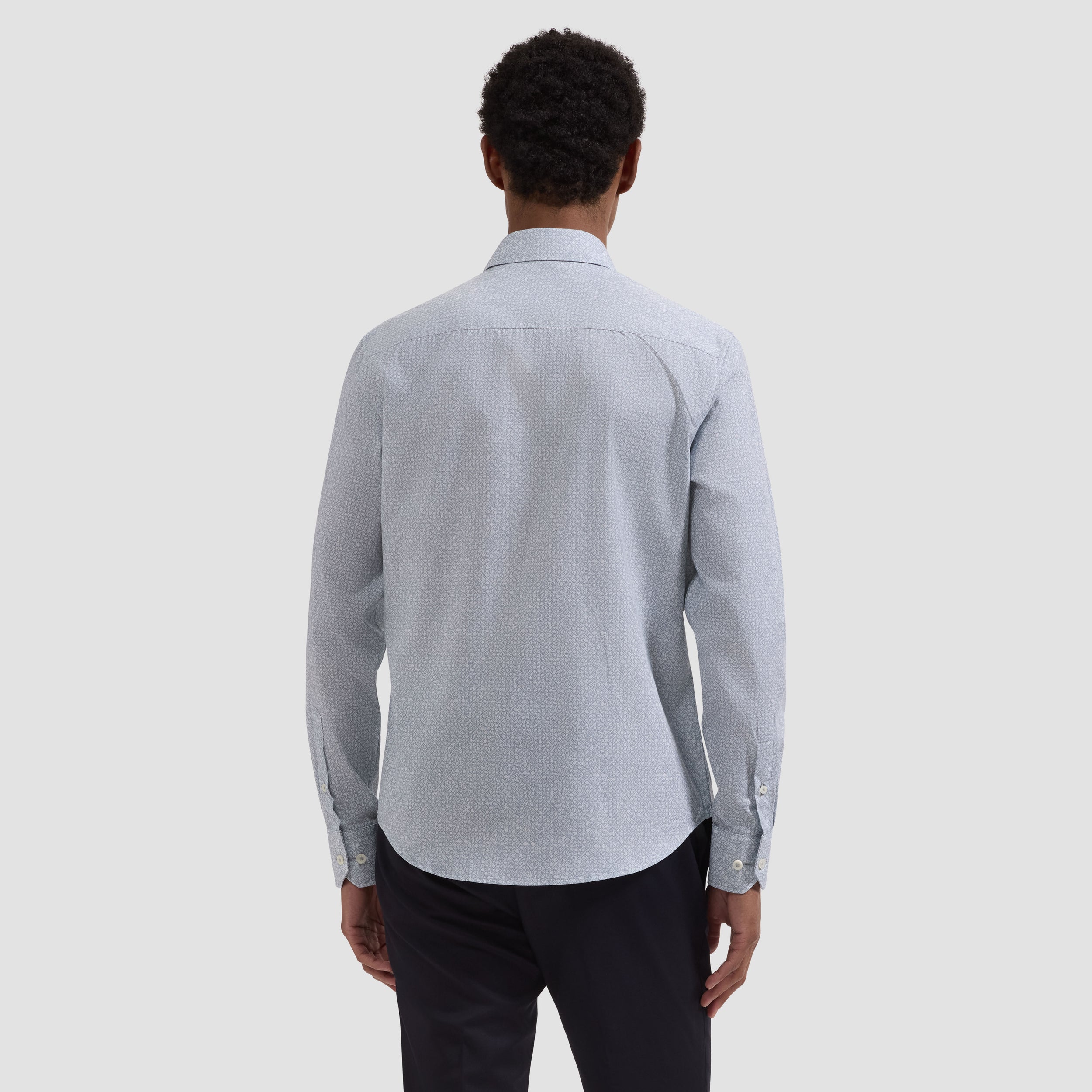 The Julian long-sleeve shirt is crafted from premium 100% cotton fabric in a geometric sketch diamond print. Designed with a point collar, genuine mother-of-pearl buttons, and adjustable notched cuffs that also convert for cufflinks. A versatile shirt that looks polished whether tucked or untucked.