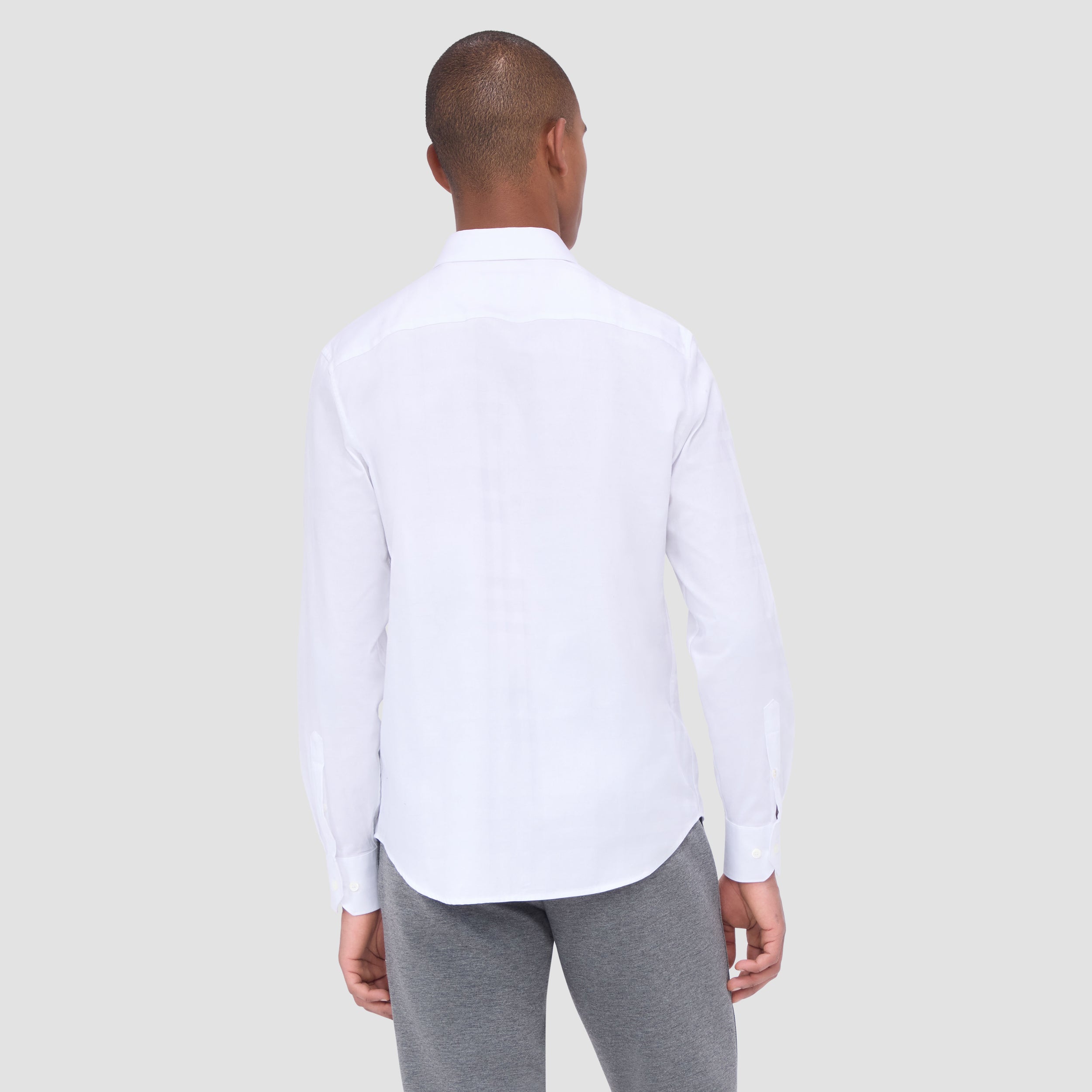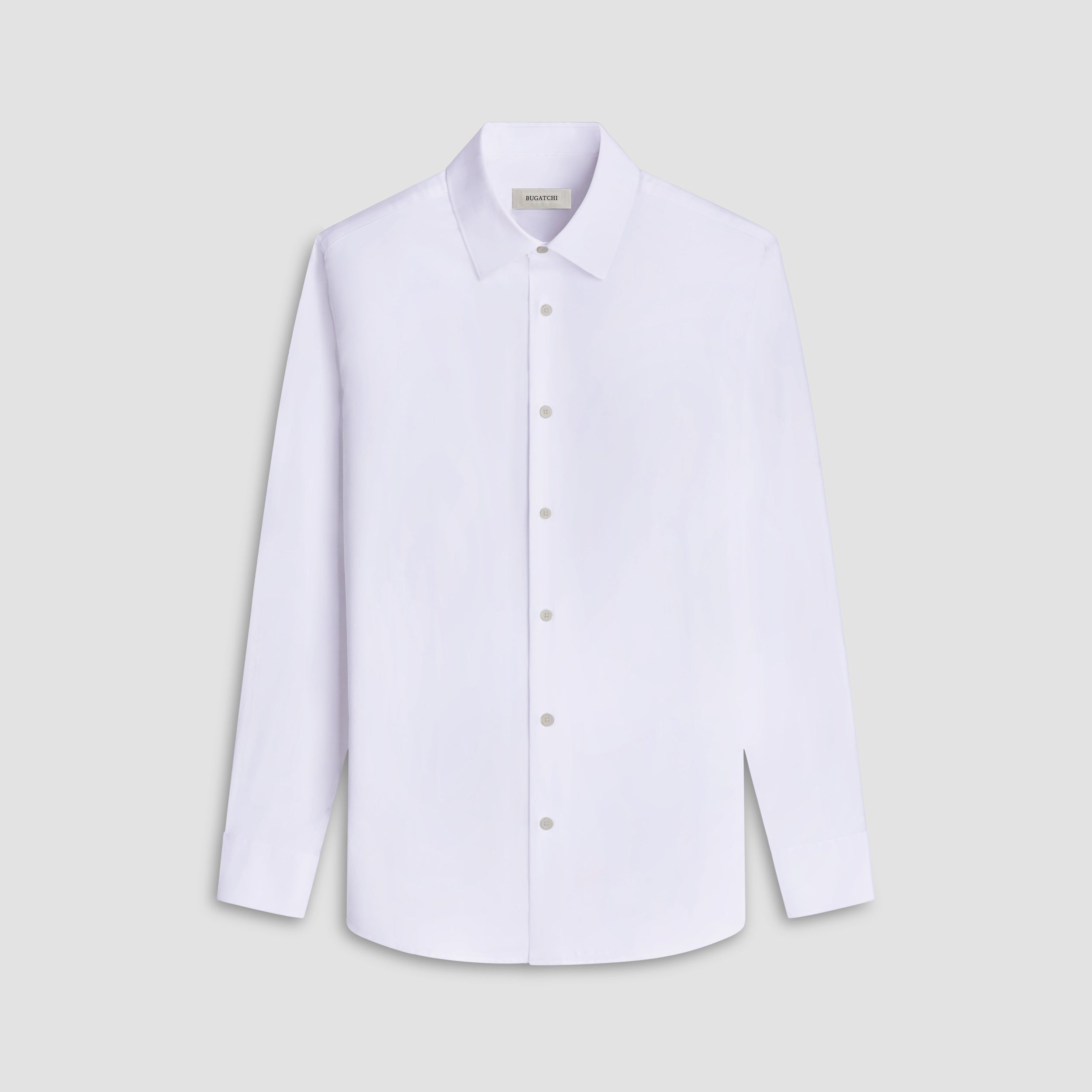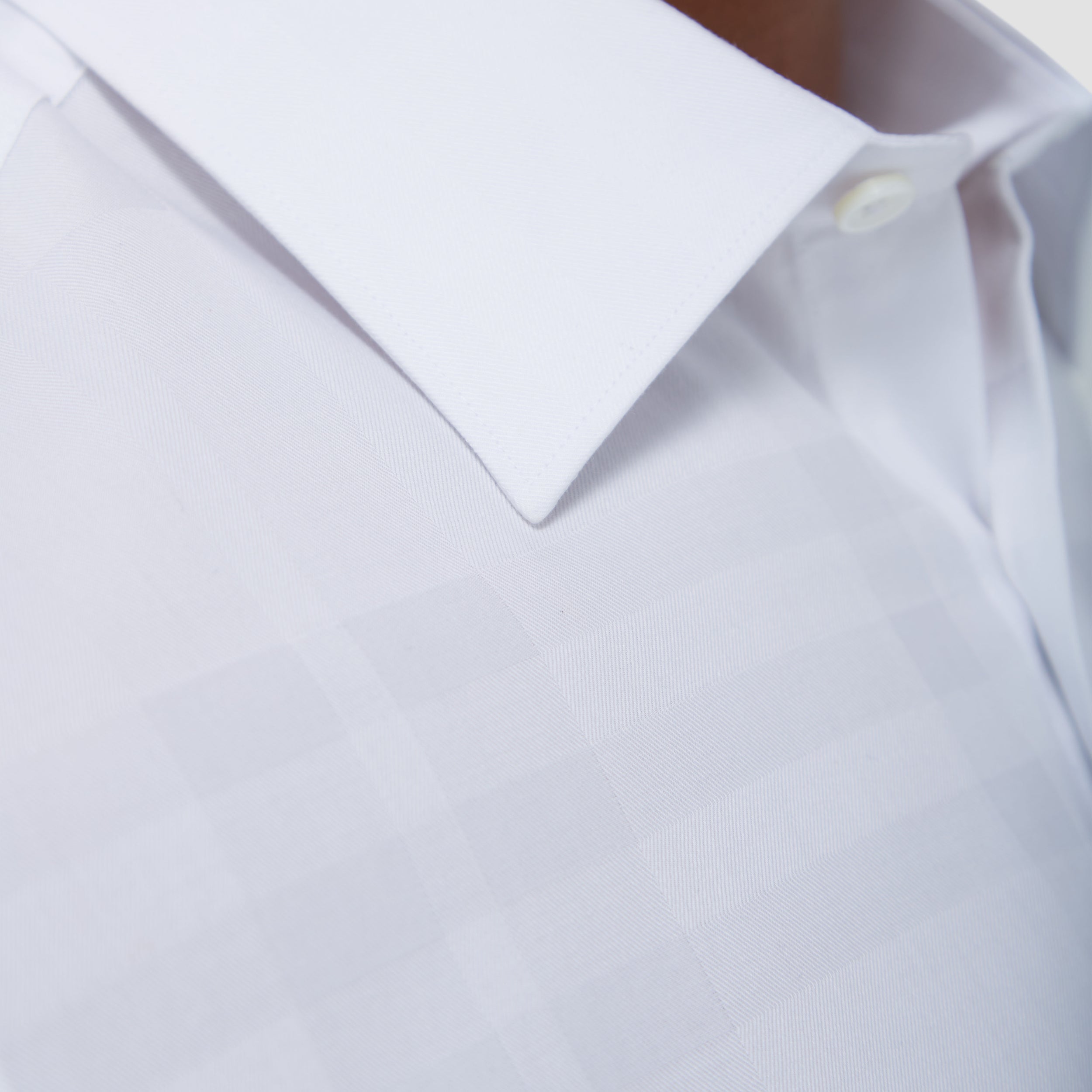 The Julian shirt in COMFORT STRETCH cotton jacquard is a contemporary and versatile shirt with optimal comfort and freedom of movement properties. Its timeless and sleek silhouette features long sleeves, a classic point collar, adjustable notched cuffs, a curved hem, and a tonal jacquard melange pattern. Wear it tucked or untucked with chinos and jeans for a smart-casual vibe, or with tailored trousers and a blazer for a formal occasion.