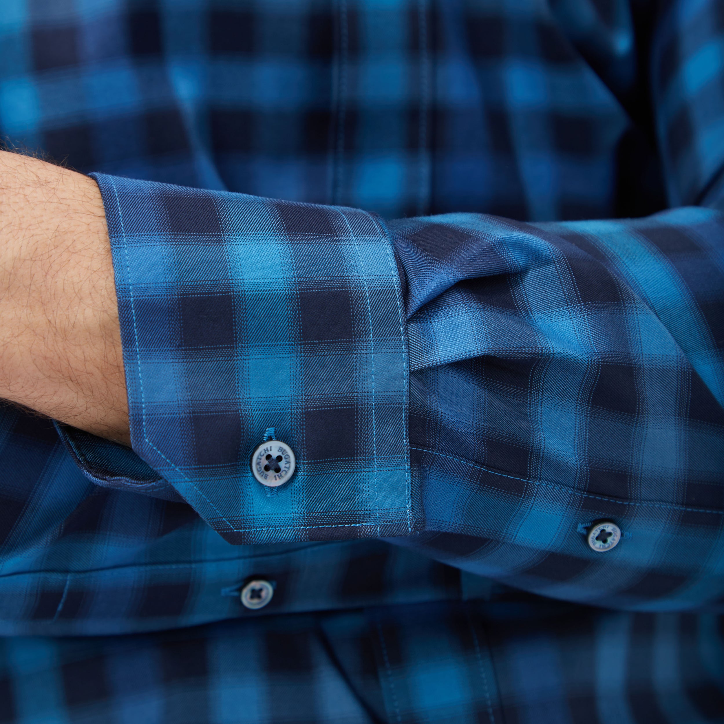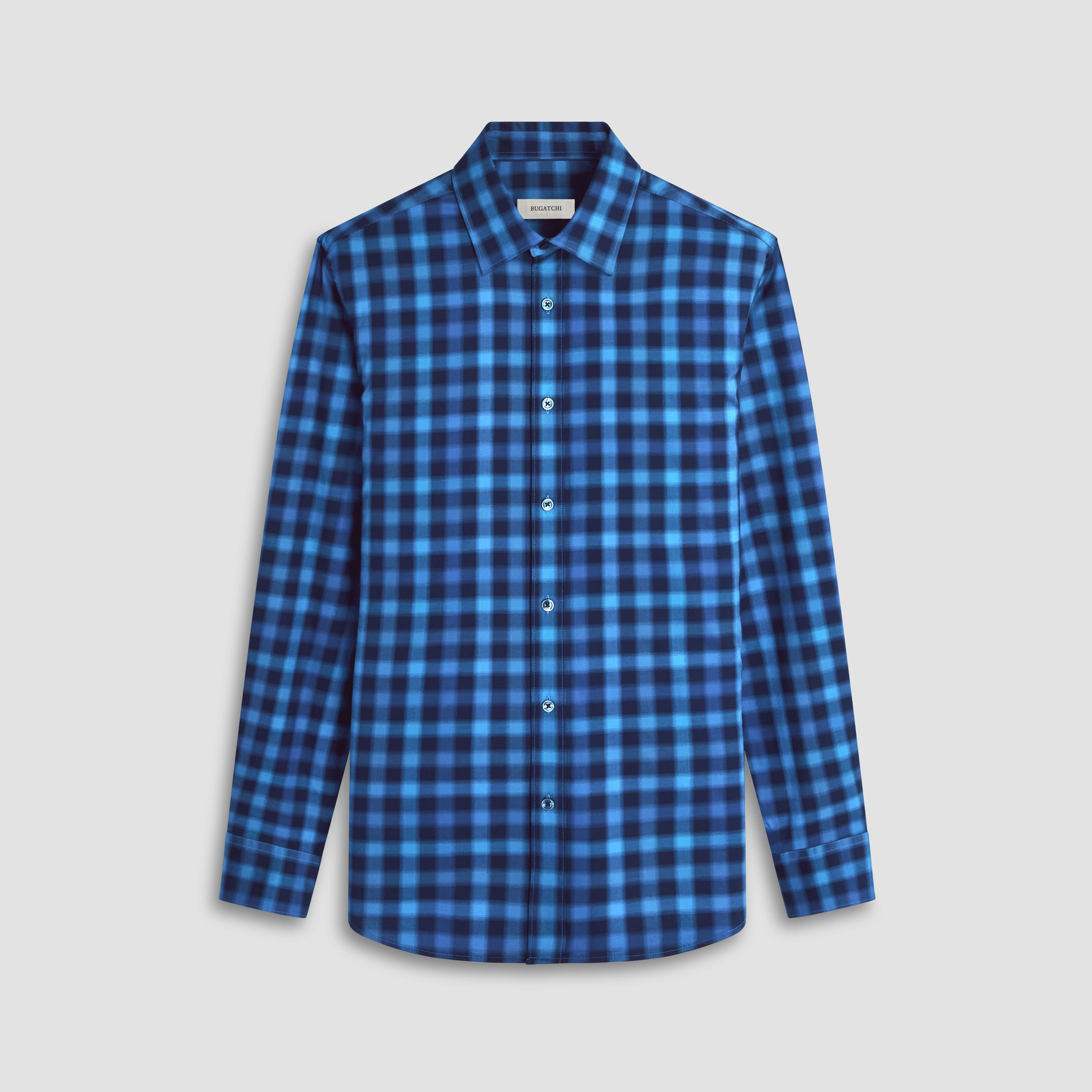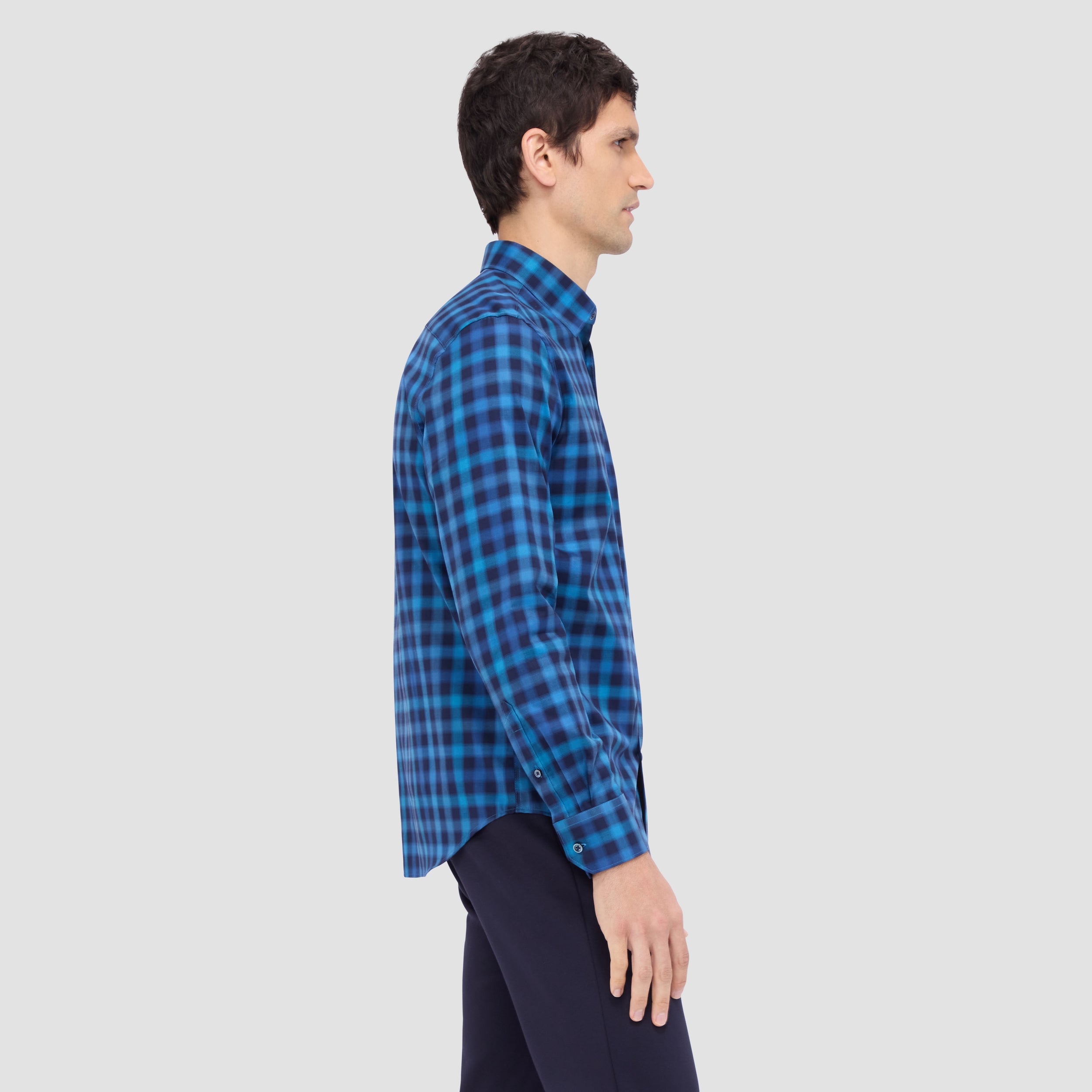 The Karl shirt in COMFORT STRETCH cotton is a contemporary and versatile shirt with optimal comfort and freedom of movement properties. Its timeless and sleek silhouette features long sleeves, a hidden button down collar, adjustable notched cuffs, a curved hem, and a traditional small check. Wear it tucked or untucked with chinos or trousers for a smart-casual vibe, or with jeans for a relaxed look.