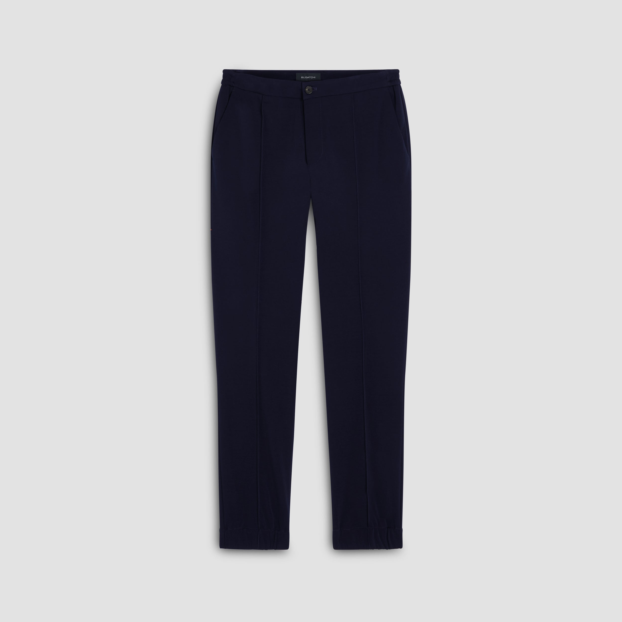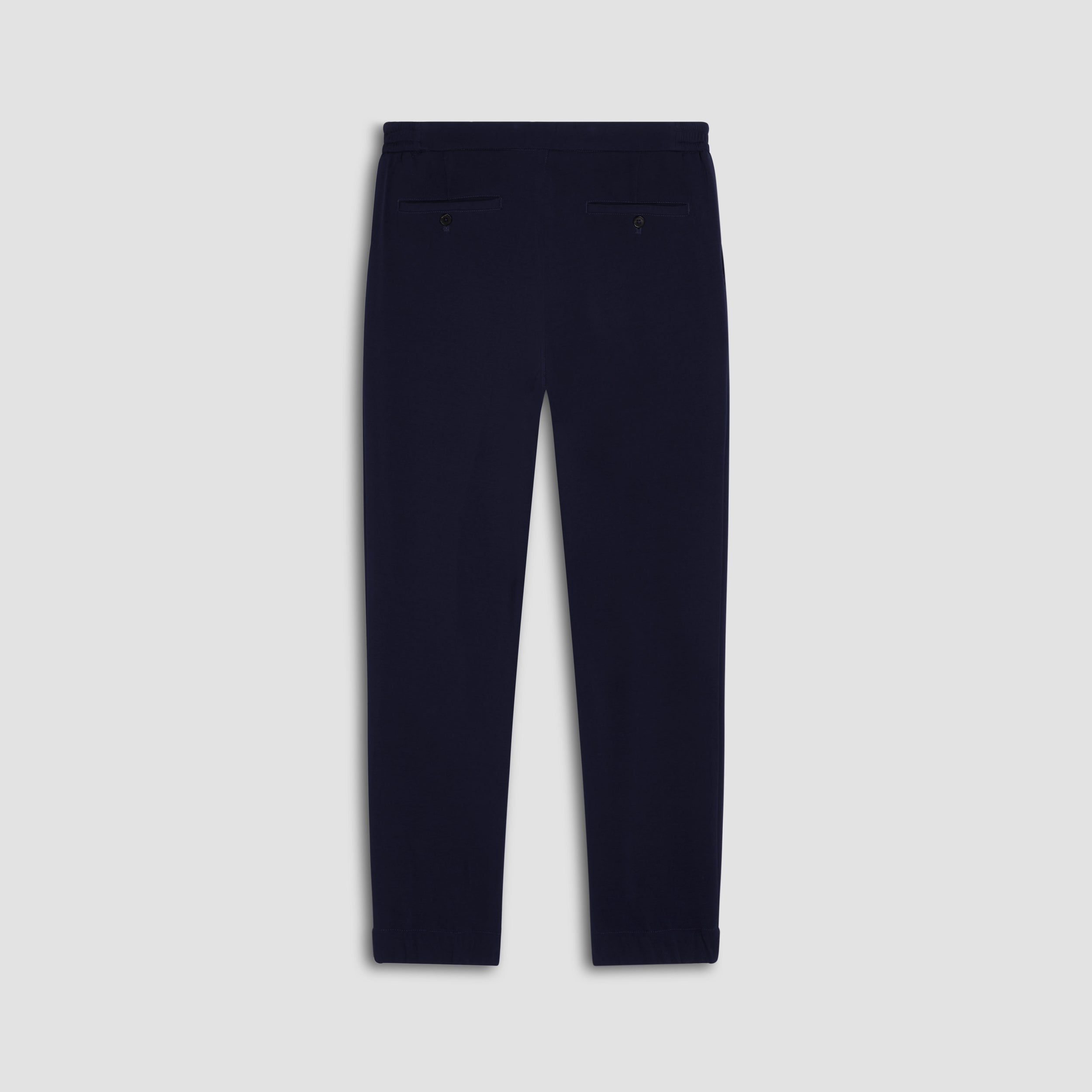 Slim lounge pant in stretch double knit blend with zipper and button fly, two slit side pockets, two buttoned back pockets and elasticized cuffs. Made in Italy.