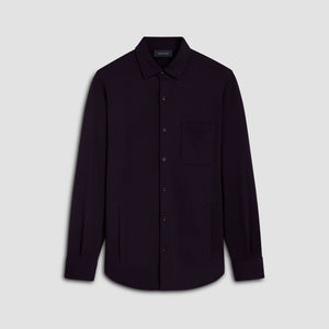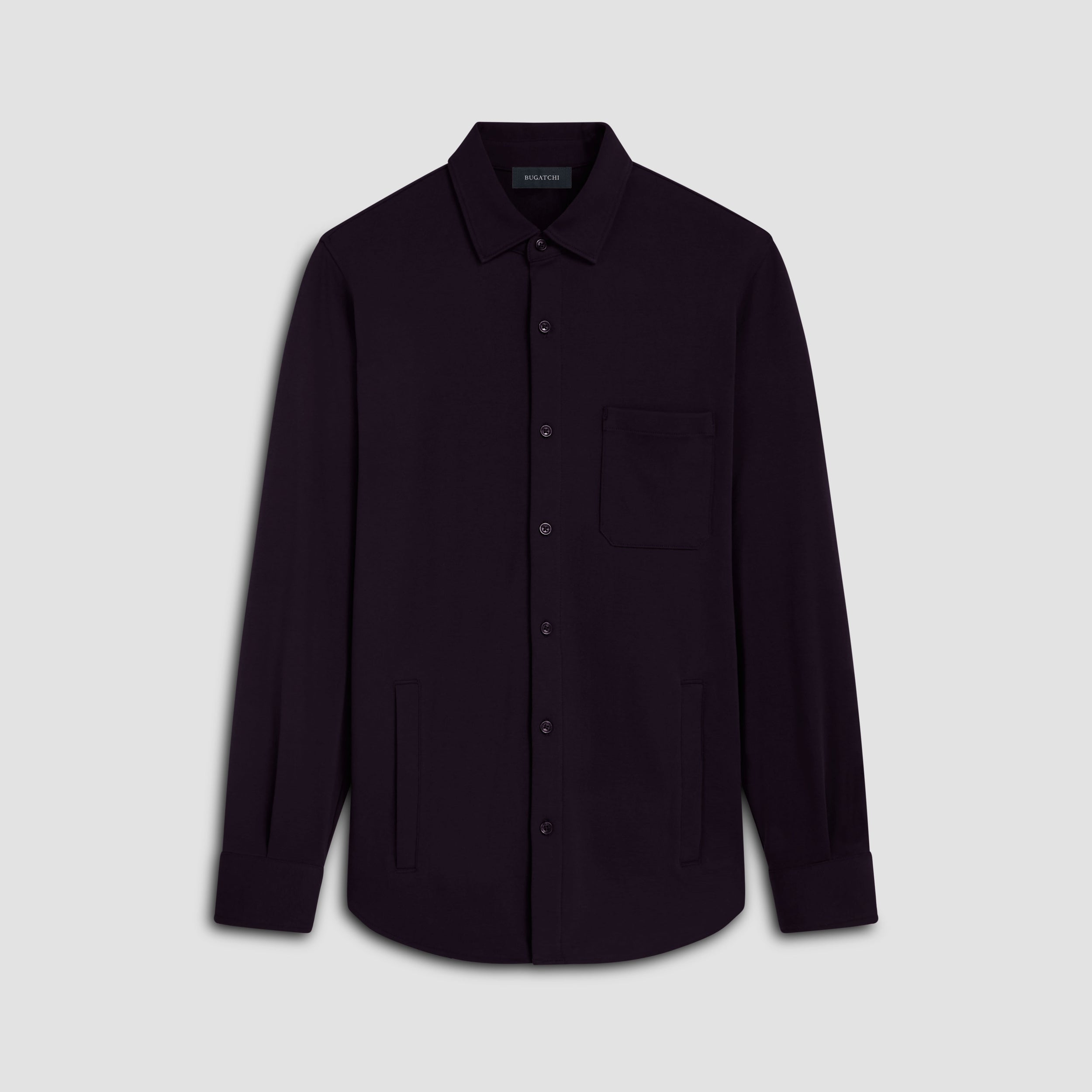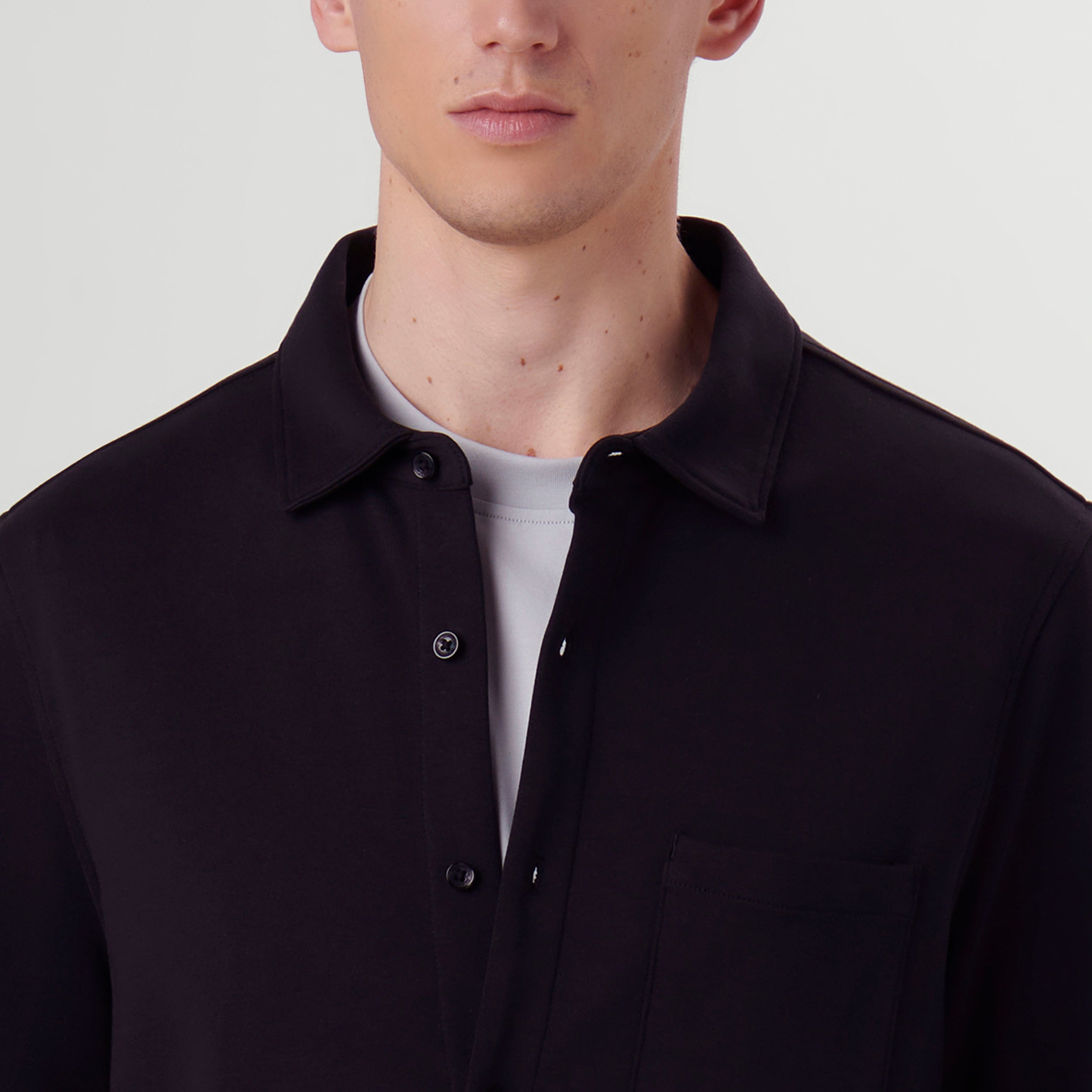 Solid knit shirt jacket in 100% cotton with full button closure , one patch chest pocket and two vertical pockets.