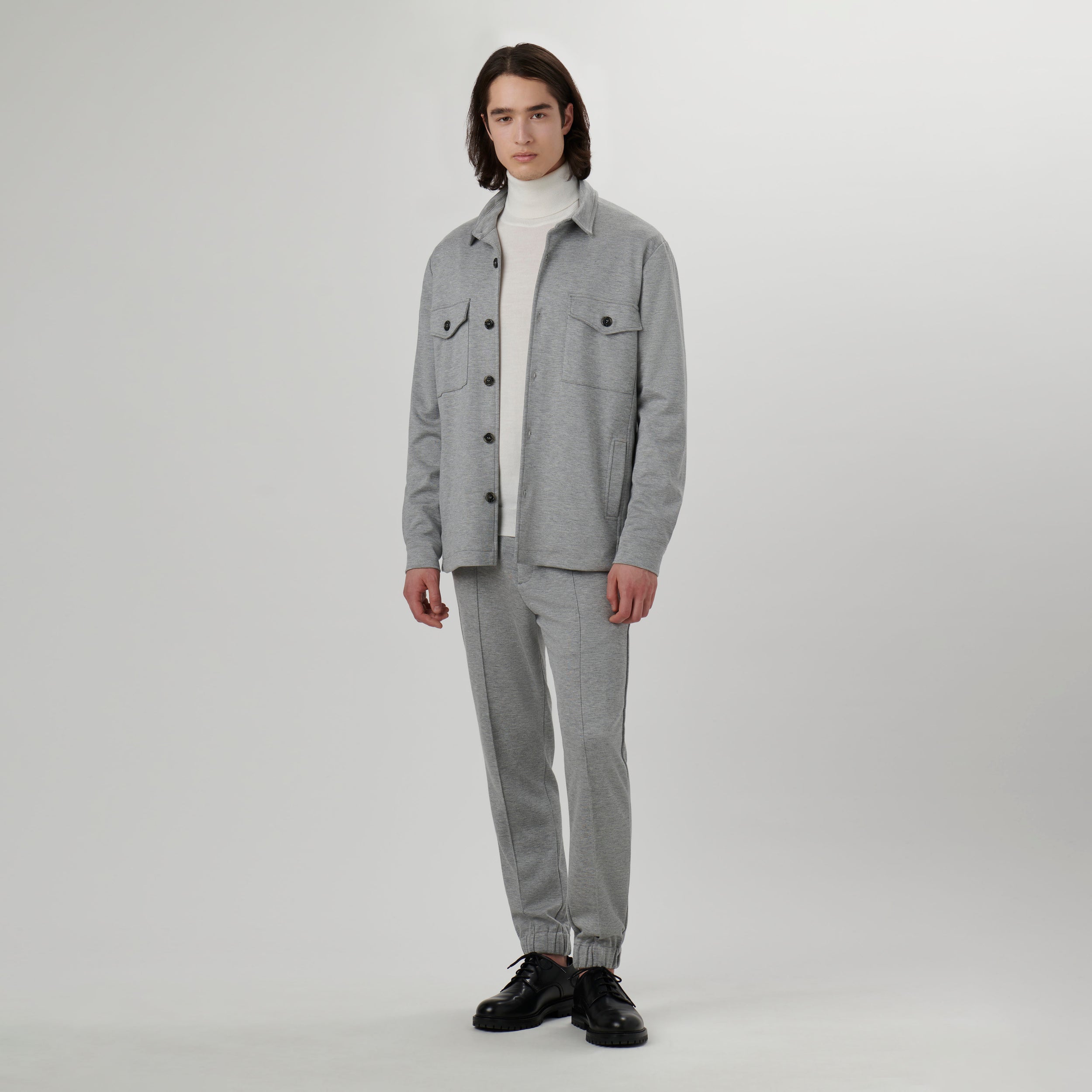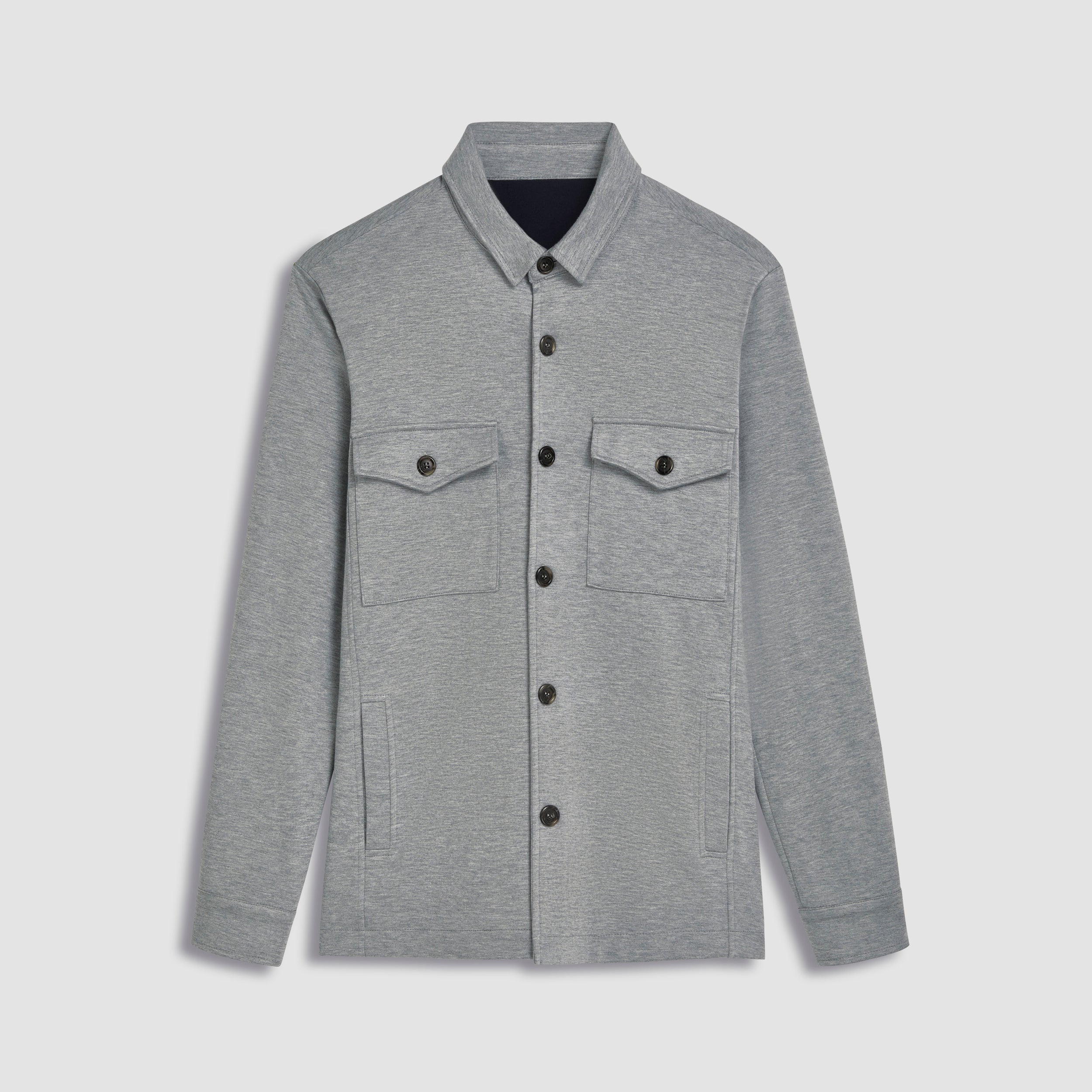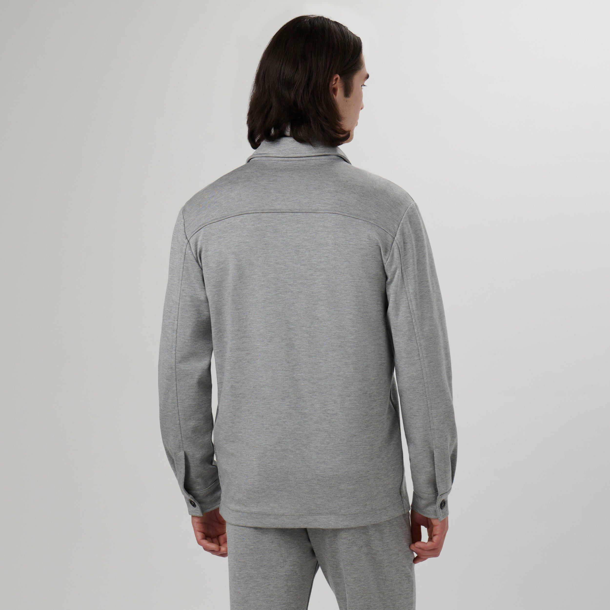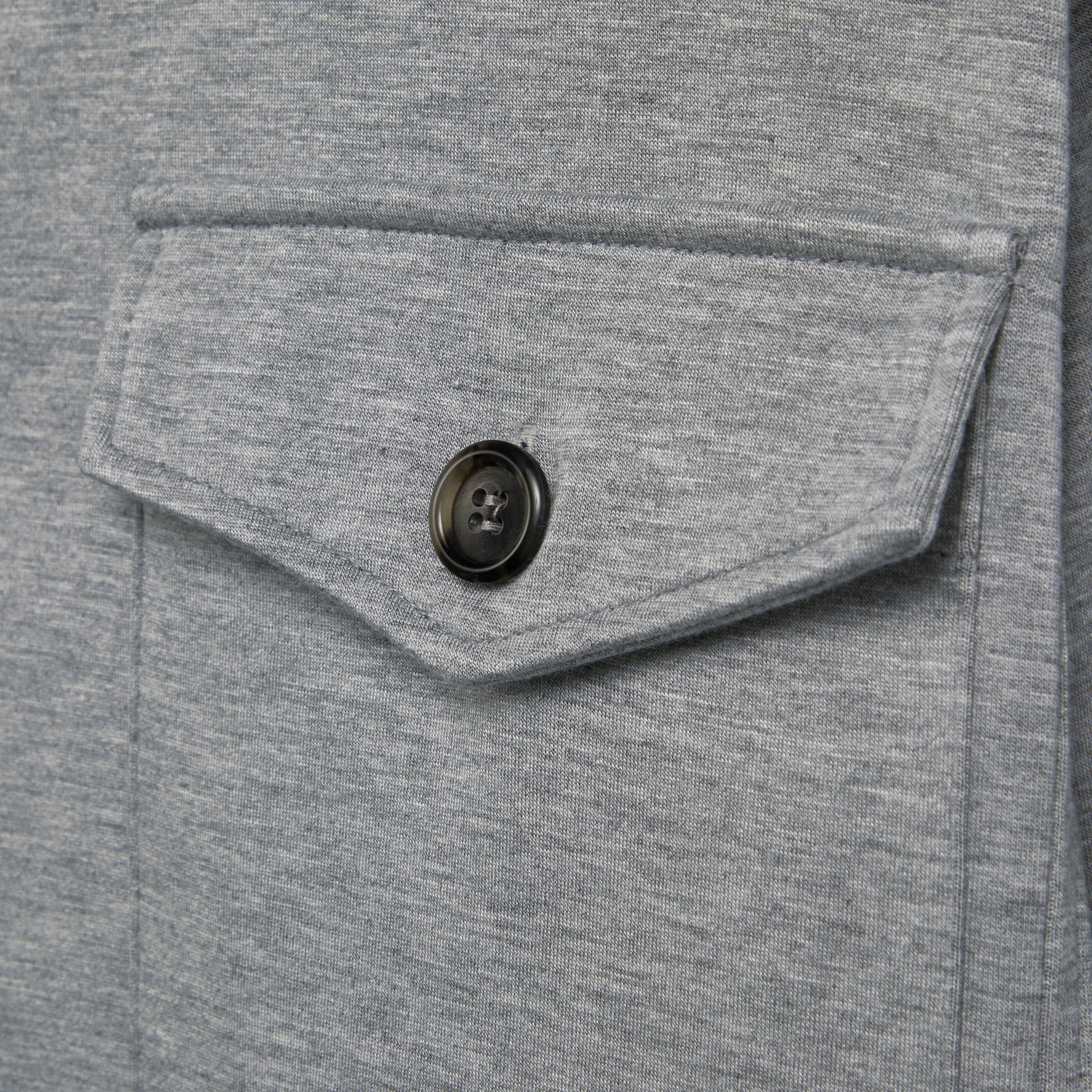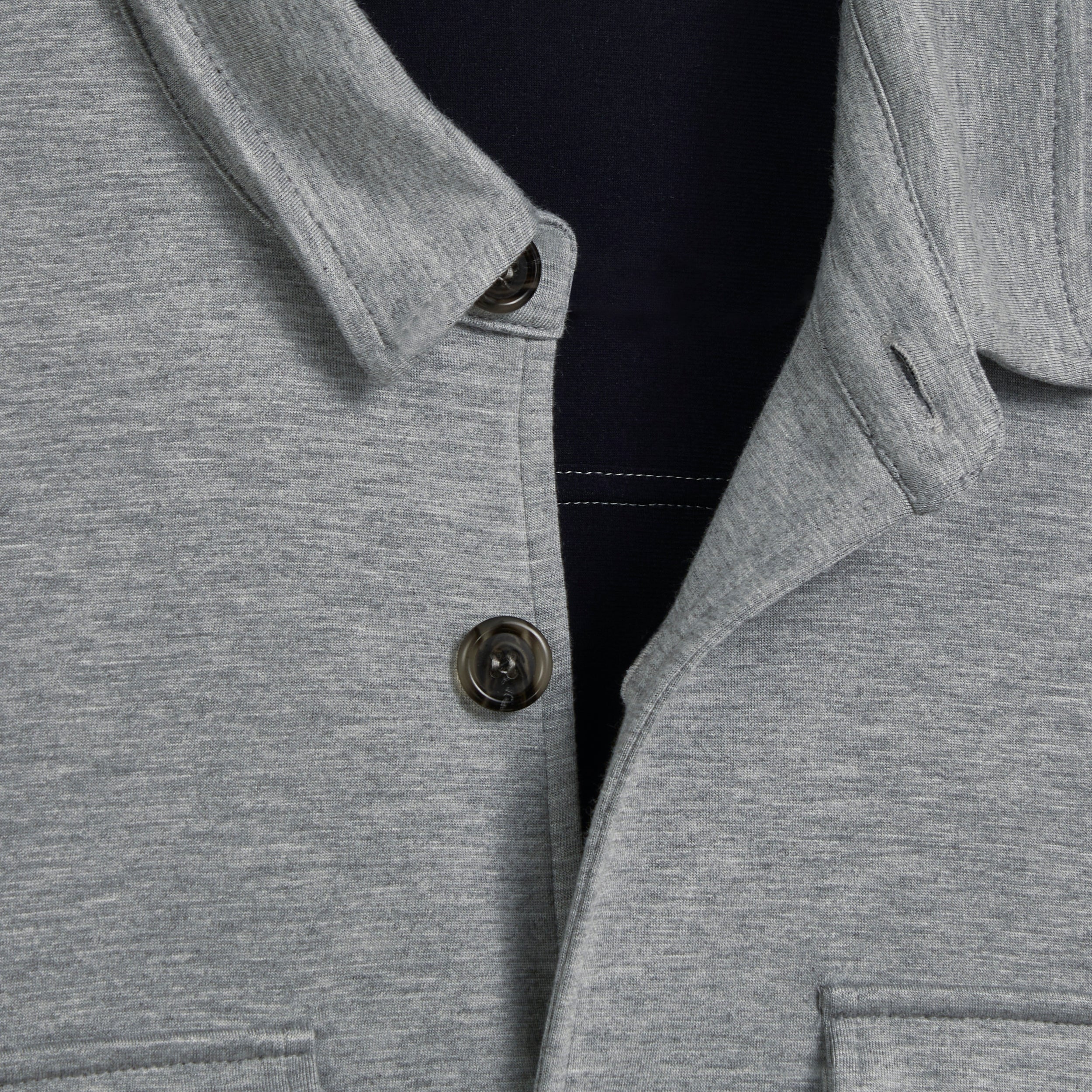 Double knit shirt jacket with point collar, full button closure, buttoned western chest pockets and side welt pockets. Made in Italy.