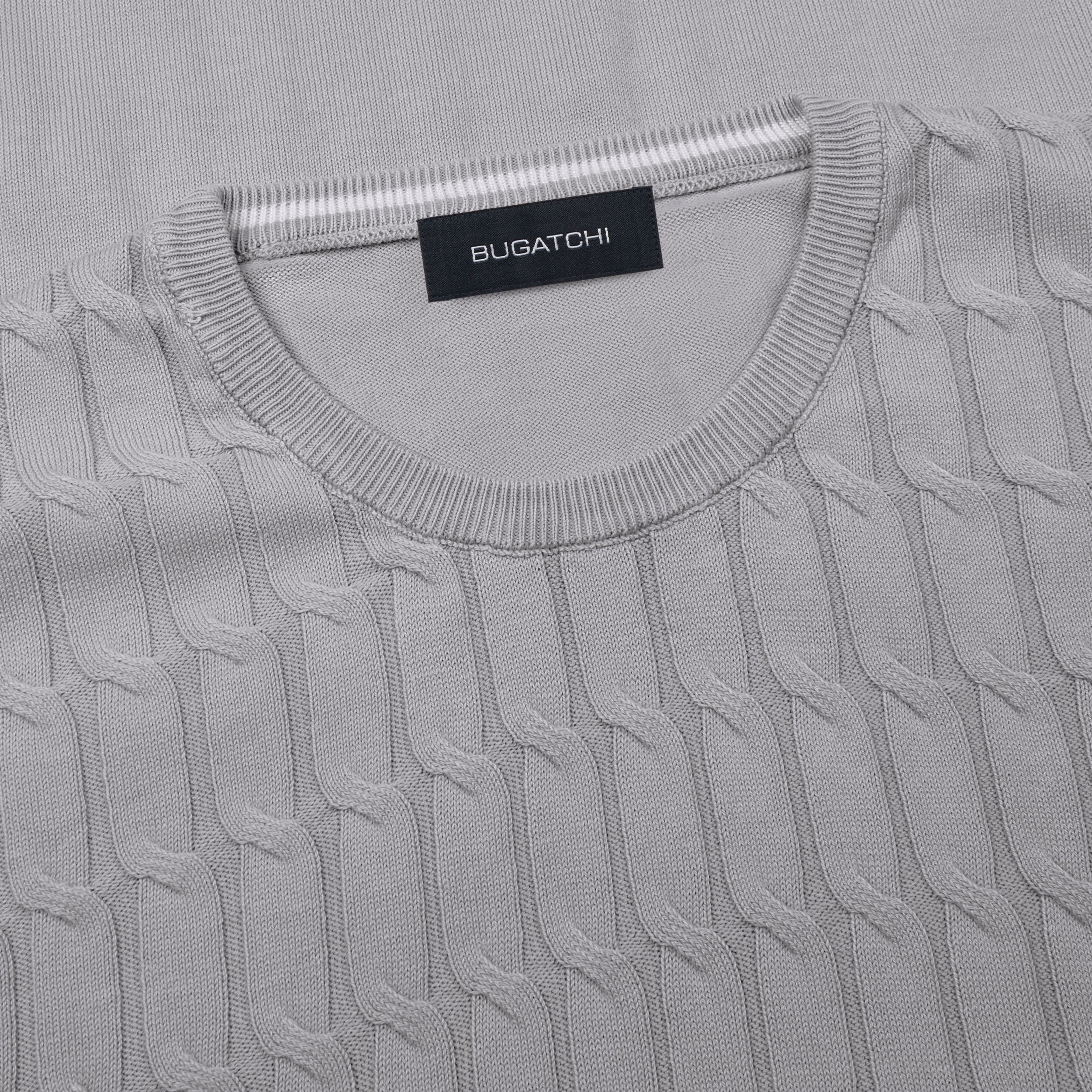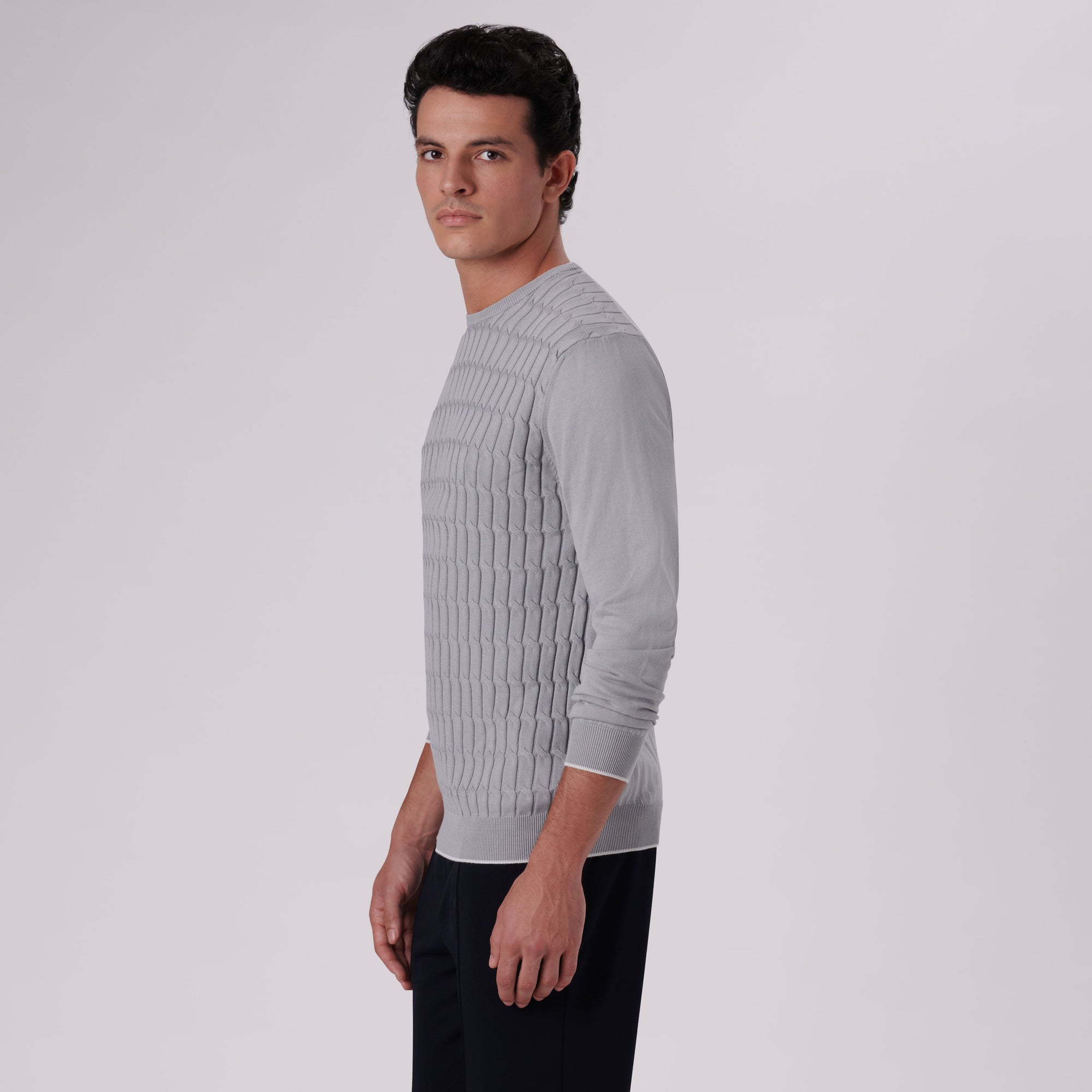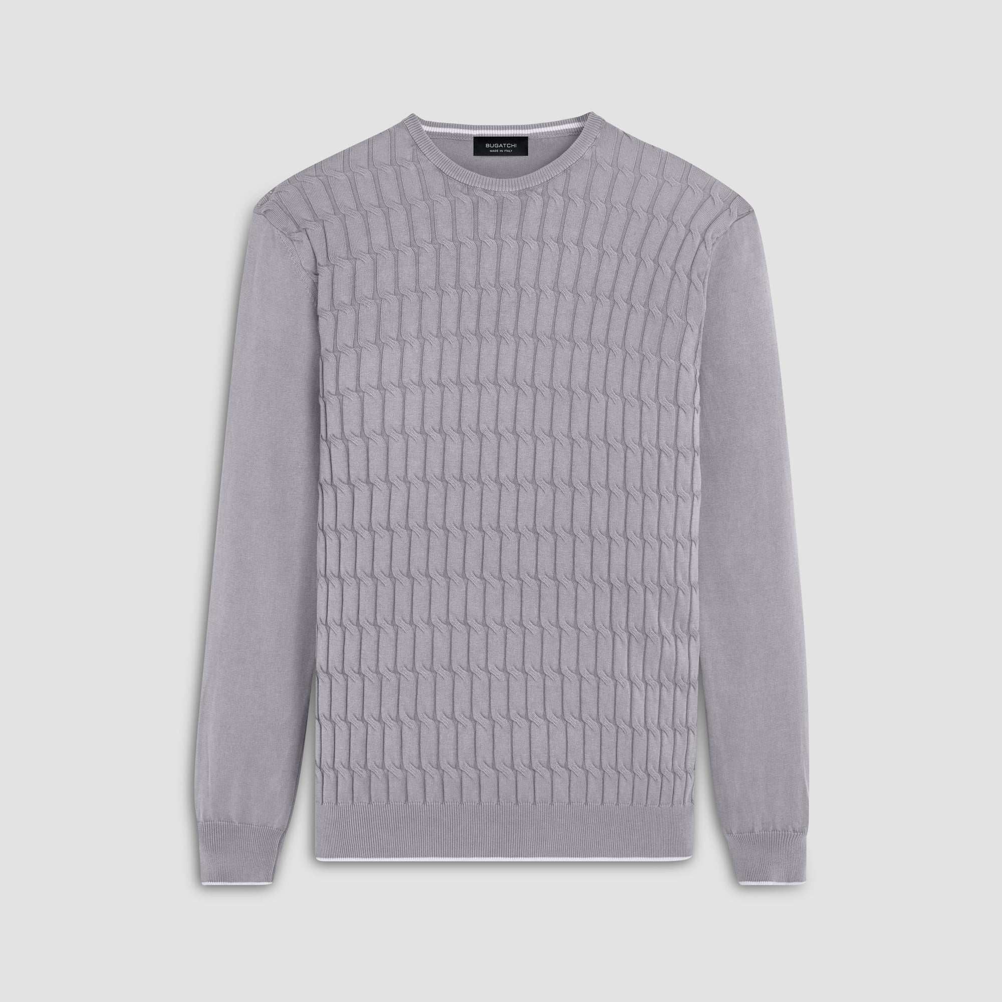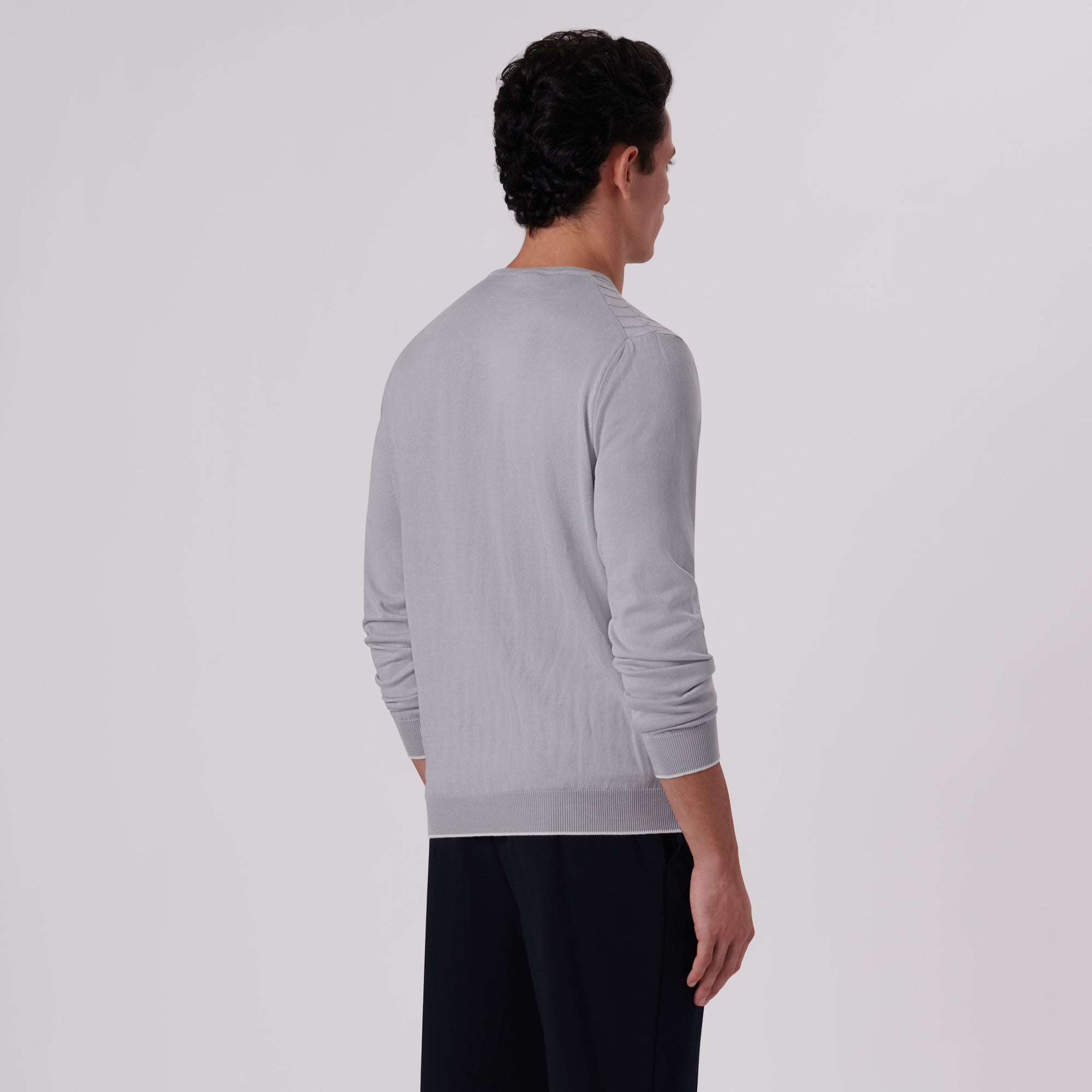 Knit stitch long-sleeved crew neck sweater in 100% cotton with solid rib knit collar, cuffs and waistband. Made in Italy.