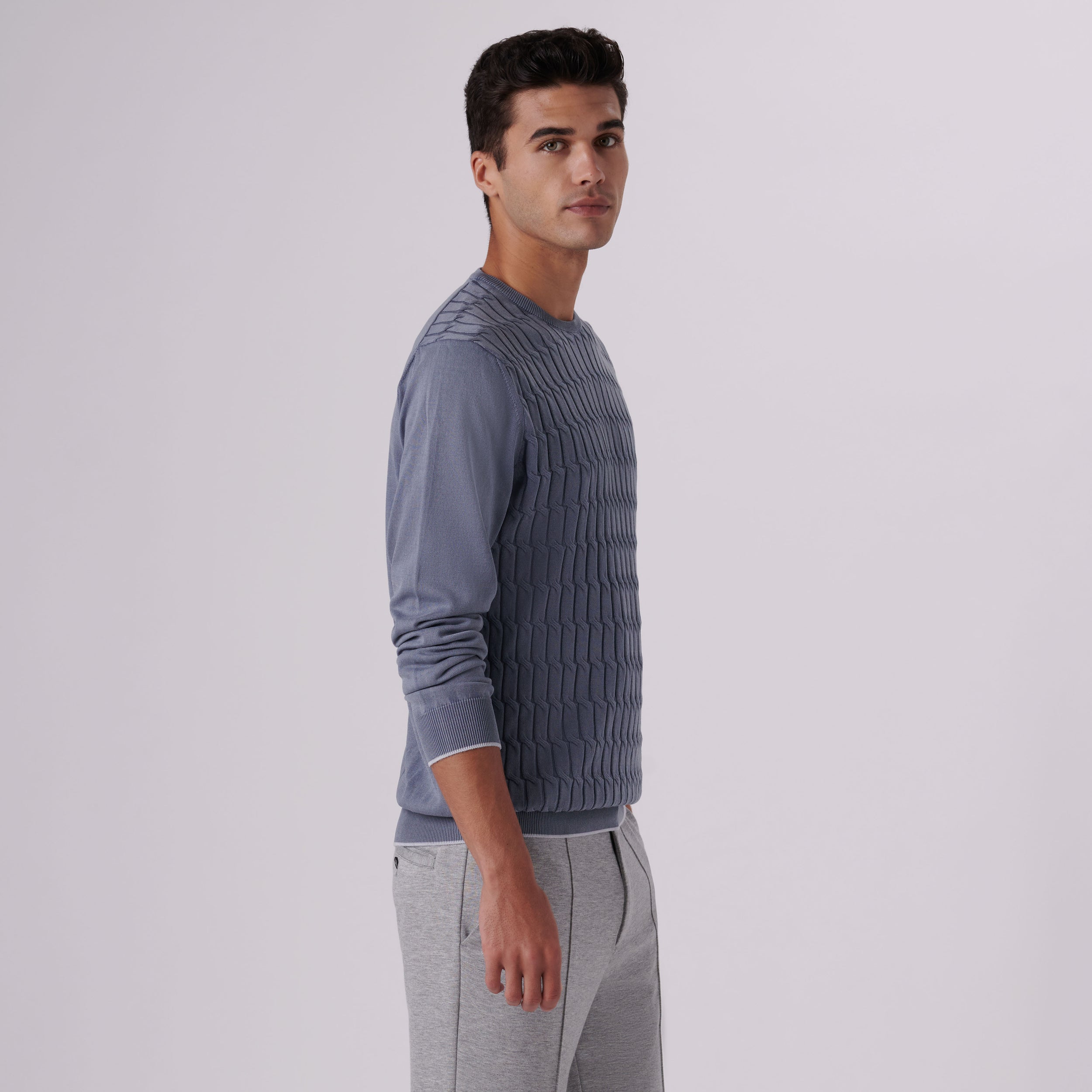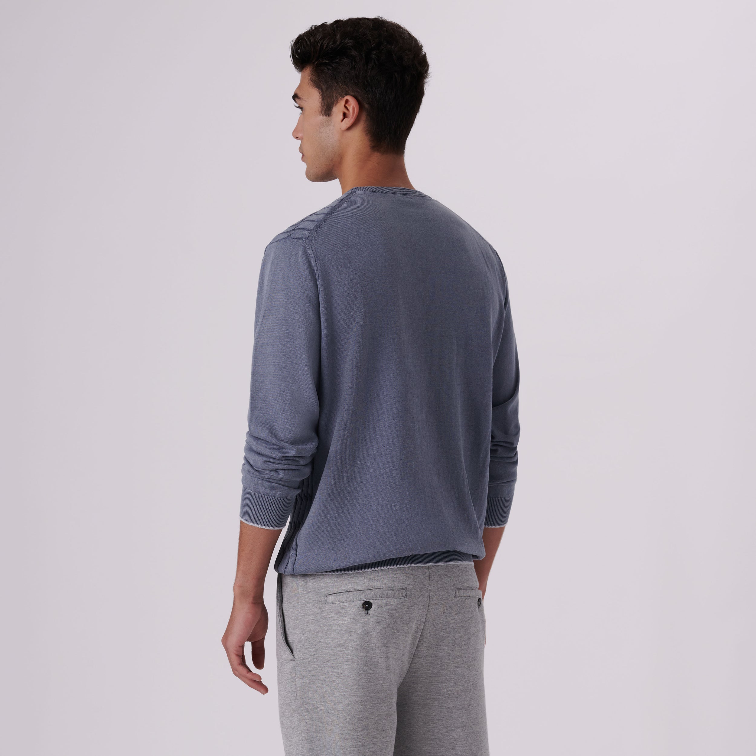 Knit stitch long-sleeved crew neck sweater in 100% cotton with solid rib knit collar, cuffs and waistband. Made in Italy.