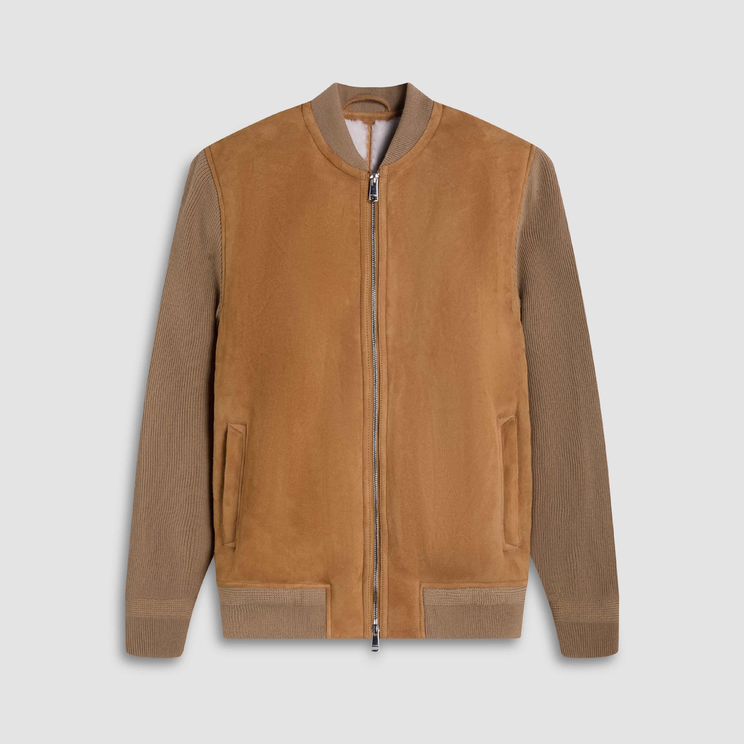 Sophisticated and distinctive, this blouson is crafted from 100% lamb shearling with a smooth exterior and plush shearling interior. Featuring a baseball collar, ribbed sleeves, and hem in 100% Merino wool with a unique textured pattern. Designed with a 2-way zipper, two side pockets with padded covers, and two interior pockets for added functionality.
