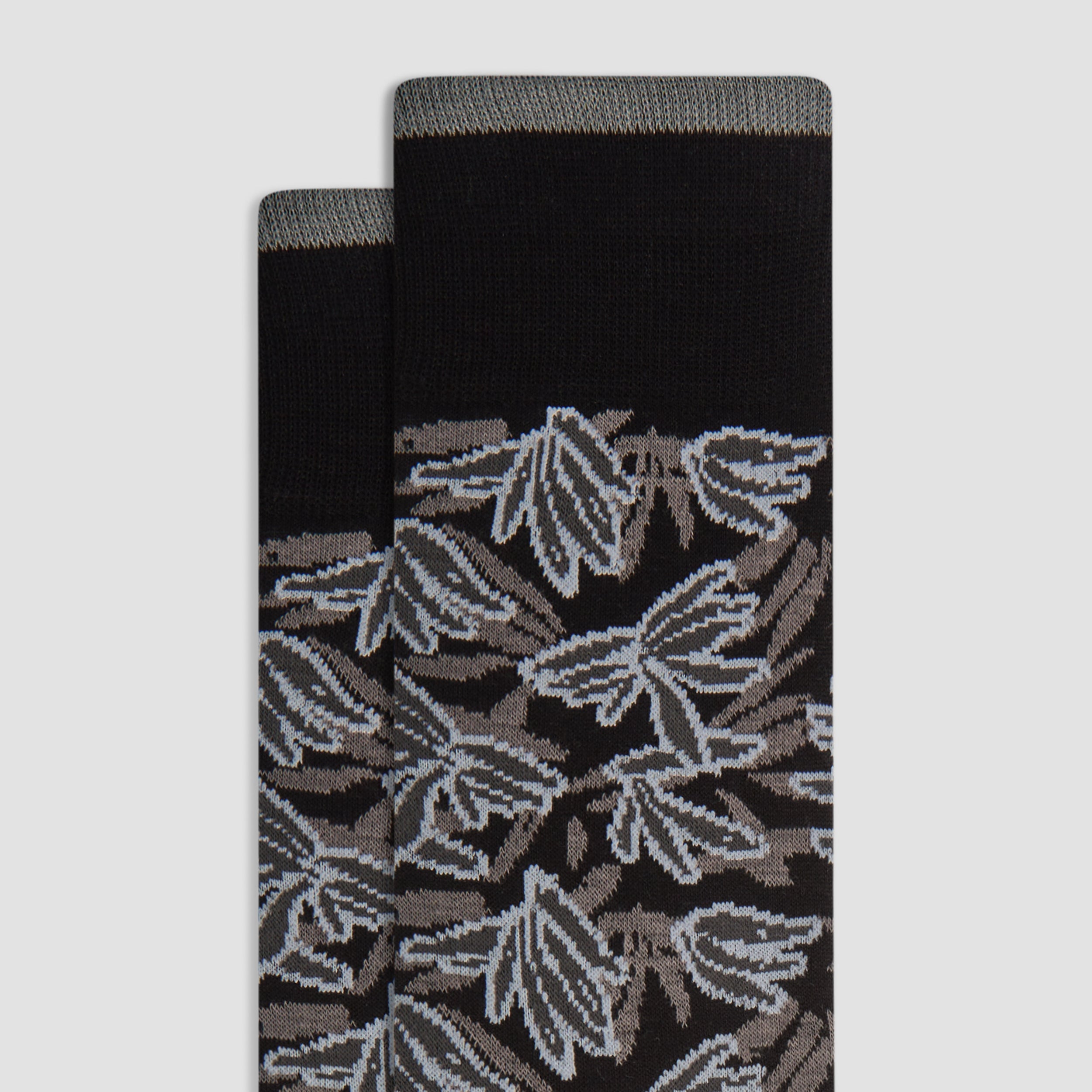 Discover premium comfort with these leaf patterned mid-calf socks, made in Italy from luxurious mercerized cotton with a ribbed cuff for a snug fit, a hand-linked toe for smoothness, and reinforced heel seams for added durability. Soft, breathable, and designed with care, they bring a touch of Italian style and craftsmanship to your everyday essentials.
