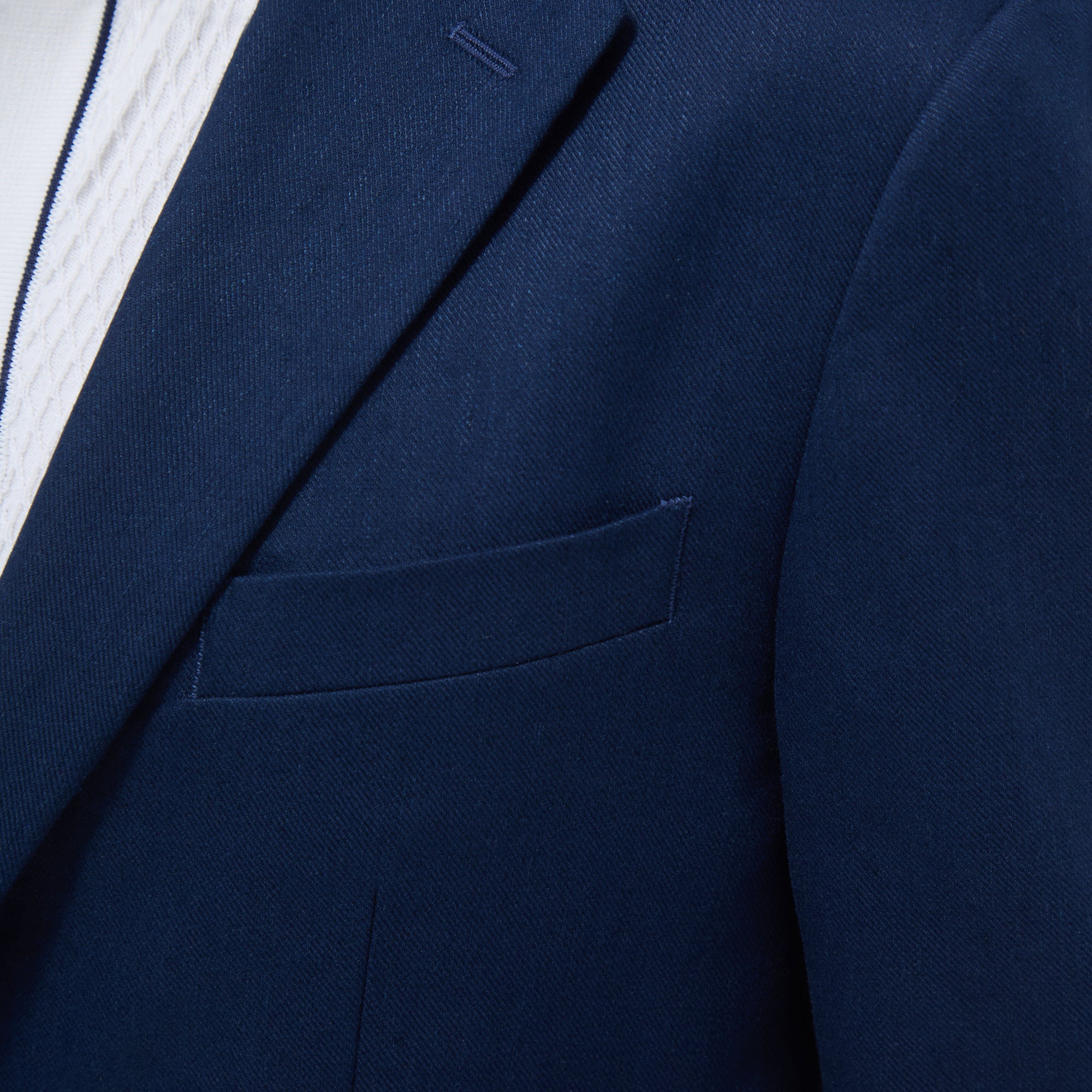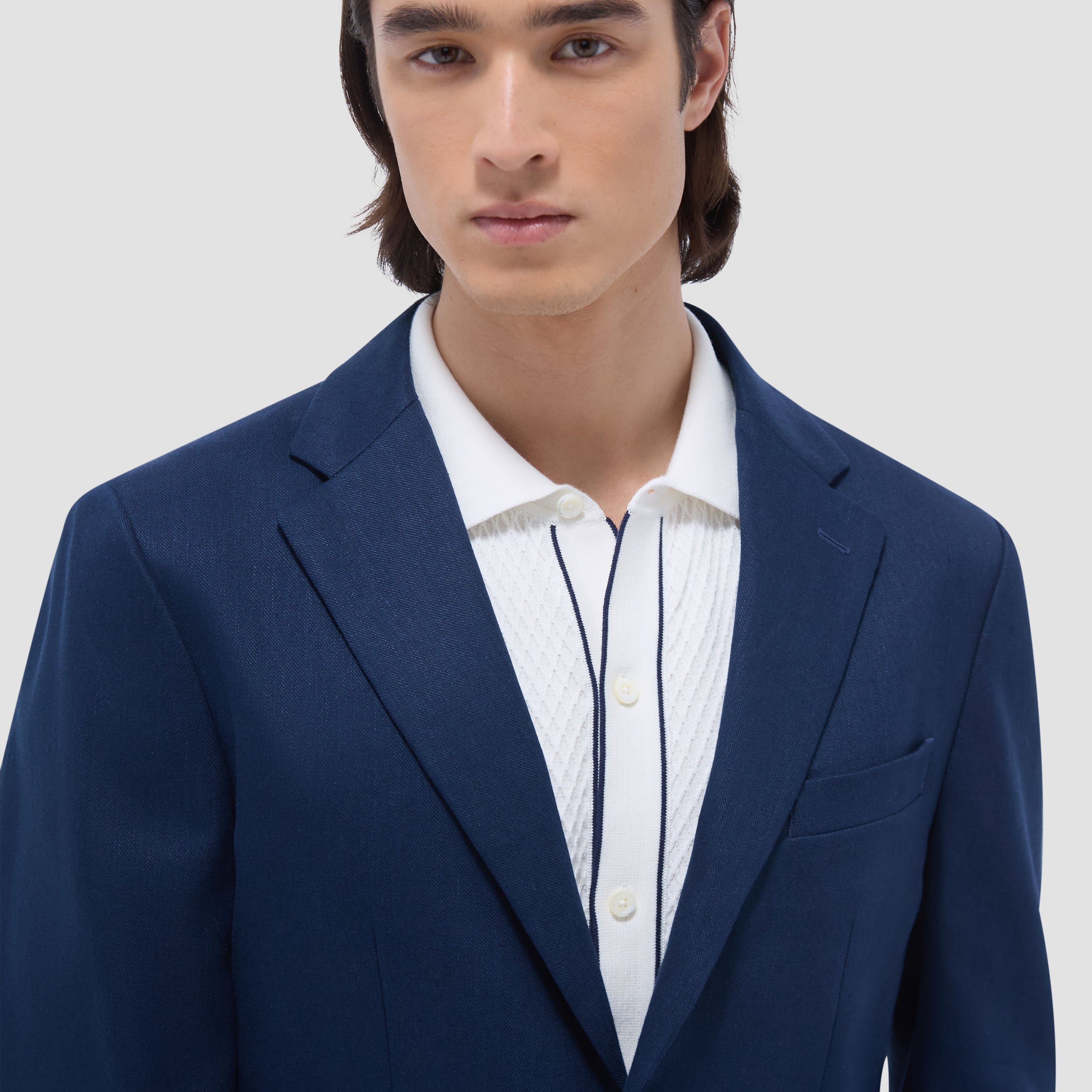Classic two-button blazer in a premium linen-cotton blend with added stretch, and half-lined in breathable cotton poplin, features two patch pockets, a chest welt pocket, and side vents for ease of movement. This blazer offers effortless versatility, ideal for warmer days and suited for both casual and more formal occasions while maintaining a sharp, structured look.