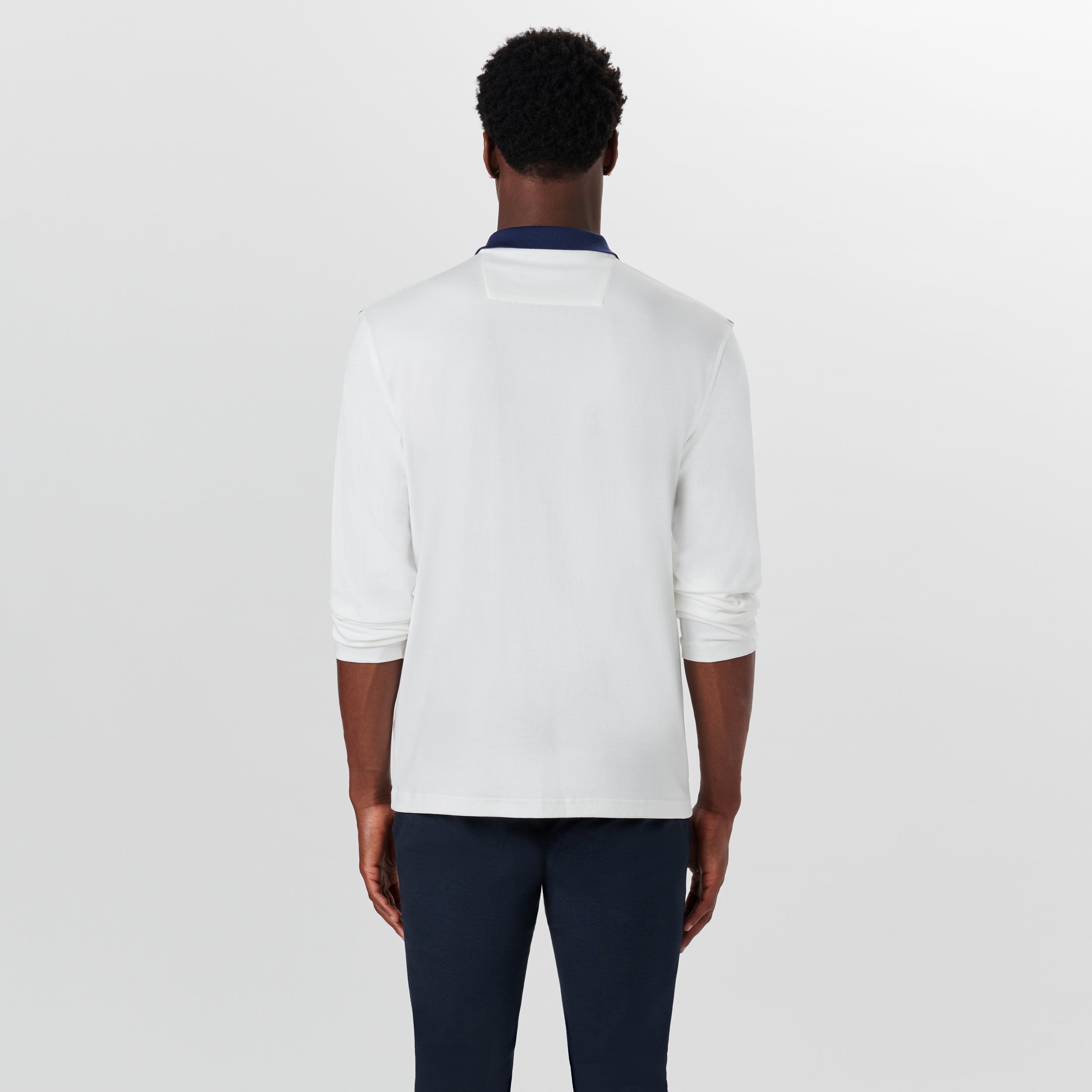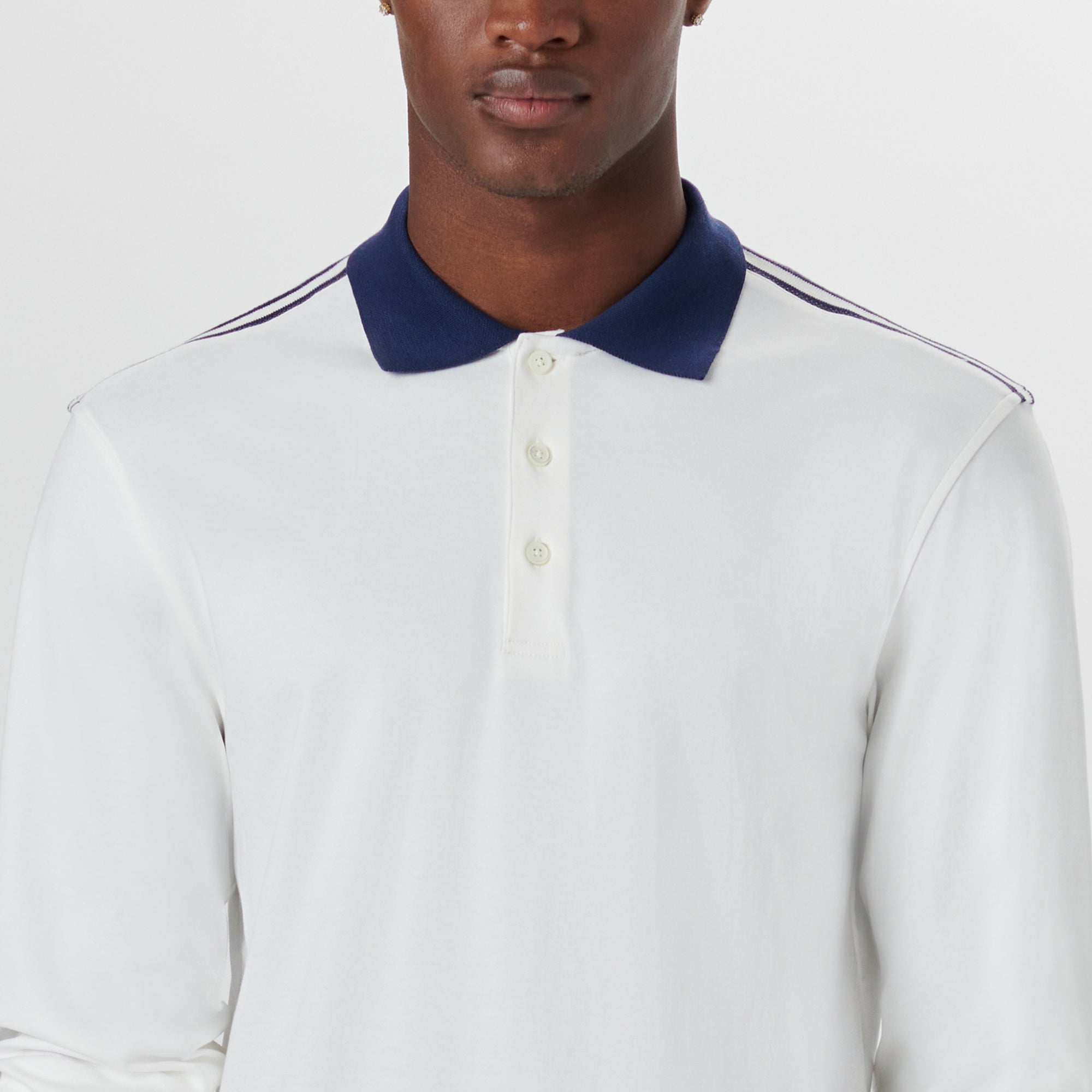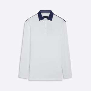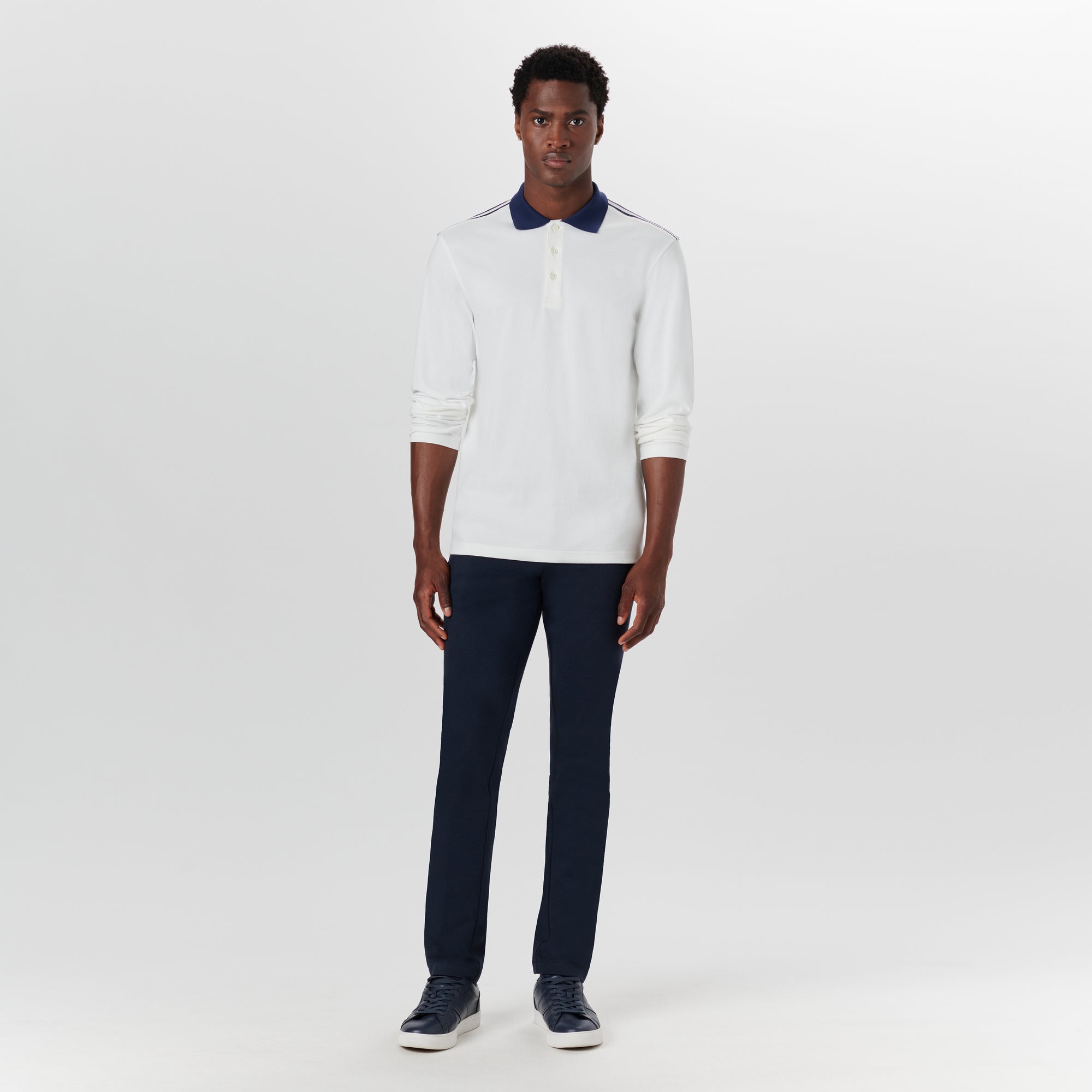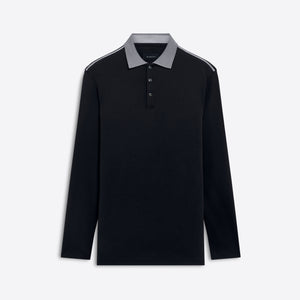 Long sleeve polo in 100% pima cotton with three button placket, taping detail and rib polo collar.