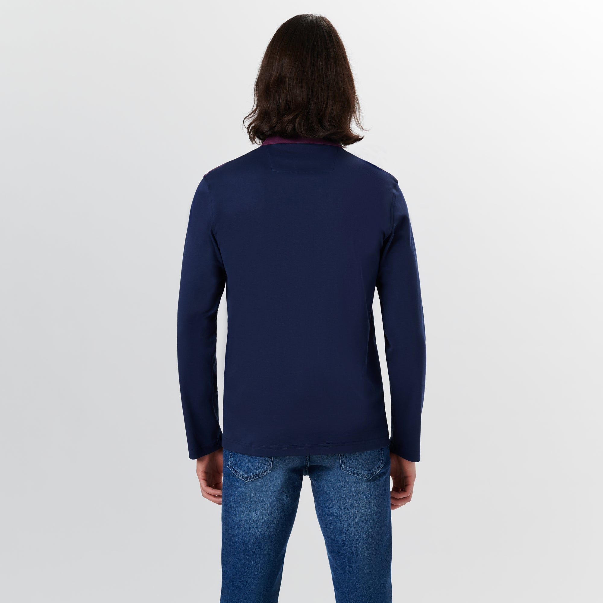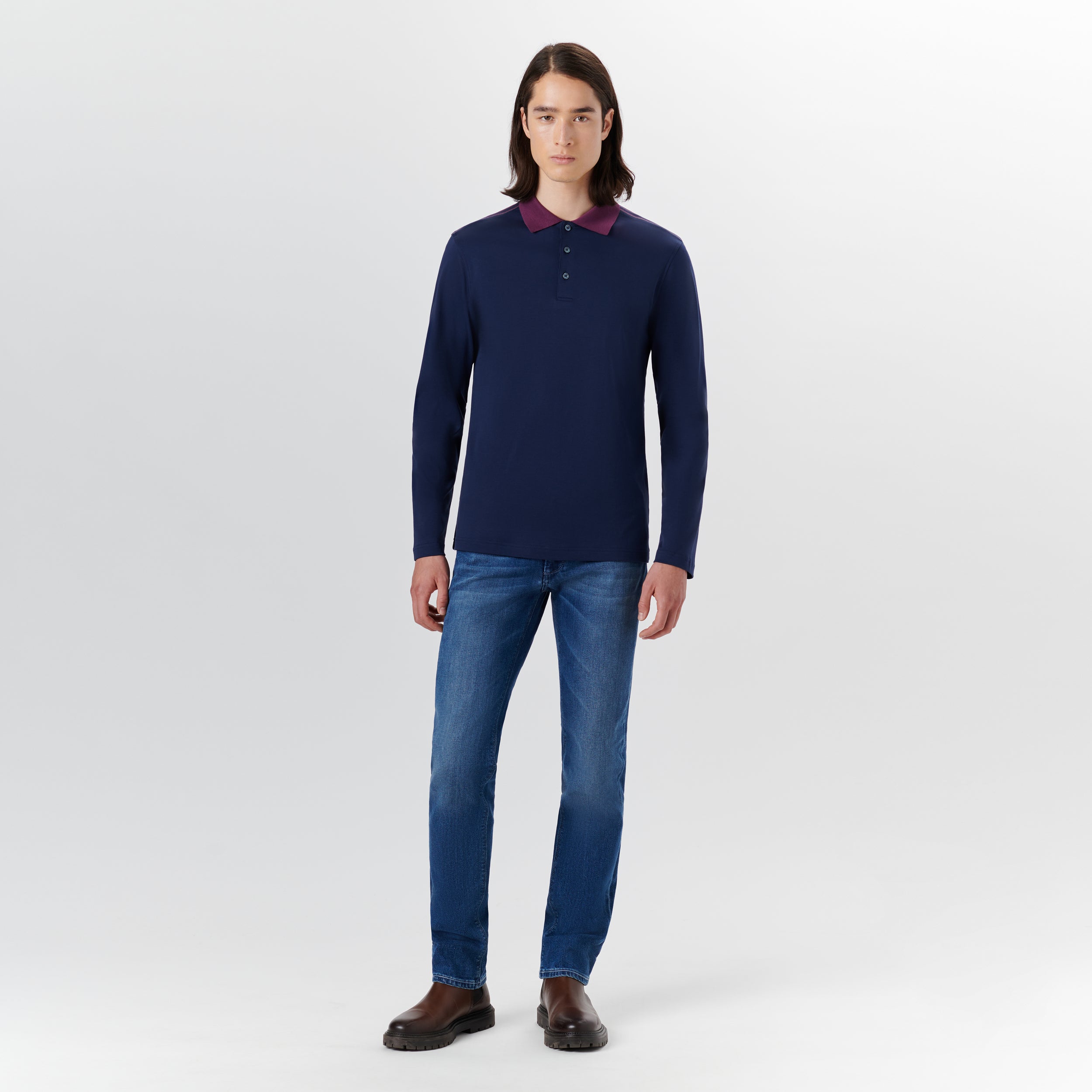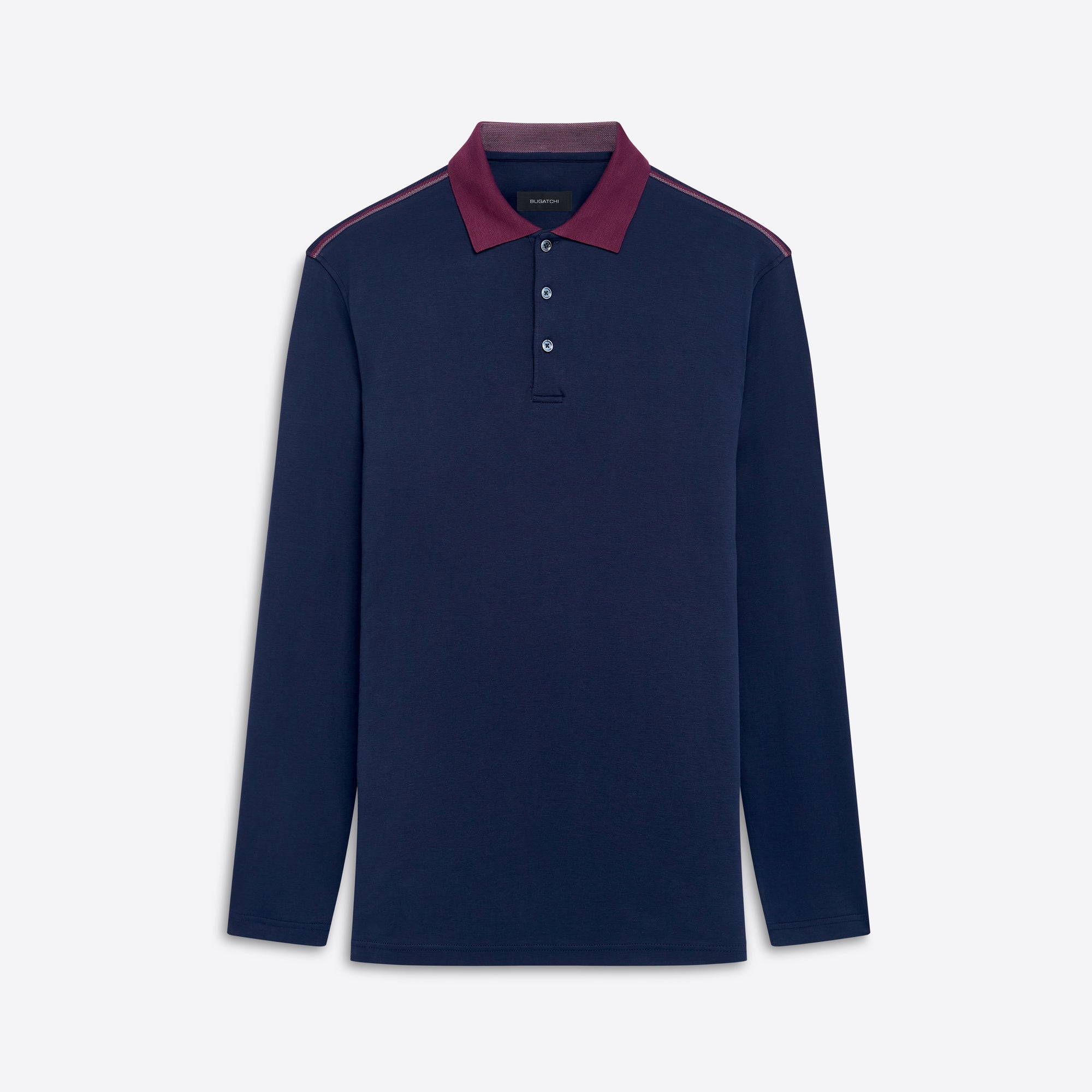Long sleeve polo in 100% pima cotton with three button placket, taping detail and rib polo collar.