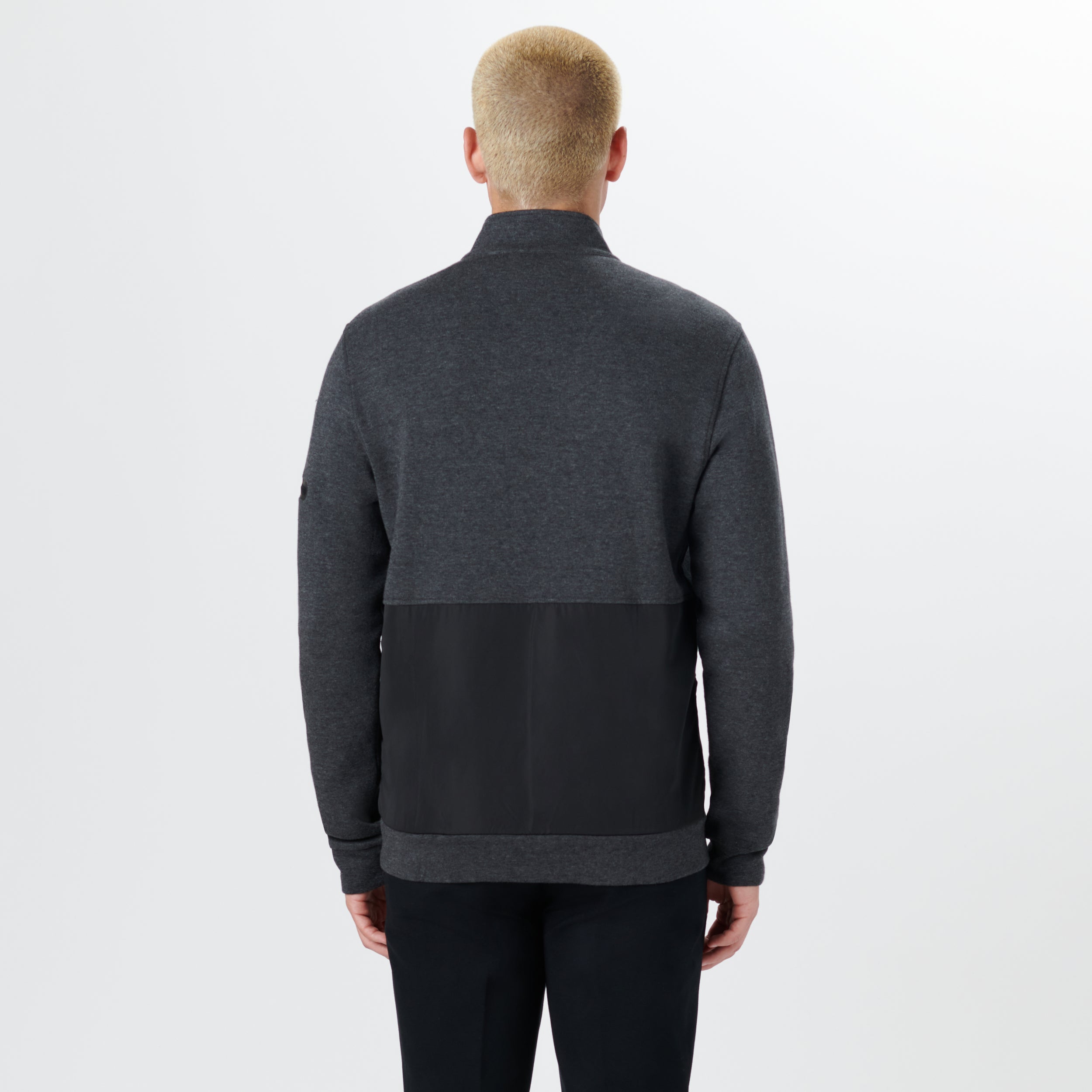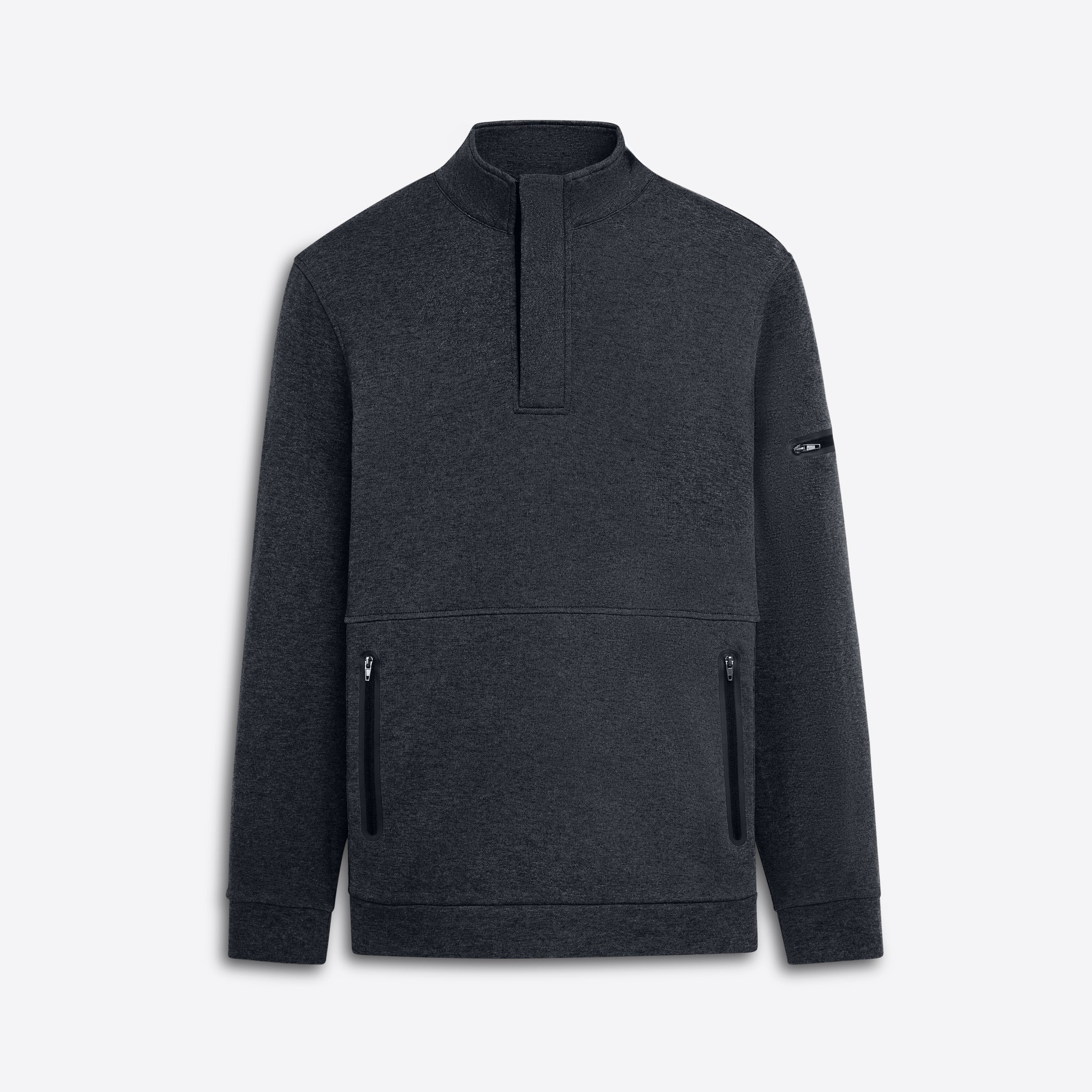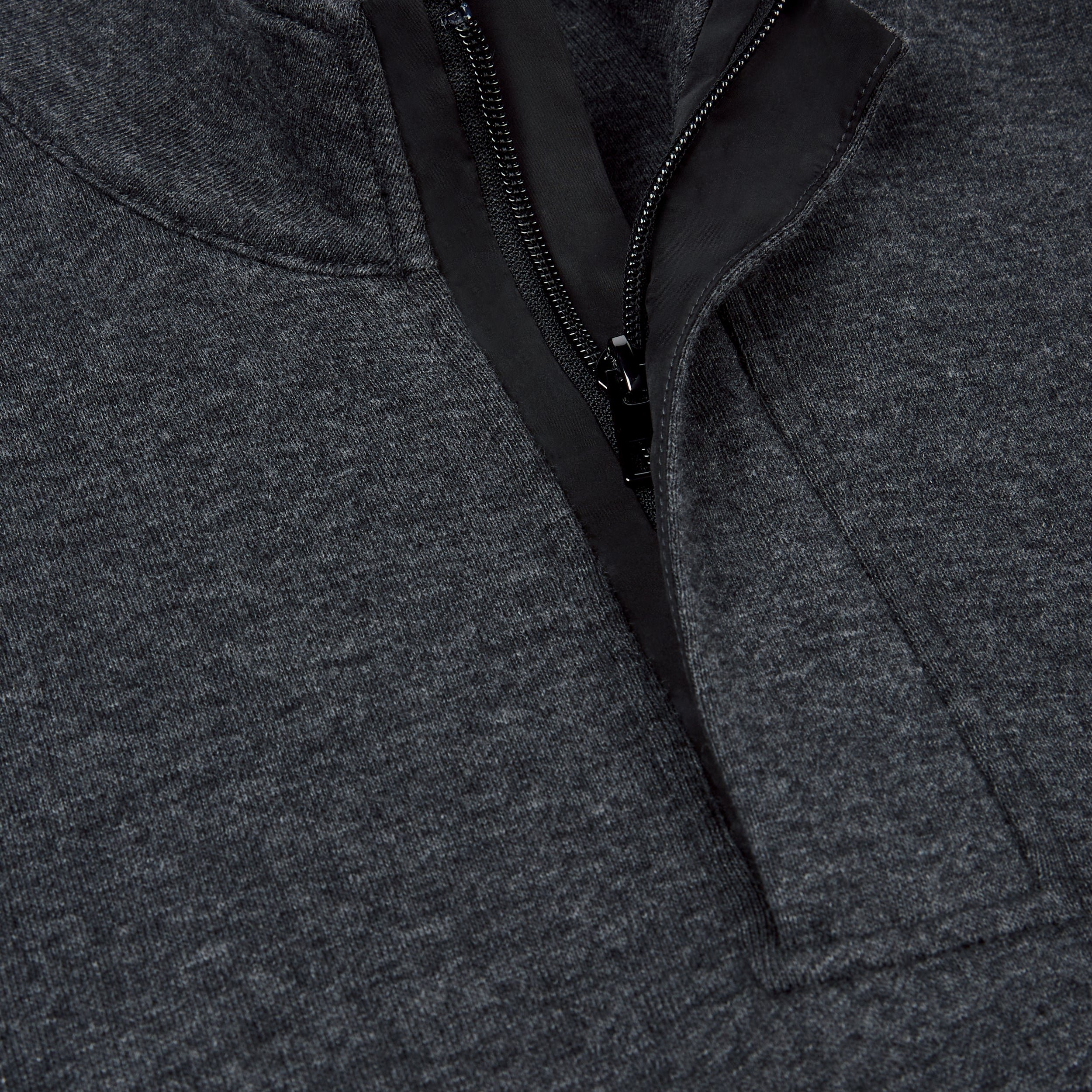 Long sleeve quarter zip pullover in cotton blend with contrast detail and rubber bonded tape on pockets.