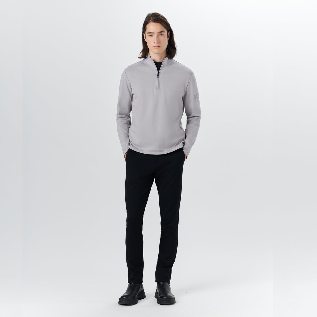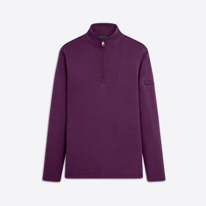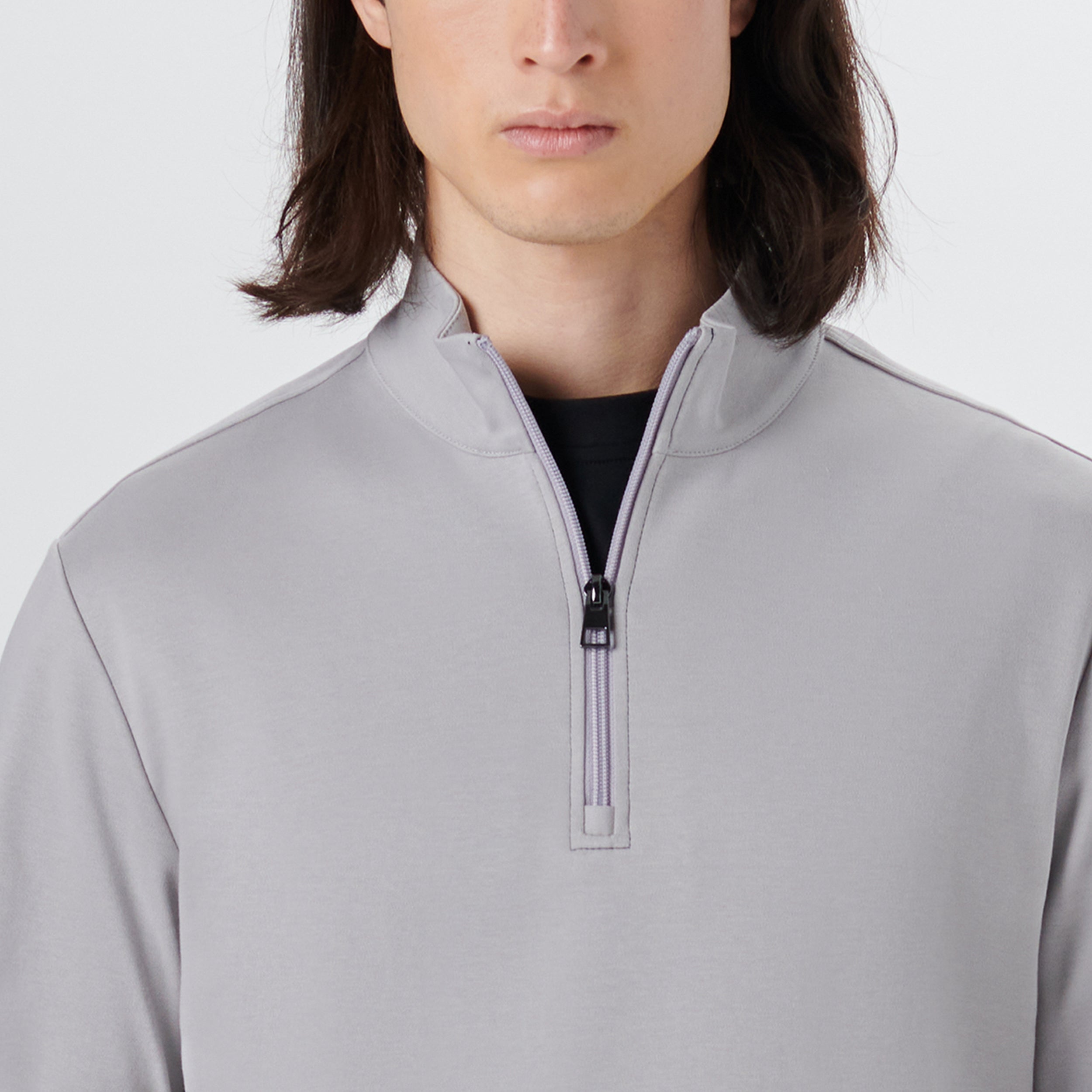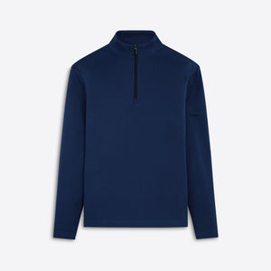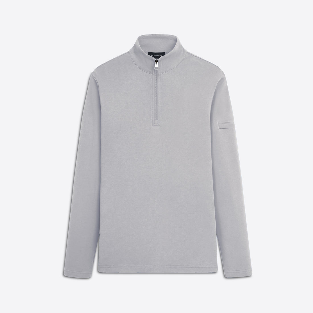 Long sleeve quarter zip pullover in 100% cotton with sleeve pocket and contrast stitch detail.