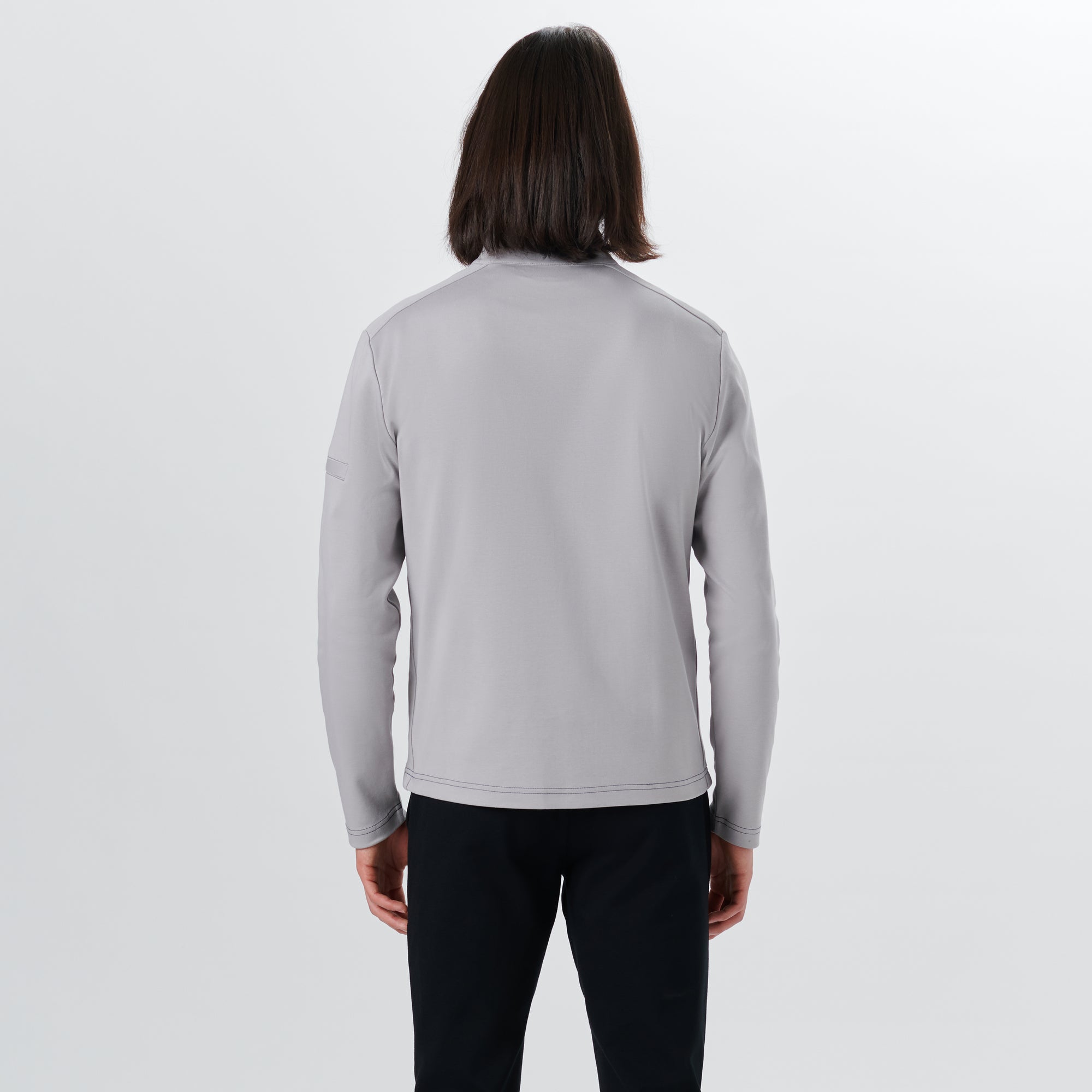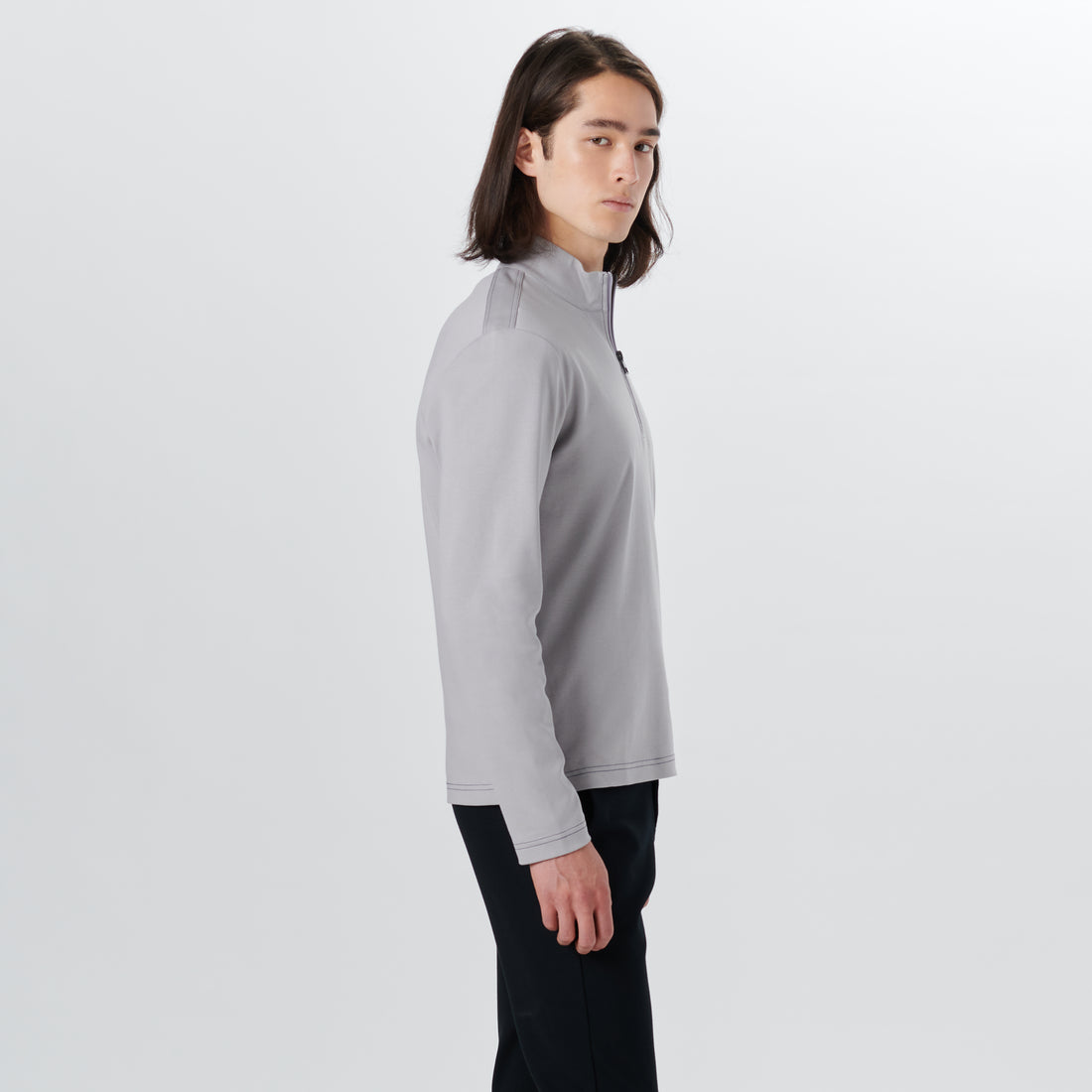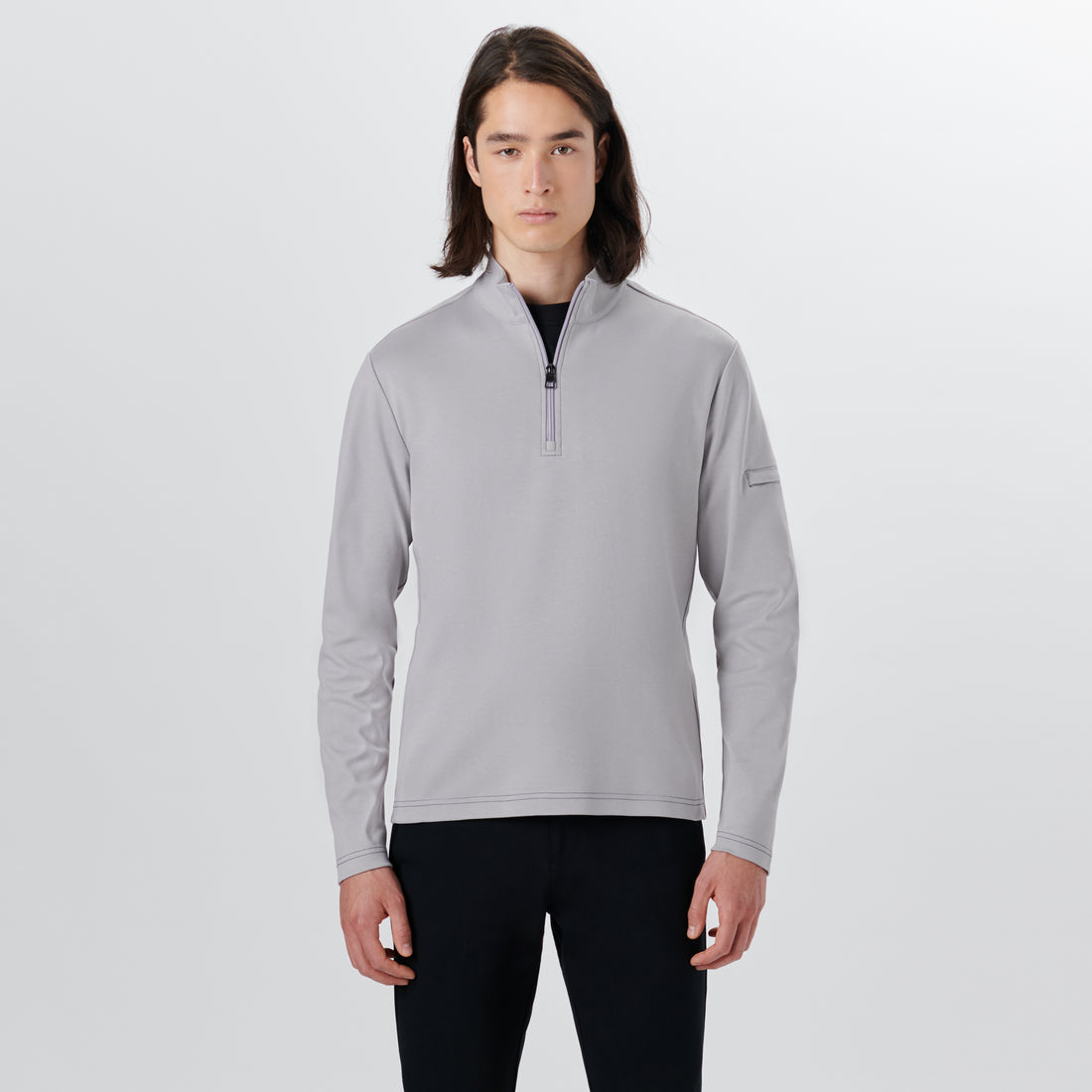 Long sleeve quarter zip pullover in 100% cotton with sleeve pocket and contrast stitch detail.