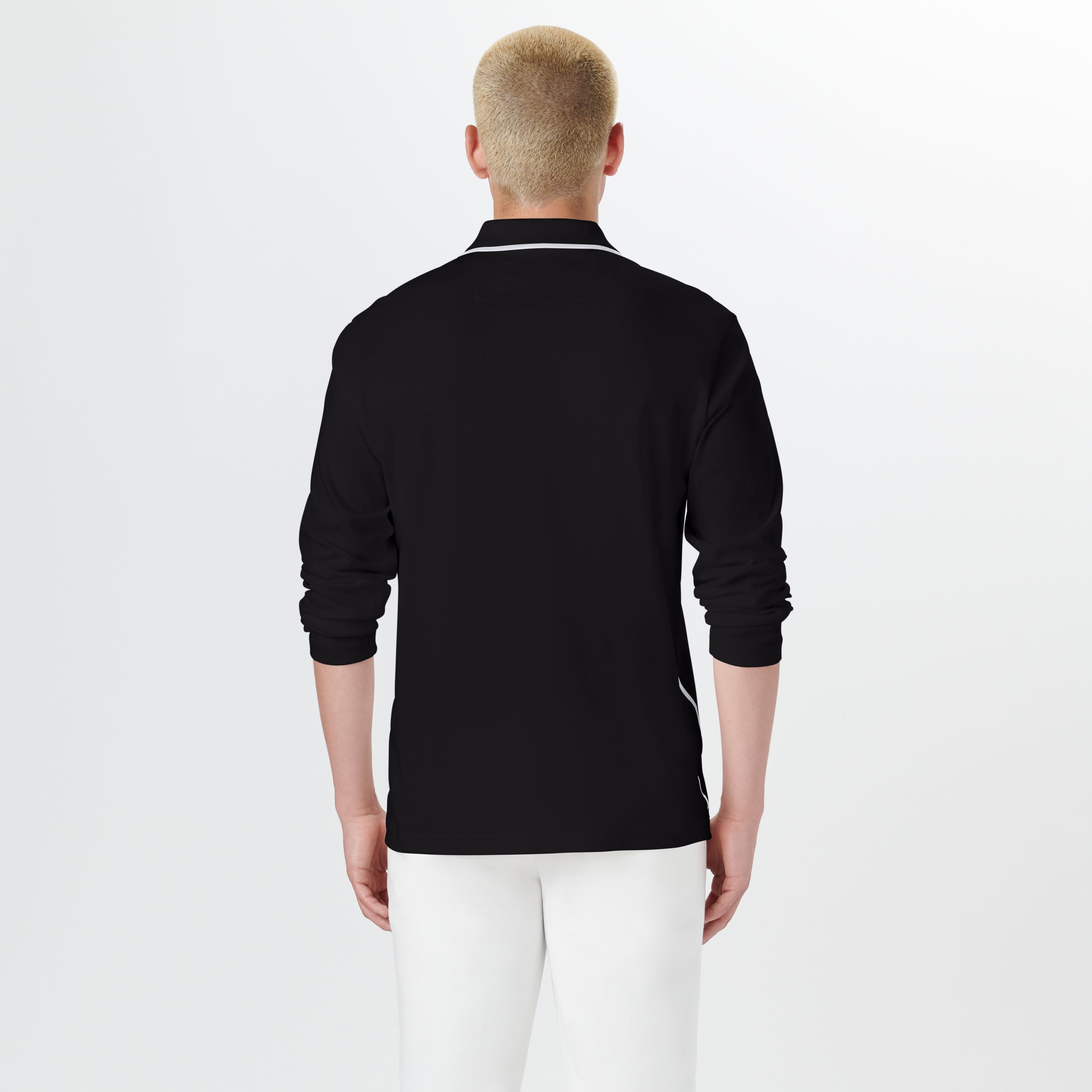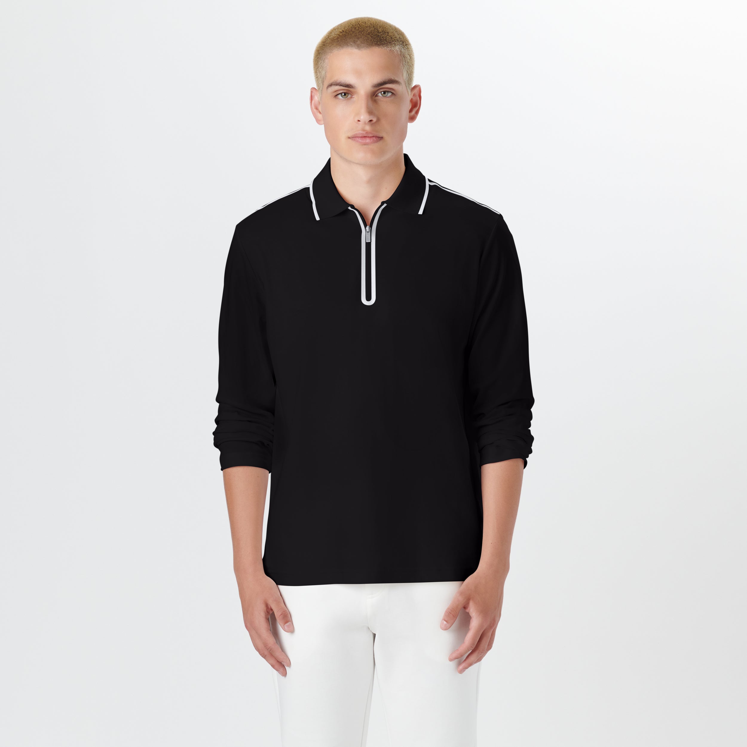 Long sleeve polo in 100% pima cotton with quarter zip closure, reflective tape detail and contrast tipped rib collar.