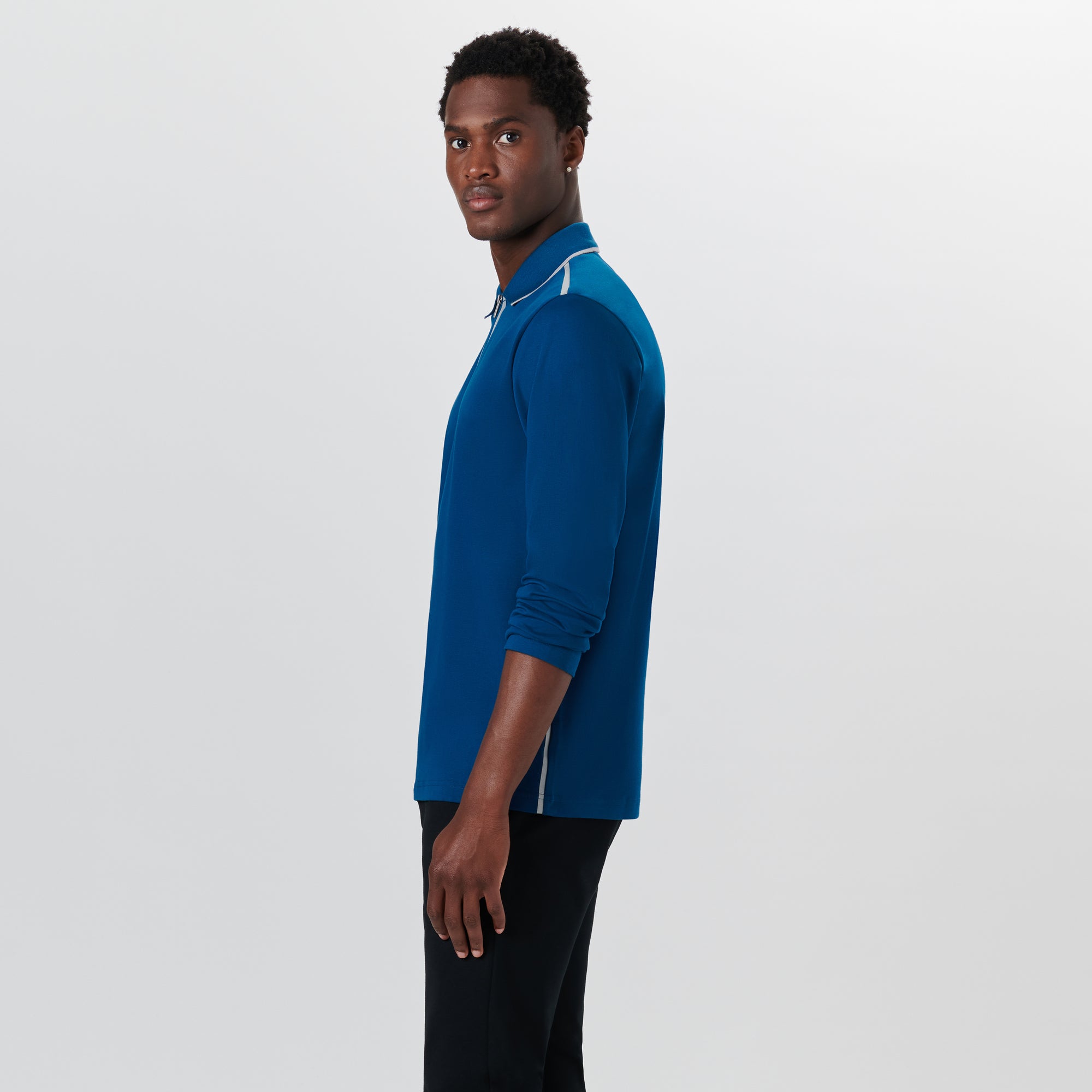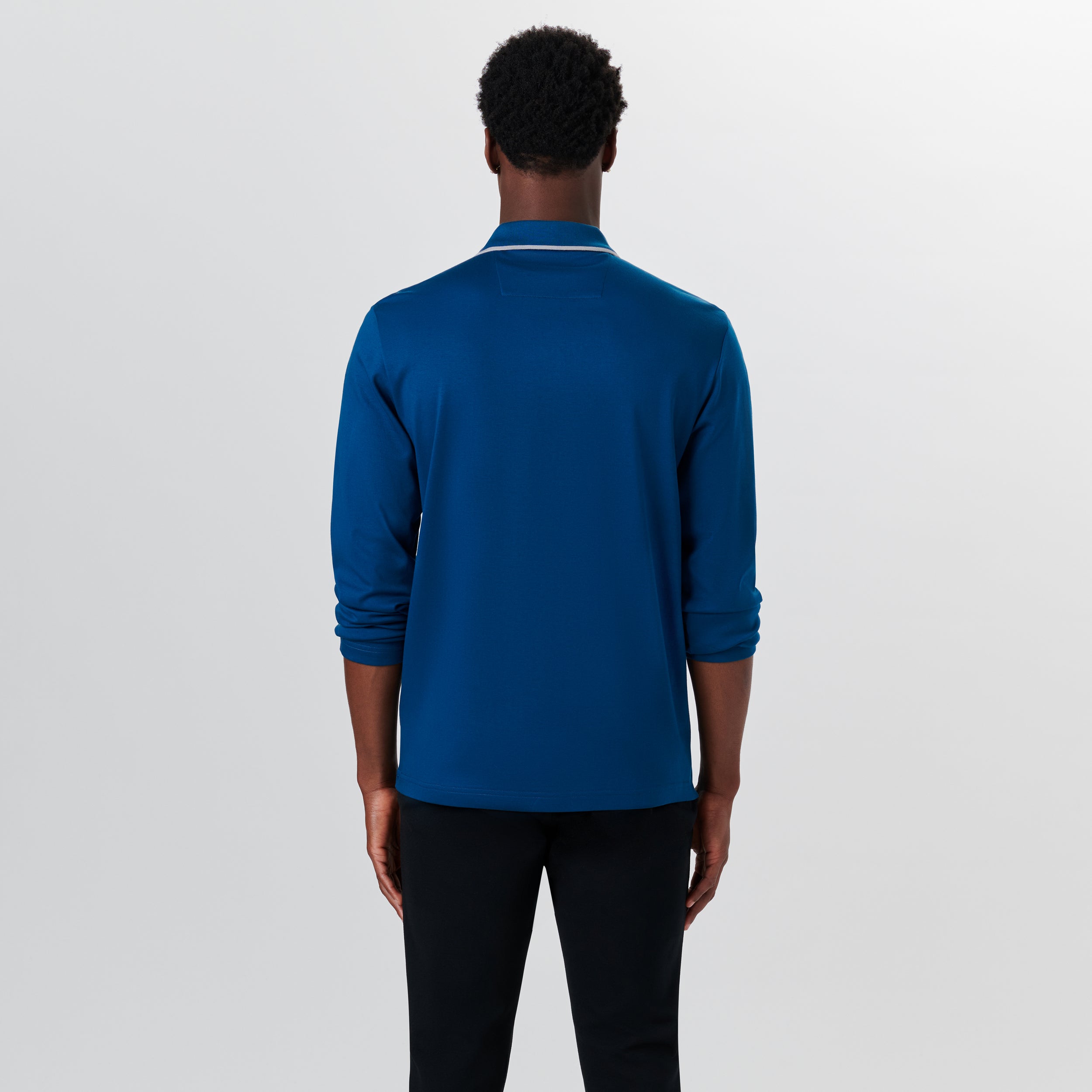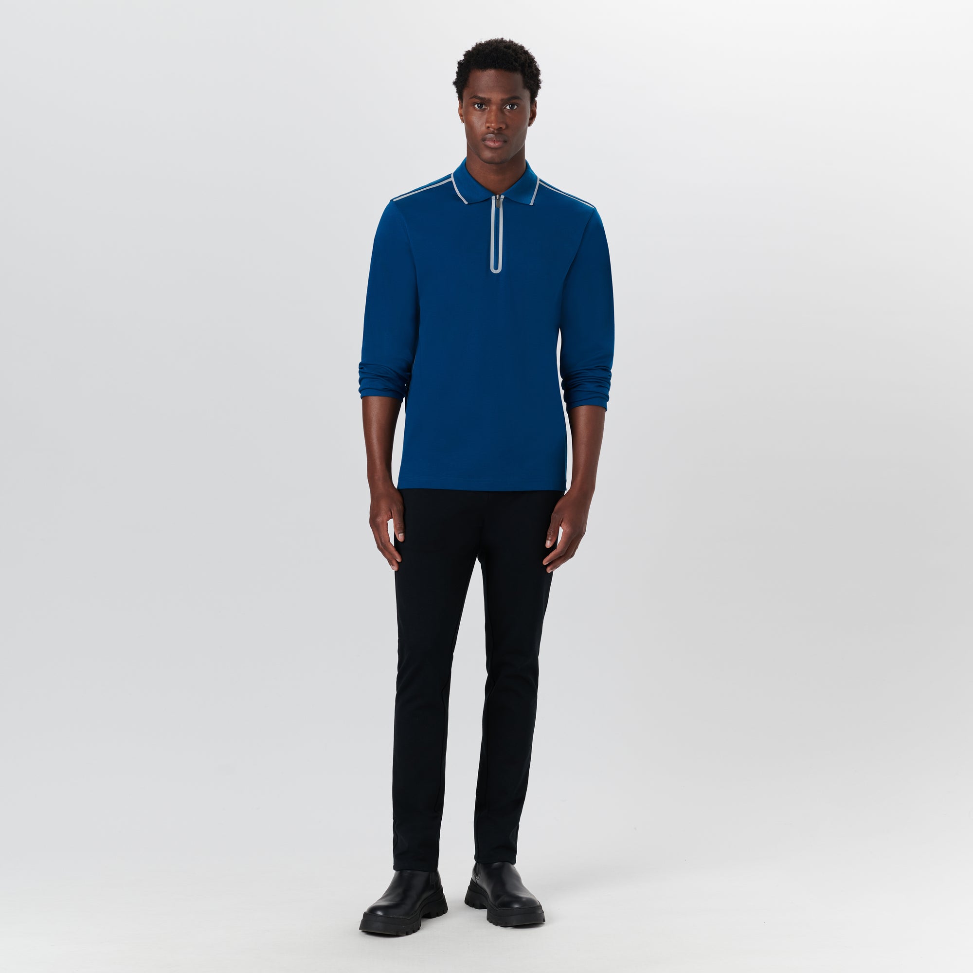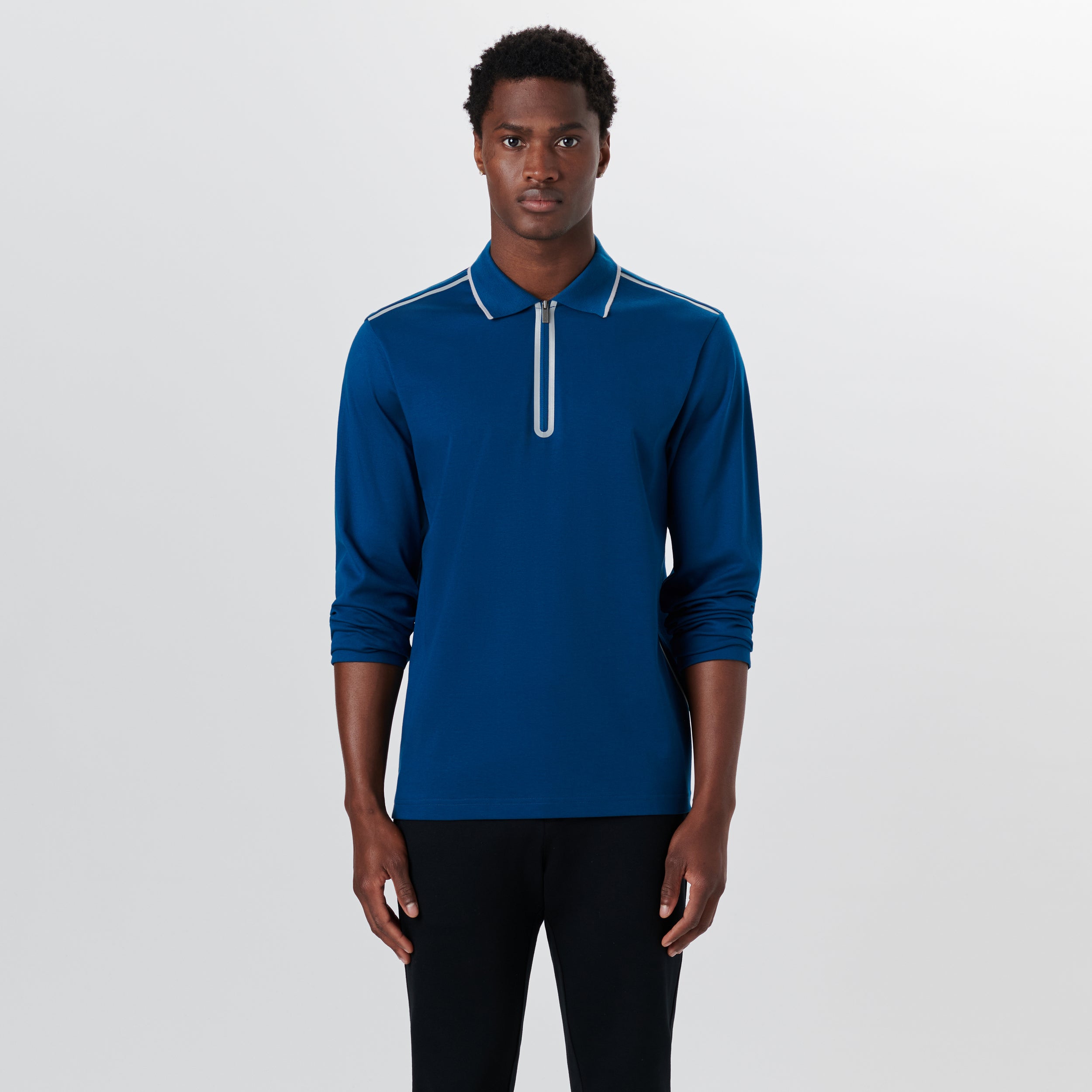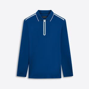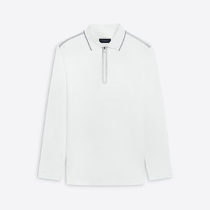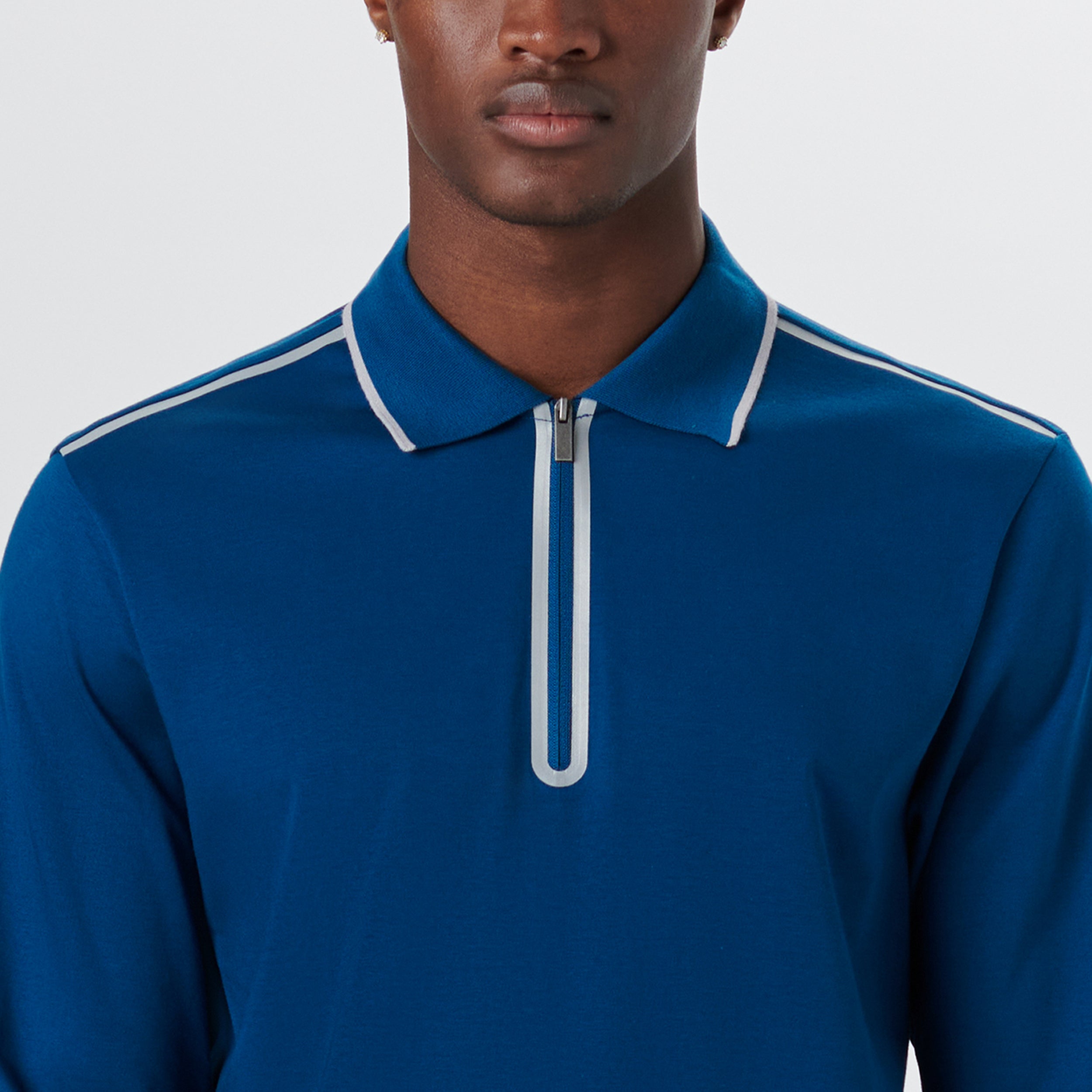 Long sleeve polo in 100% pima cotton with quarter zip closure, reflective tape detail and contrast tipped rib collar.