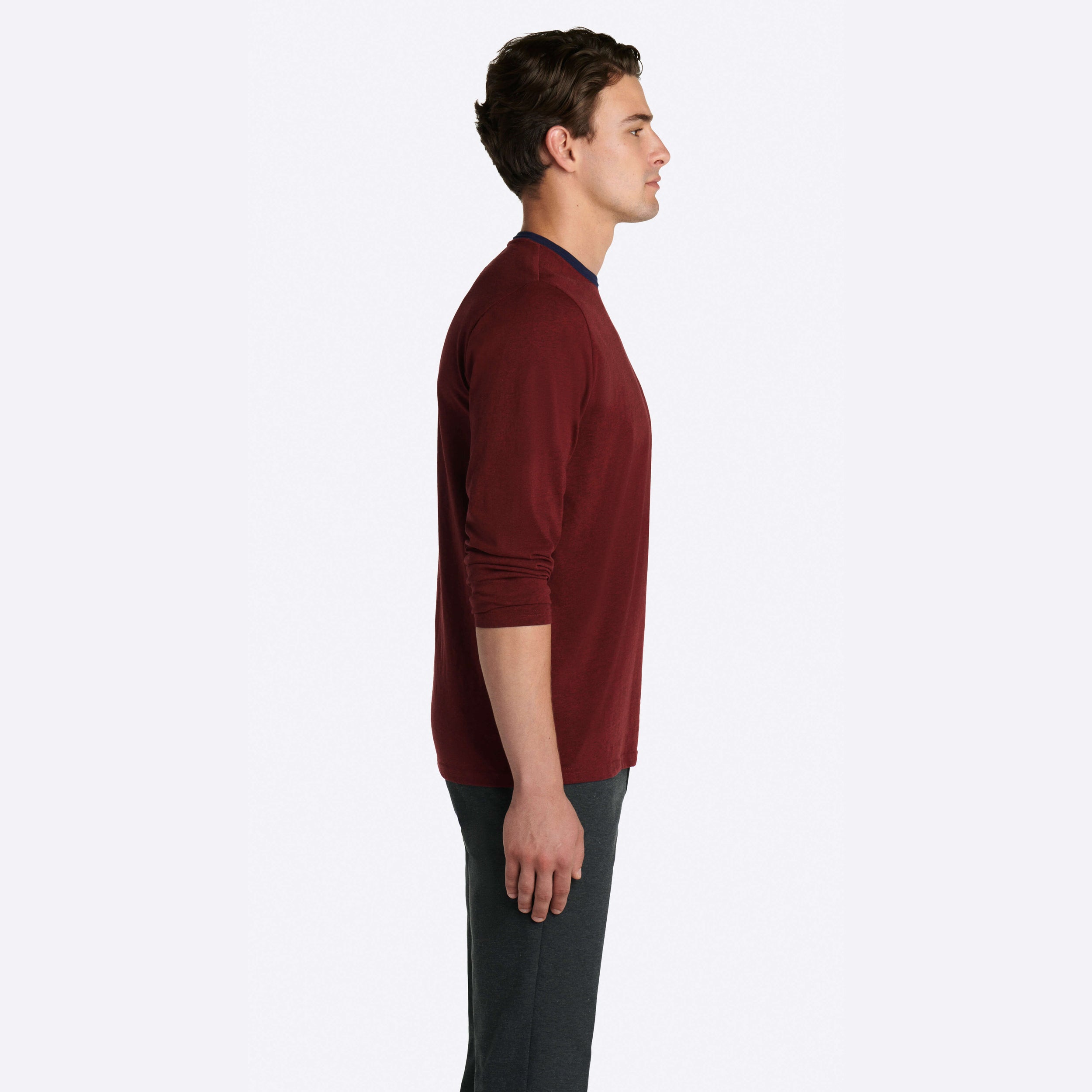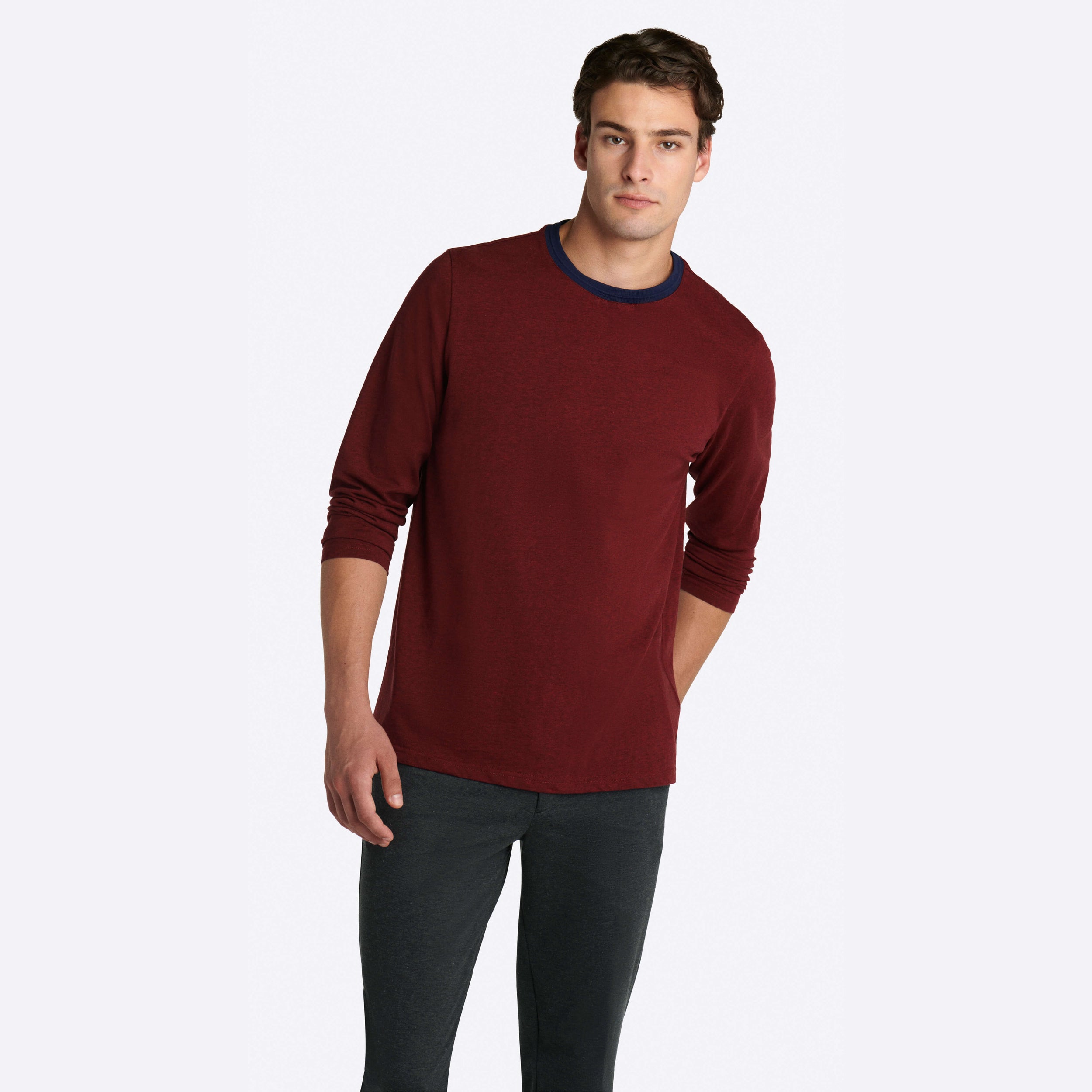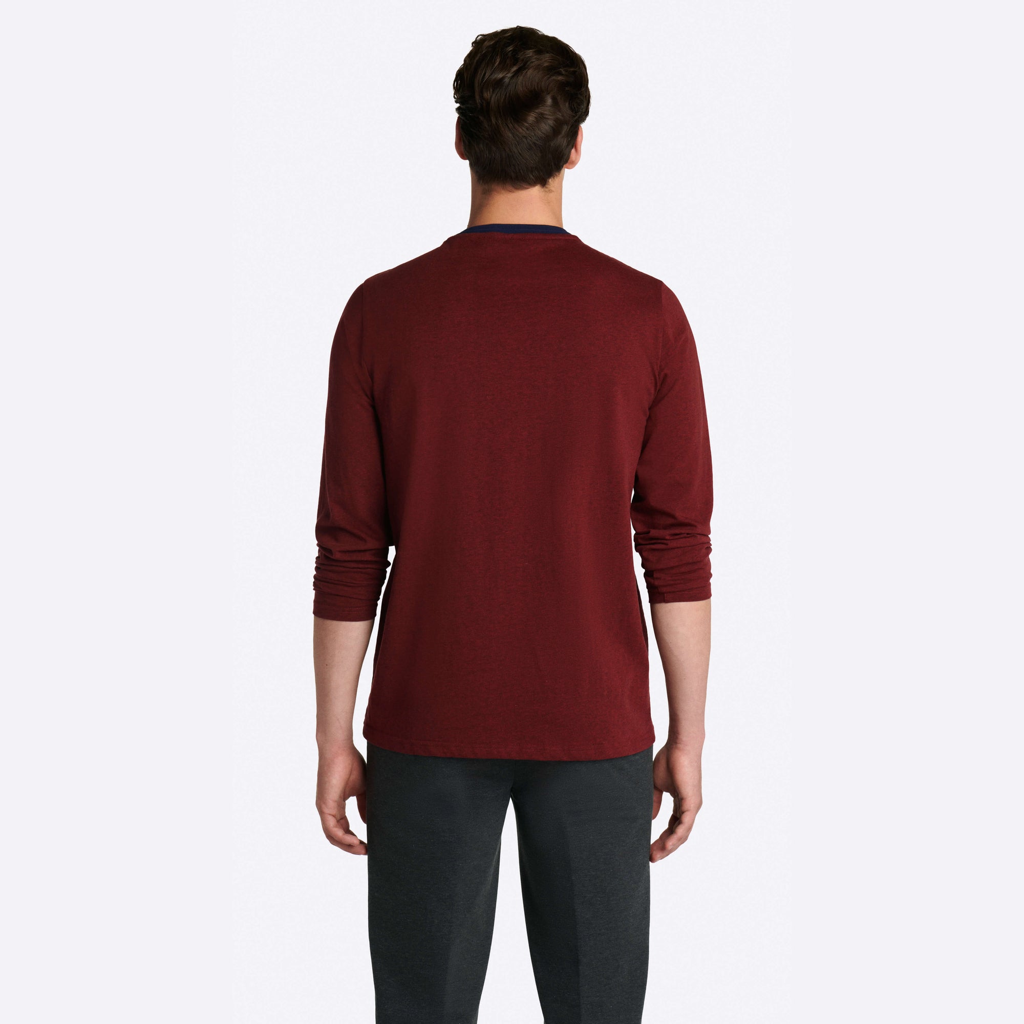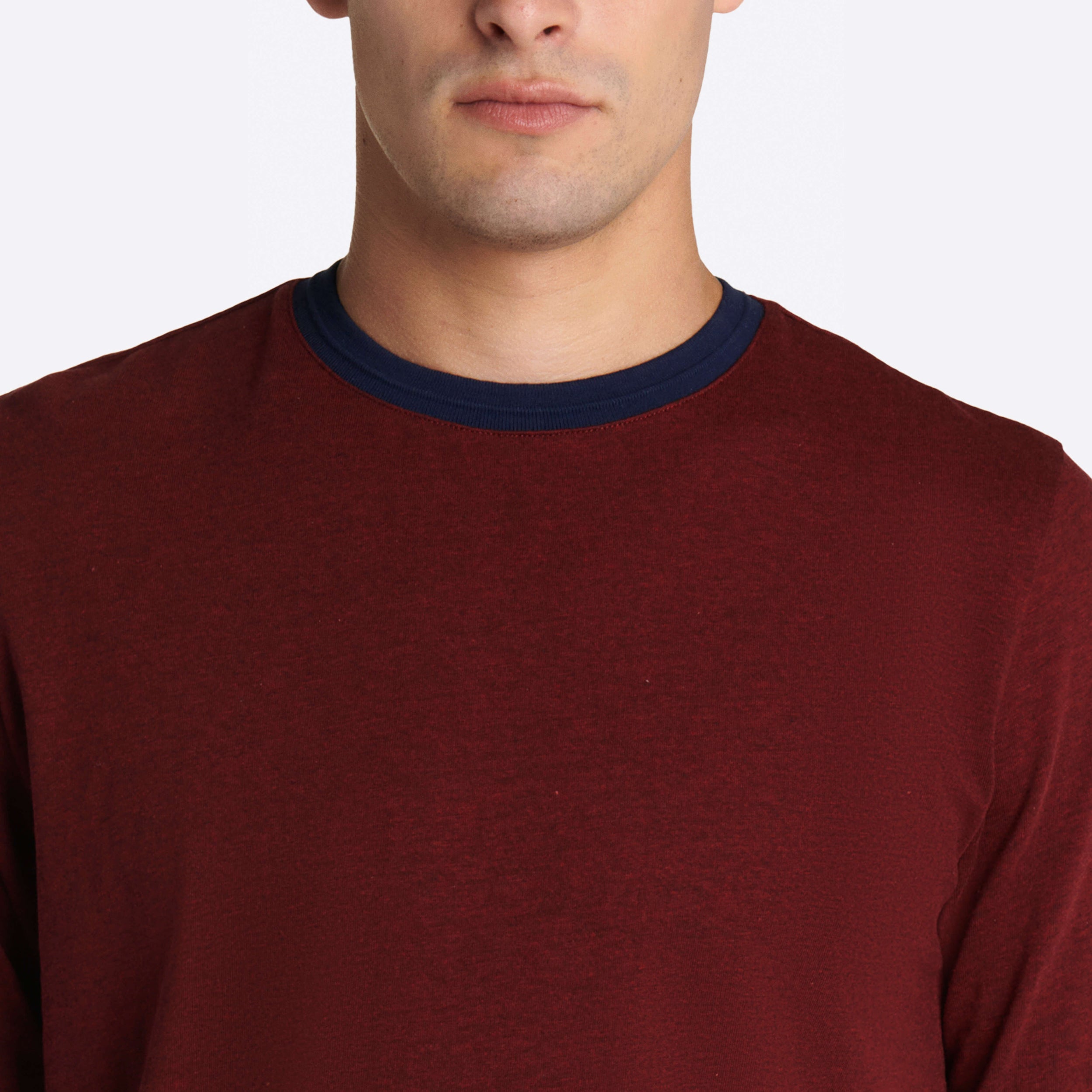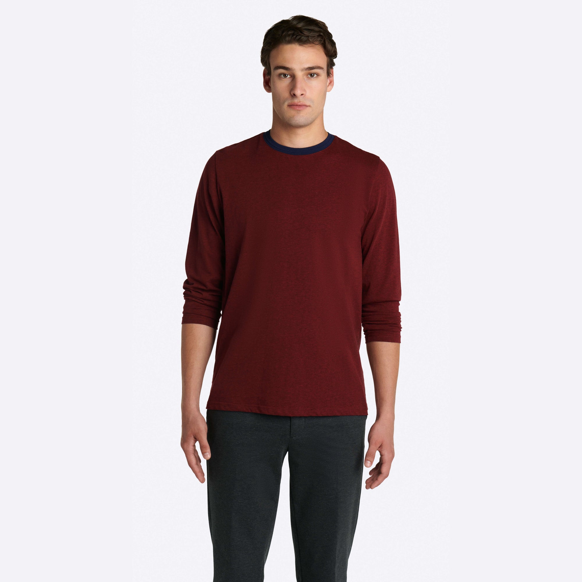 Marbled long sleeve crew neck in 100% cotton with contrast neckline.