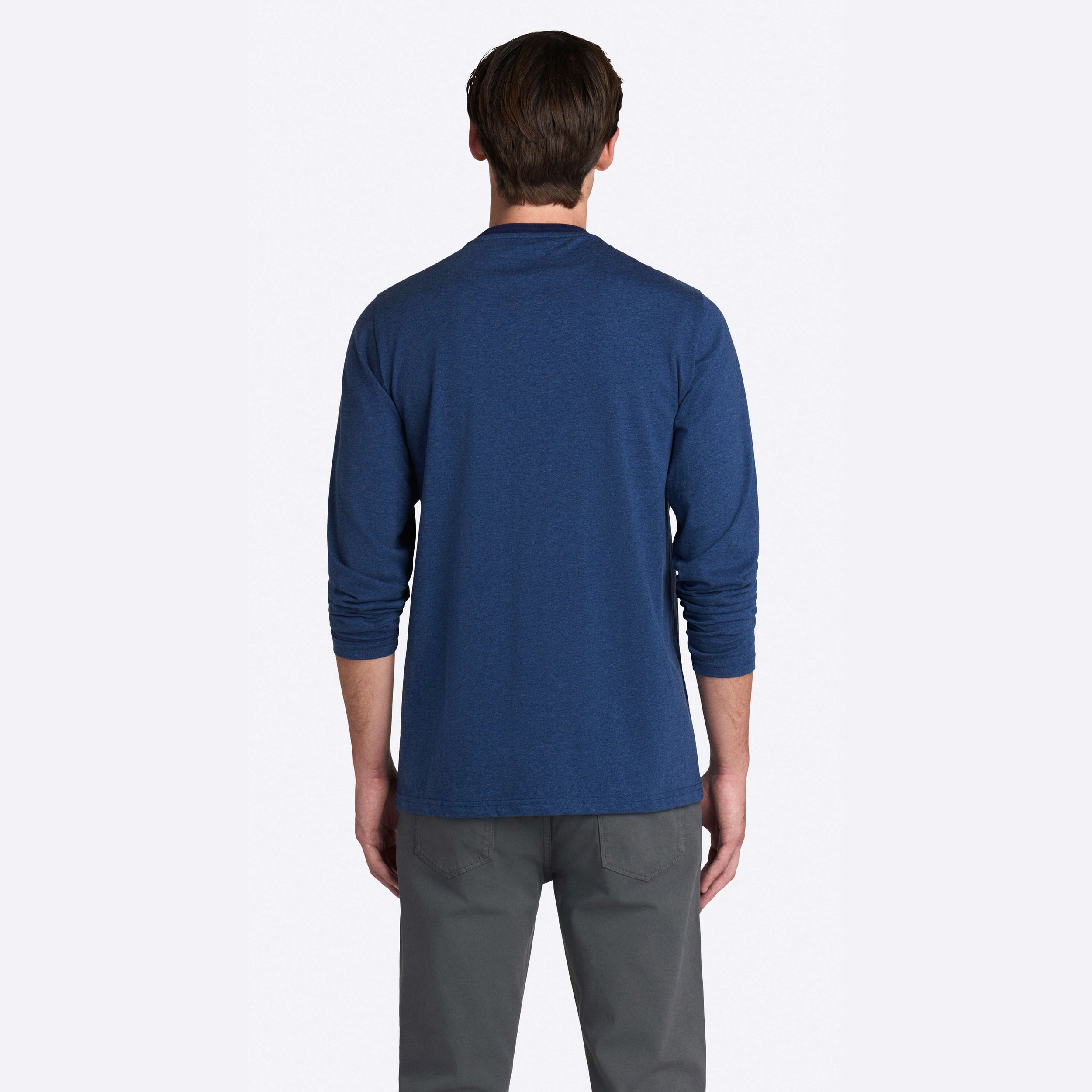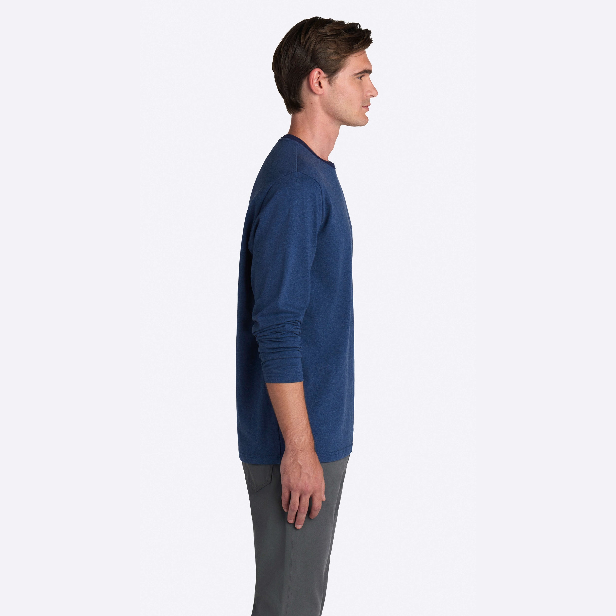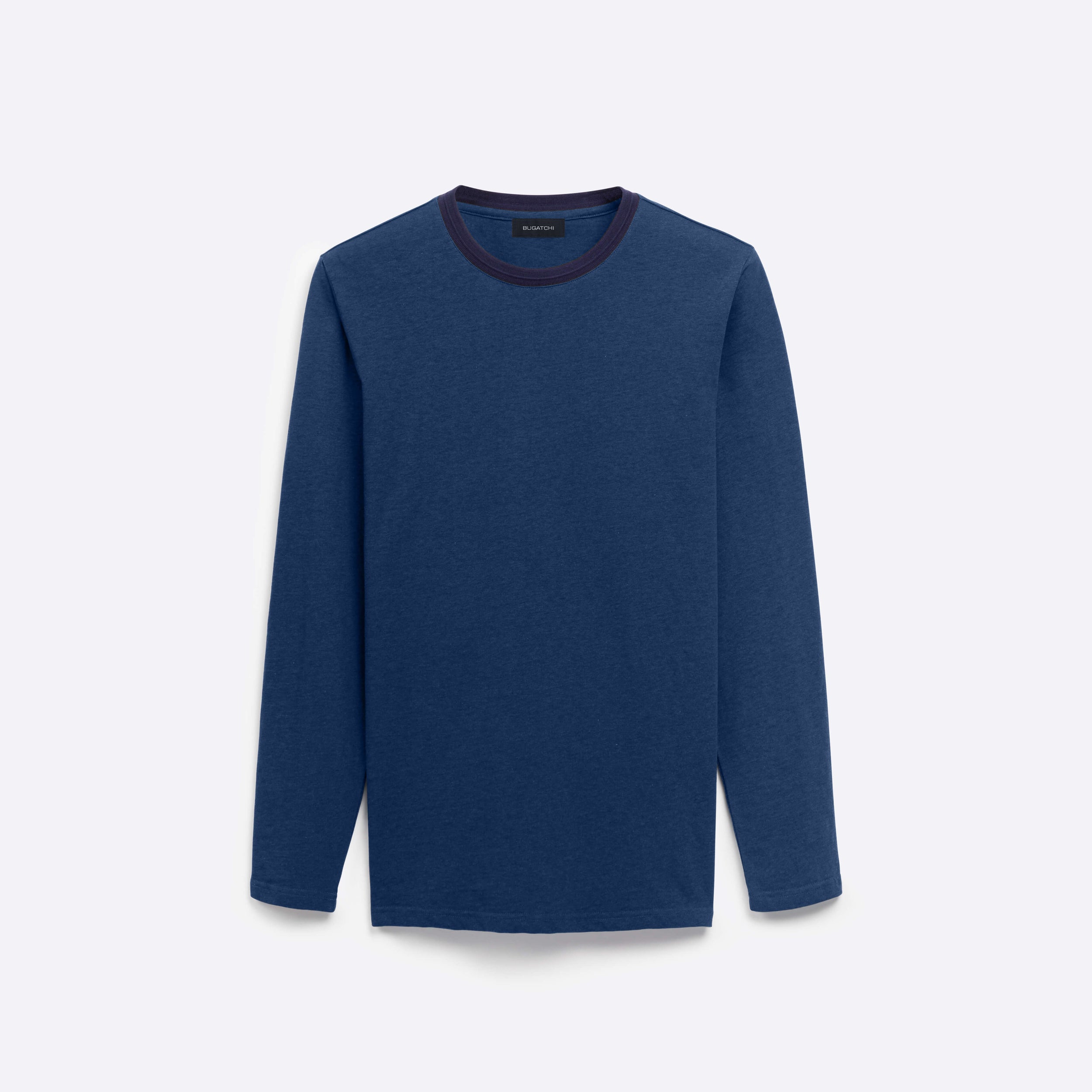 Marbled long sleeve crew neck in 100% cotton with contrast neckline.