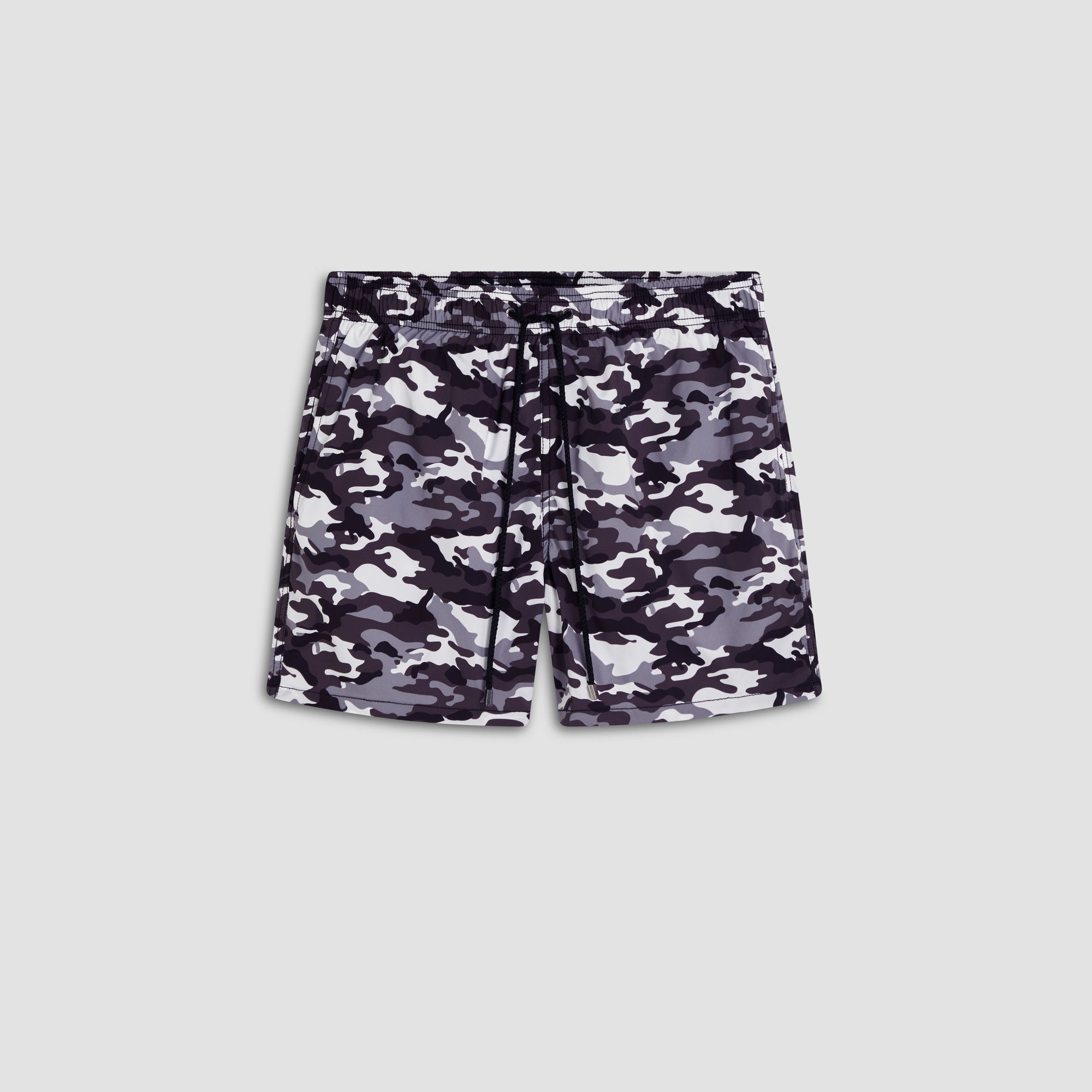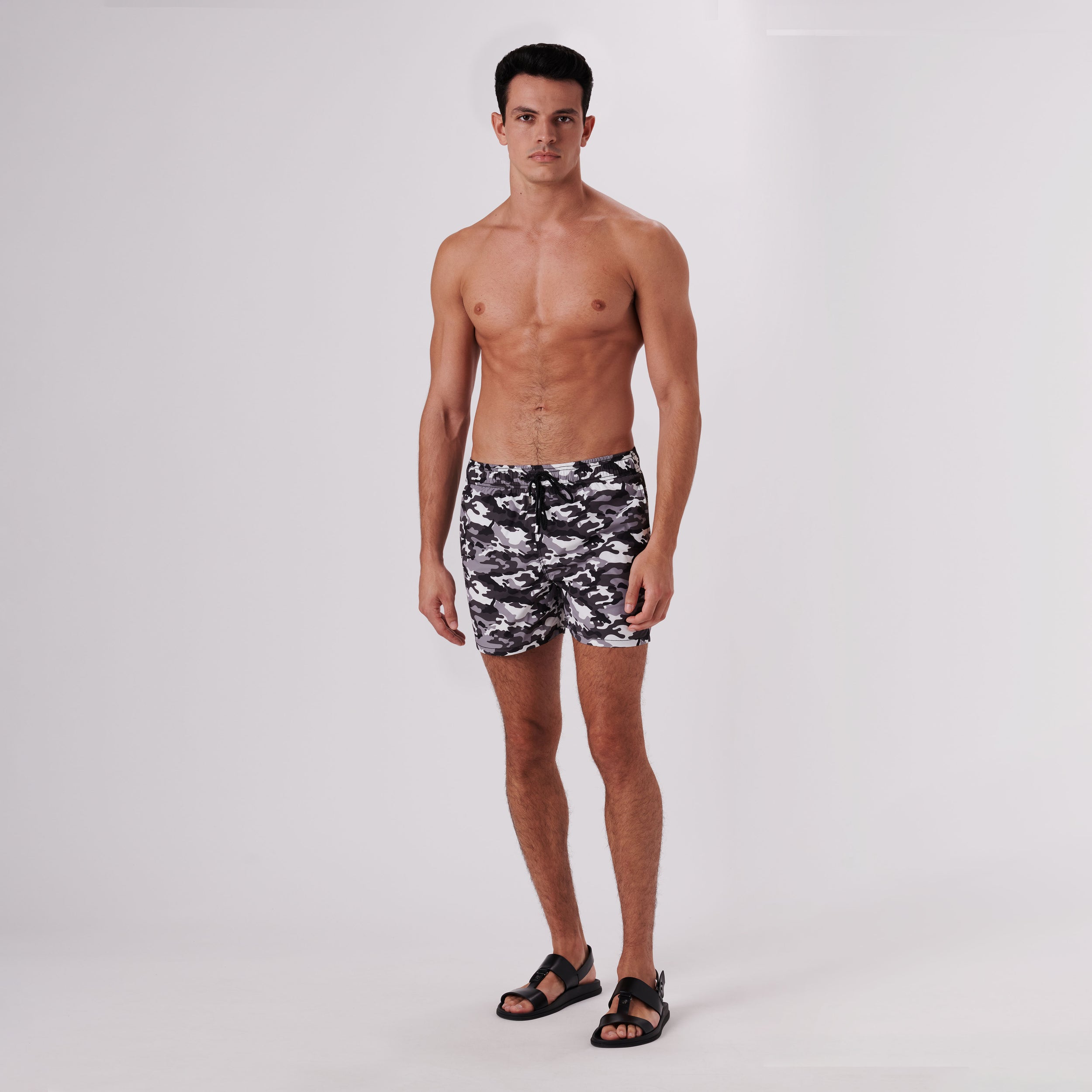 Max camouflage swim trunks in lightweight, easy care, quick-dry, comfort stretch polyester with resistance to UV rays, chlorine, salt and sunscreen feature an elasticized waistband, drawstring closure, breathable stretch mesh lining, drainage grommets, side pockets and back zipper pocket.