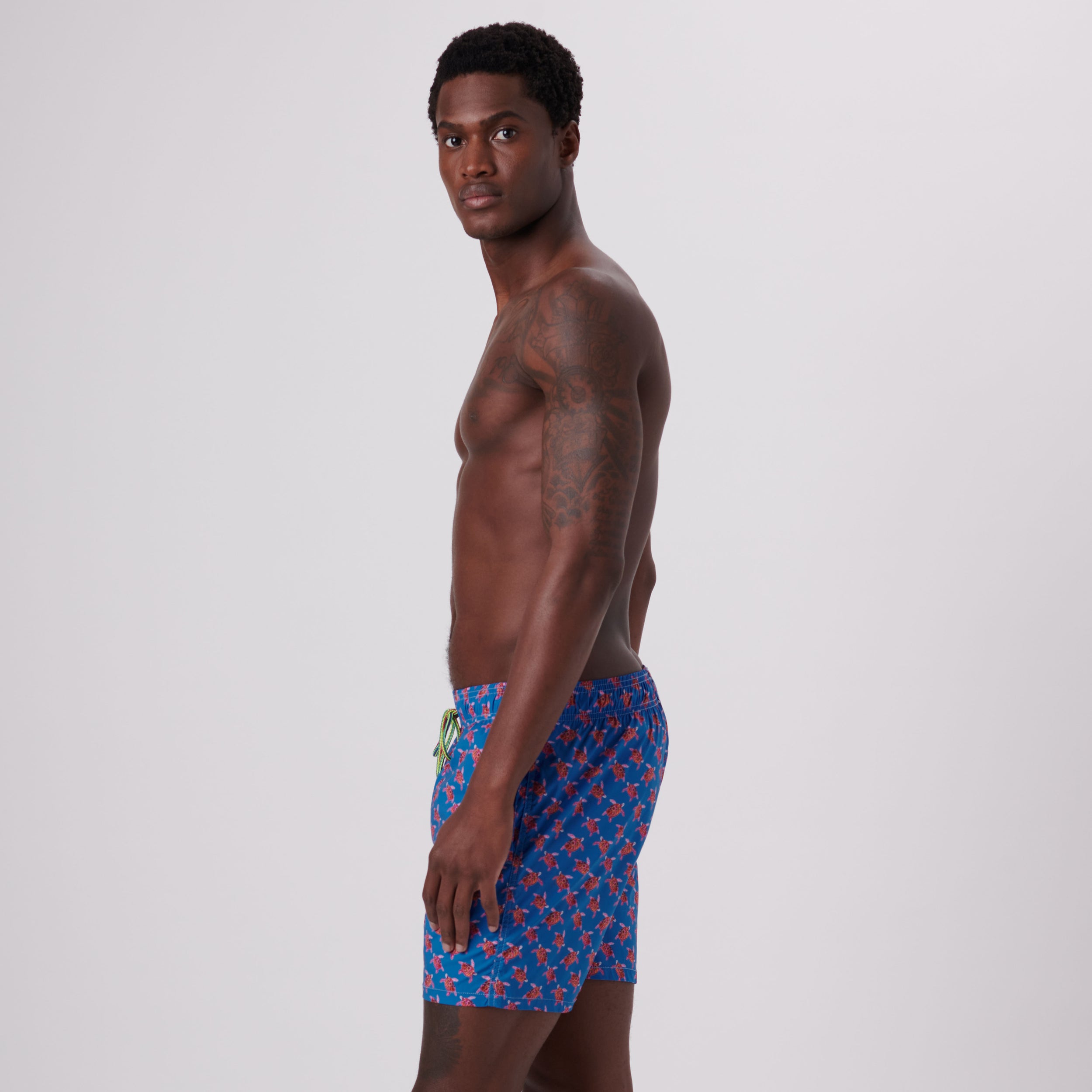 Max sea turtles swim trunks in lightweight, easy care, quick-dry, comfort stretch polyester with resistance to UV rays, chlorine, salt and sunscreen feature an elasticized waistband, drawstring closure, breathable stretch mesh lining, drainage grommets, side pockets and back zipper pocket.