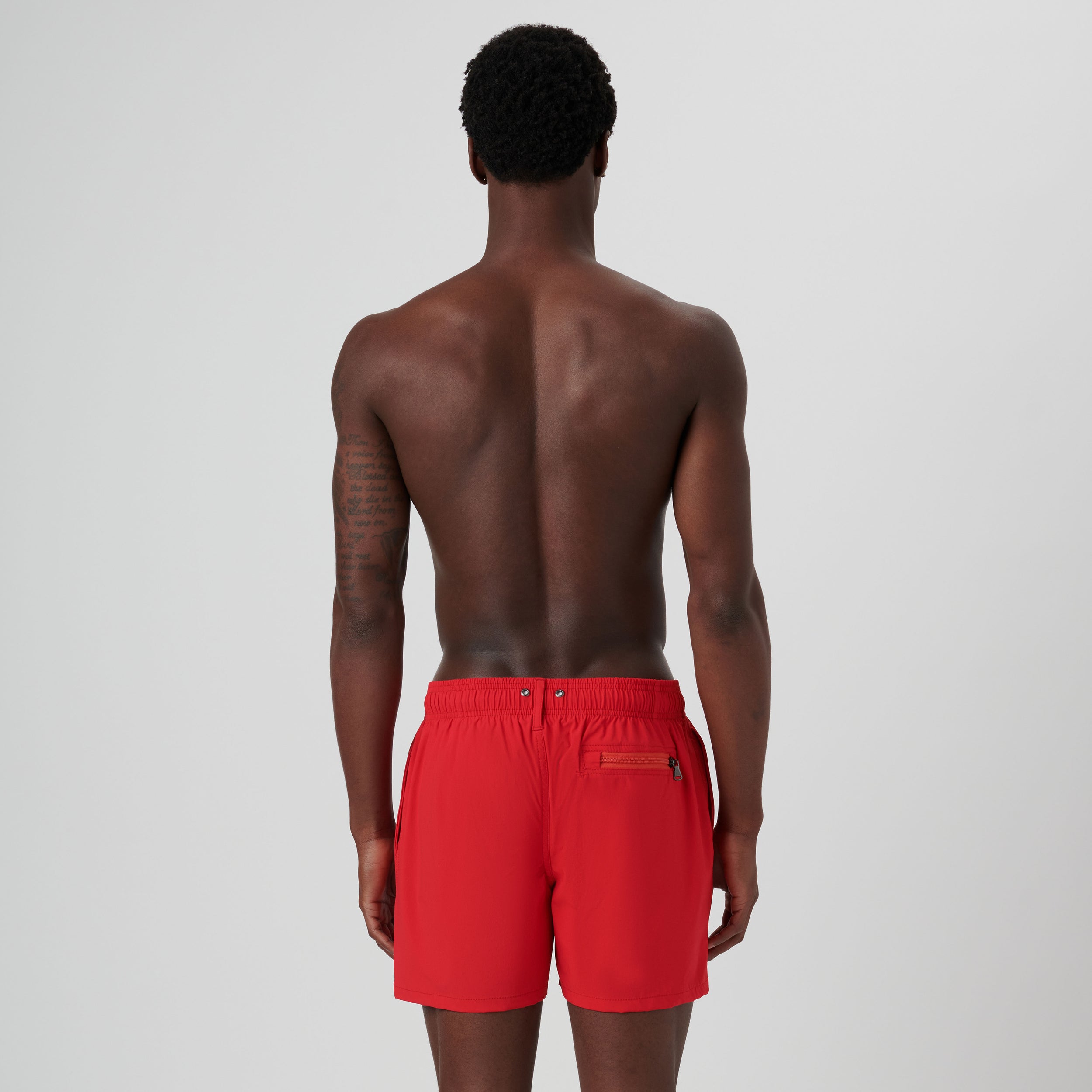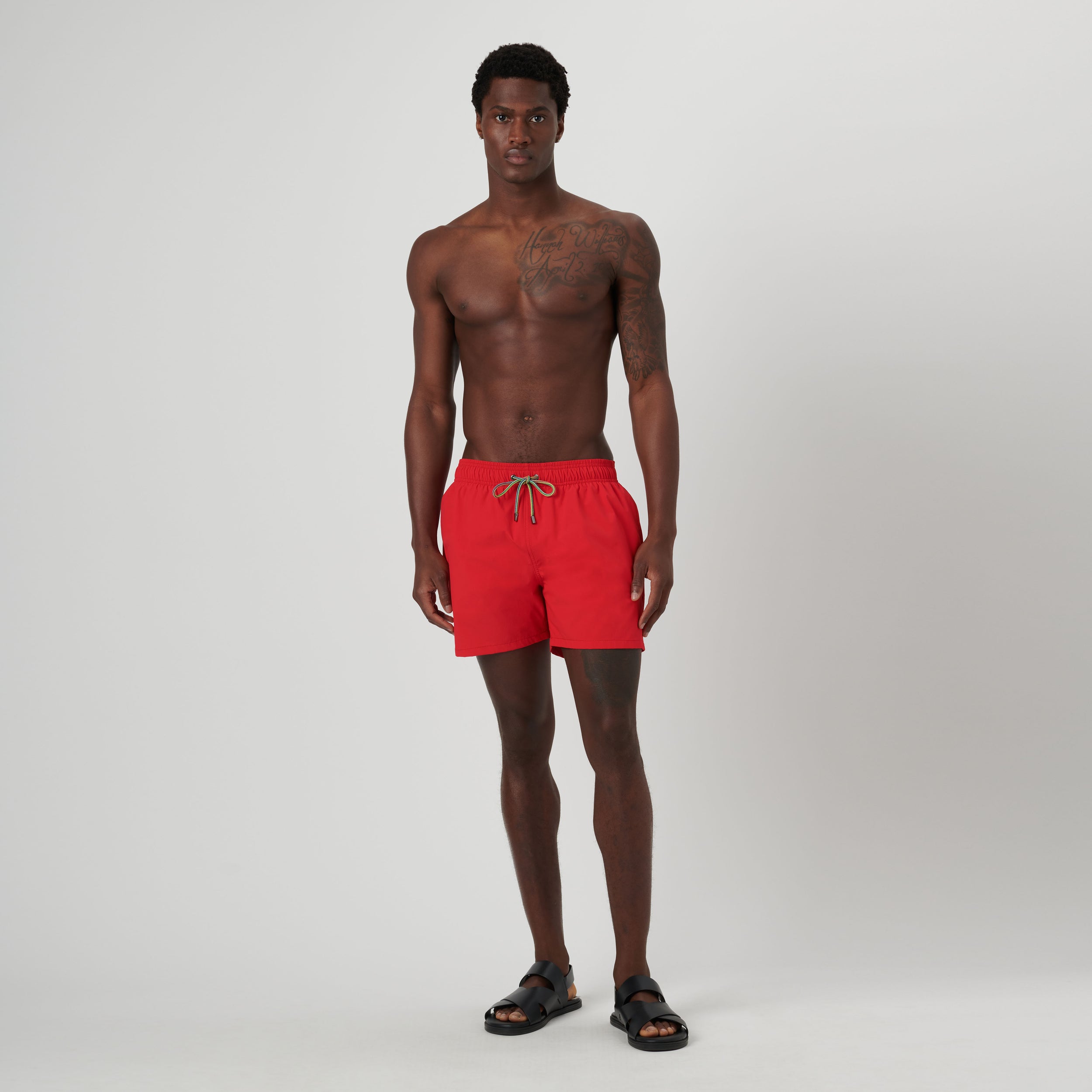 Max solid swim trunks in lightweight, easy care, quick-dry, comfort stretch nylon spandex blend with resistance to UV rays, chlorine, salt and sunscreen feature an elasticized waistband, drawstring closure, breathable stretch mesh lining, drainage grommets, side pockets and back zipper pocket.