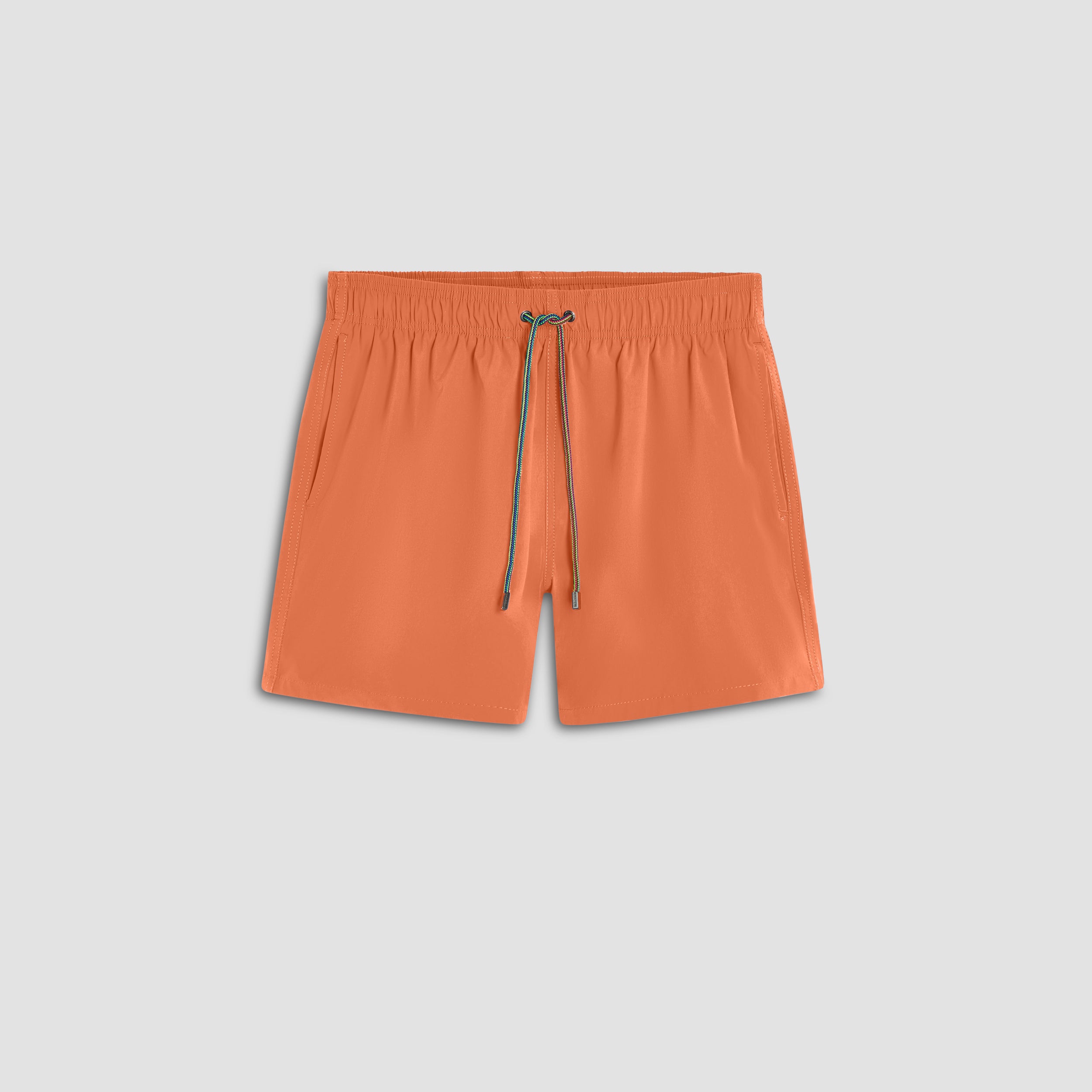 Max solid swim trunks in lightweight, easy care, quick-dry, comfort stretch nylon spandex blend with resistance to UV rays, chlorine, salt and sunscreen feature an elasticized waistband, drawstring closure, breathable stretch mesh lining, drainage grommets, side pockets and back zipper pocket.