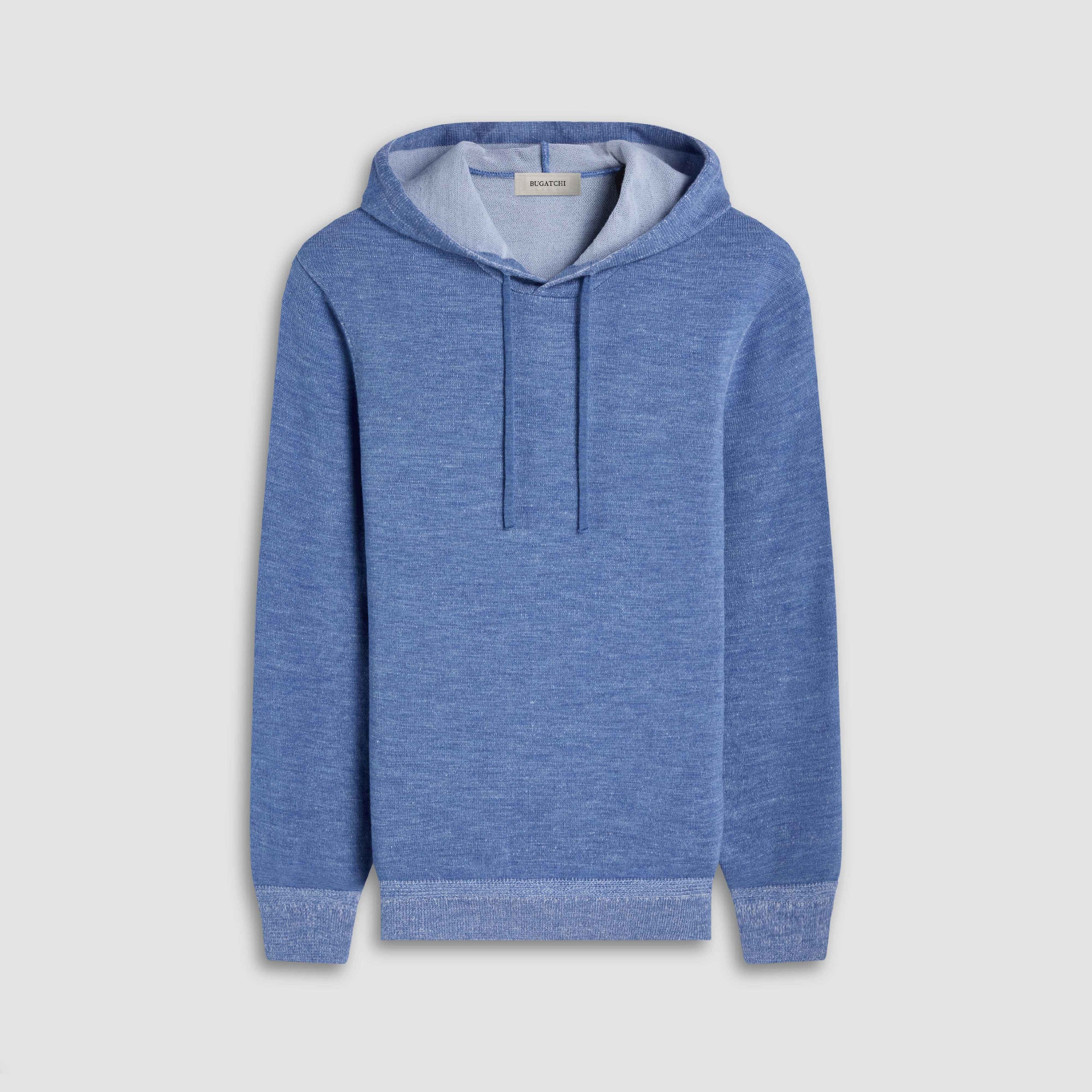 Crafted from 100% extrafine merino wool, this melange hoodie features a smooth stockinette stitch with contrast melange ribbed cuffs and hem accented by subtle herringbone stitch detailing. The adjustable drawstring hood is lined for added comfort, blending casual style with elevated texture. A versatile layer for refined weekend wear or relaxed outings.