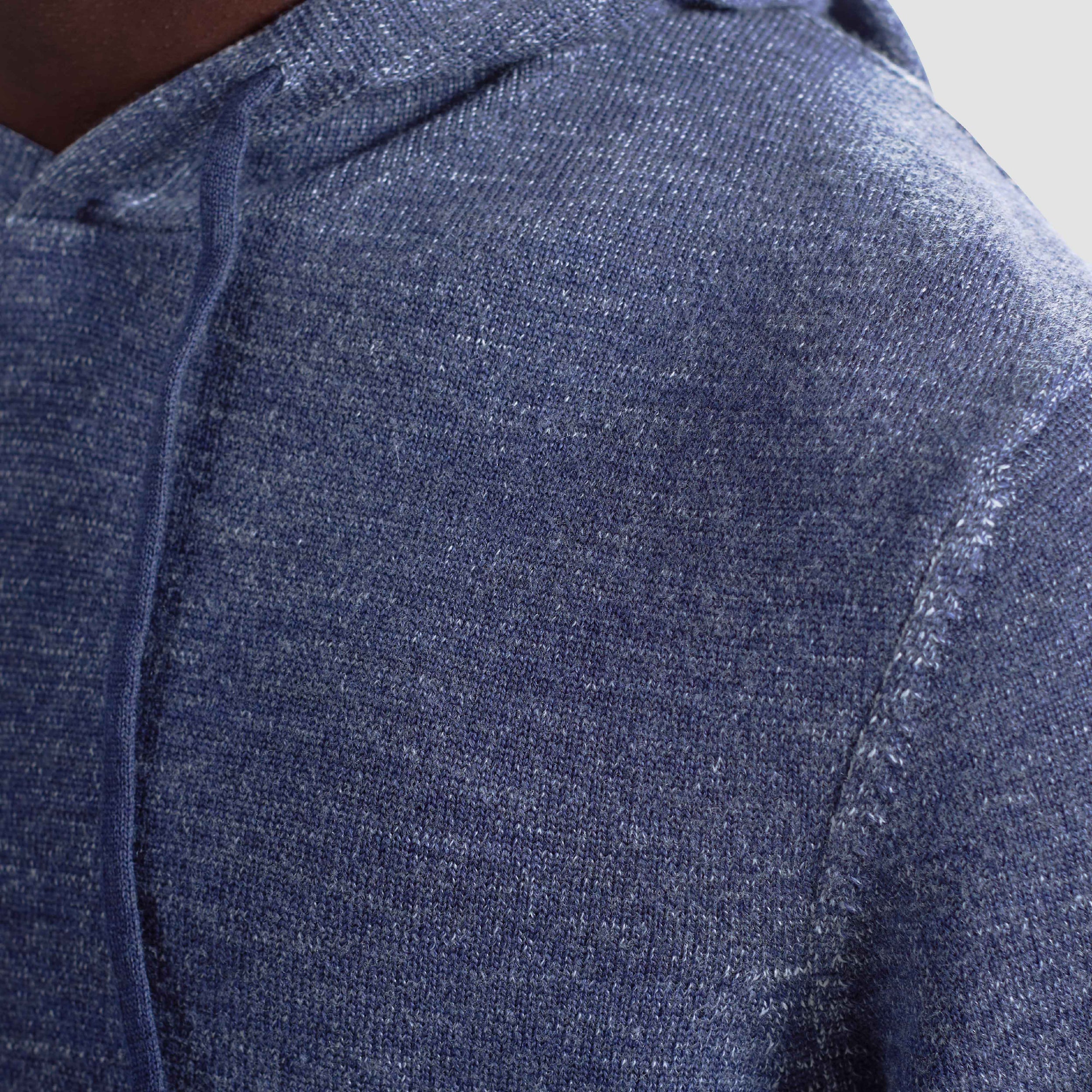 Crafted from 100% extrafine merino wool, this melange hoodie features a smooth stockinette stitch with contrast melange ribbed cuffs and hem accented by subtle herringbone stitch detailing. The adjustable drawstring hood is lined for added comfort, blending casual style with elevated texture. A versatile layer for refined weekend wear or relaxed outings.