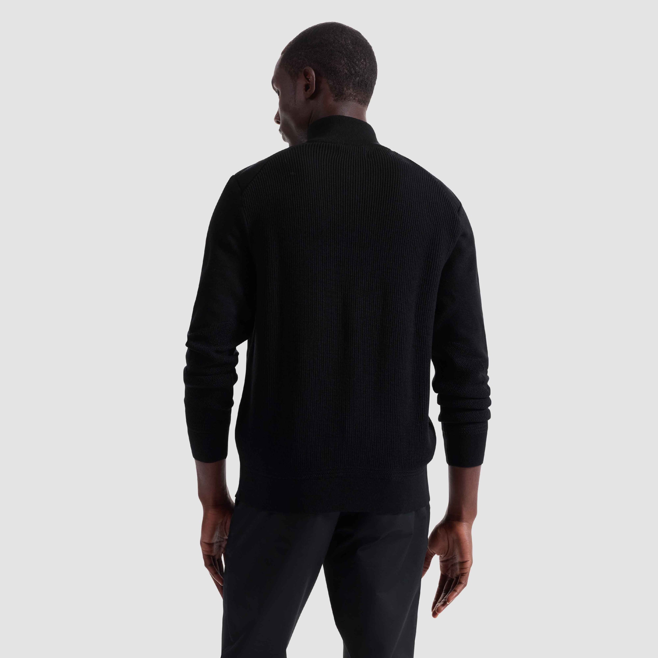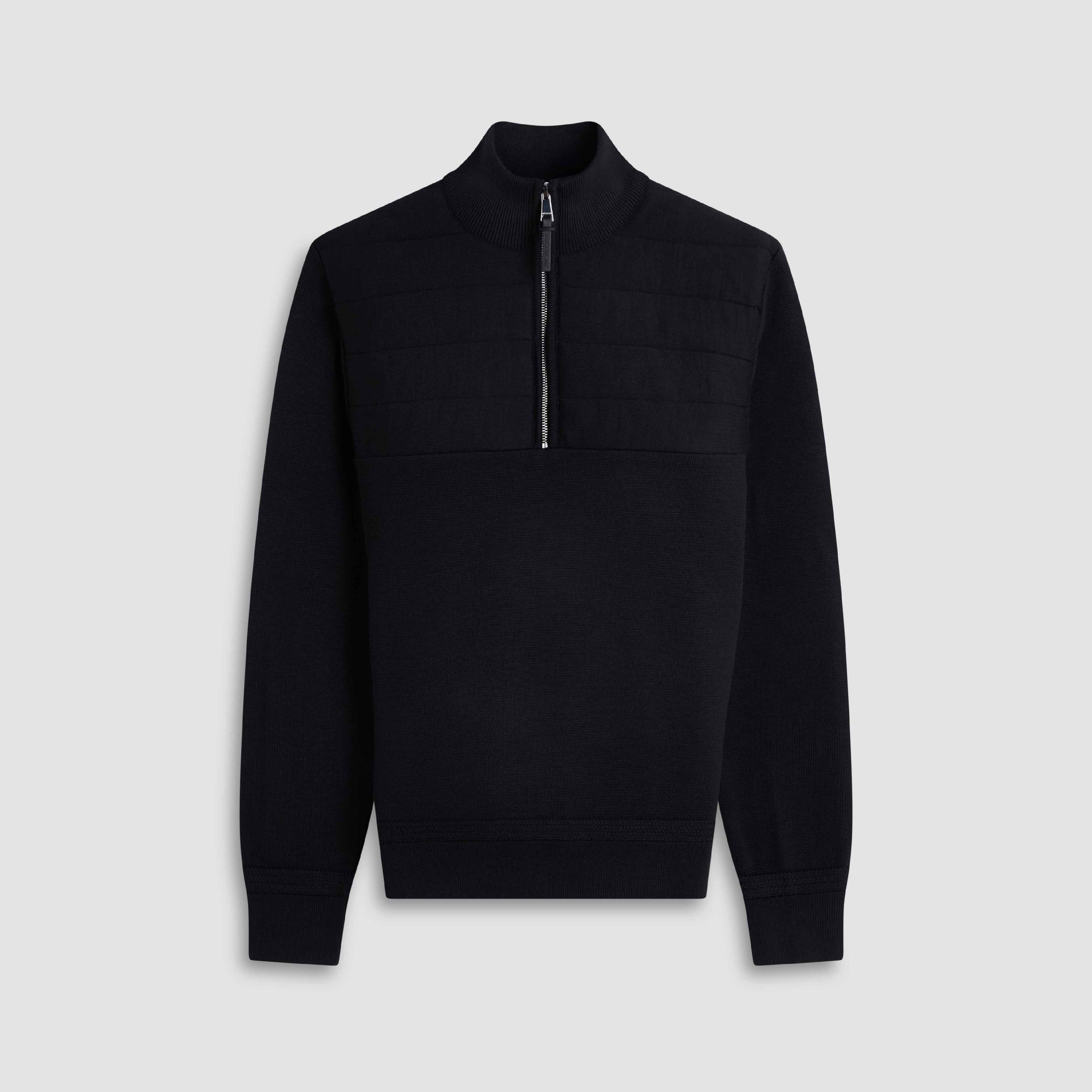 Crafted from 100% extrafine Merino wool, this long sleeve quarter zip sweater features a melange jersey knit body with the upper chest panel in a quilted pattern for added texture and visual interest. The cuffs, and hem include a distinctive patterned detail, enhancing the structure and elevating the overall finish. Ideal for layering or wearing solo, it offers both warmth and contemporary style.