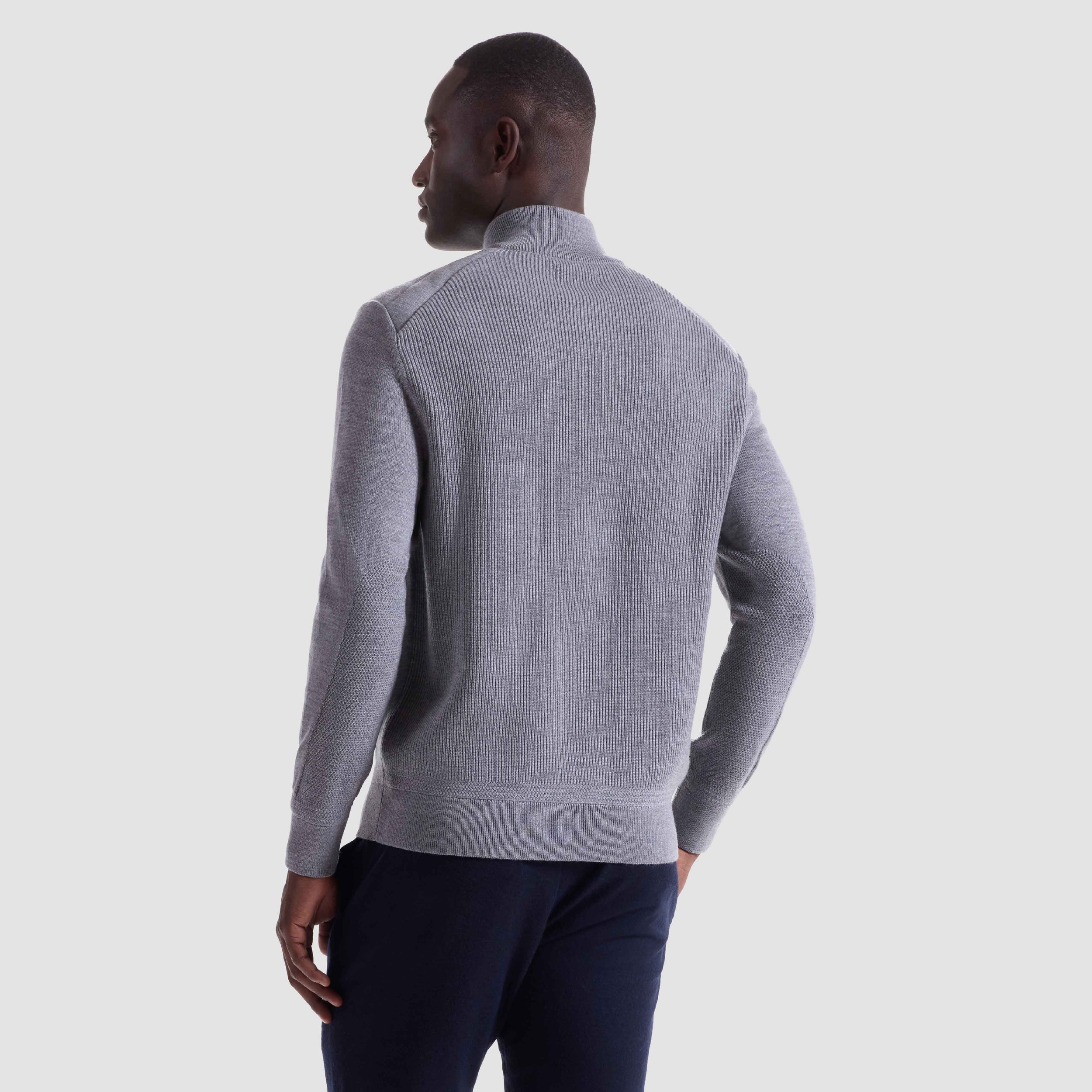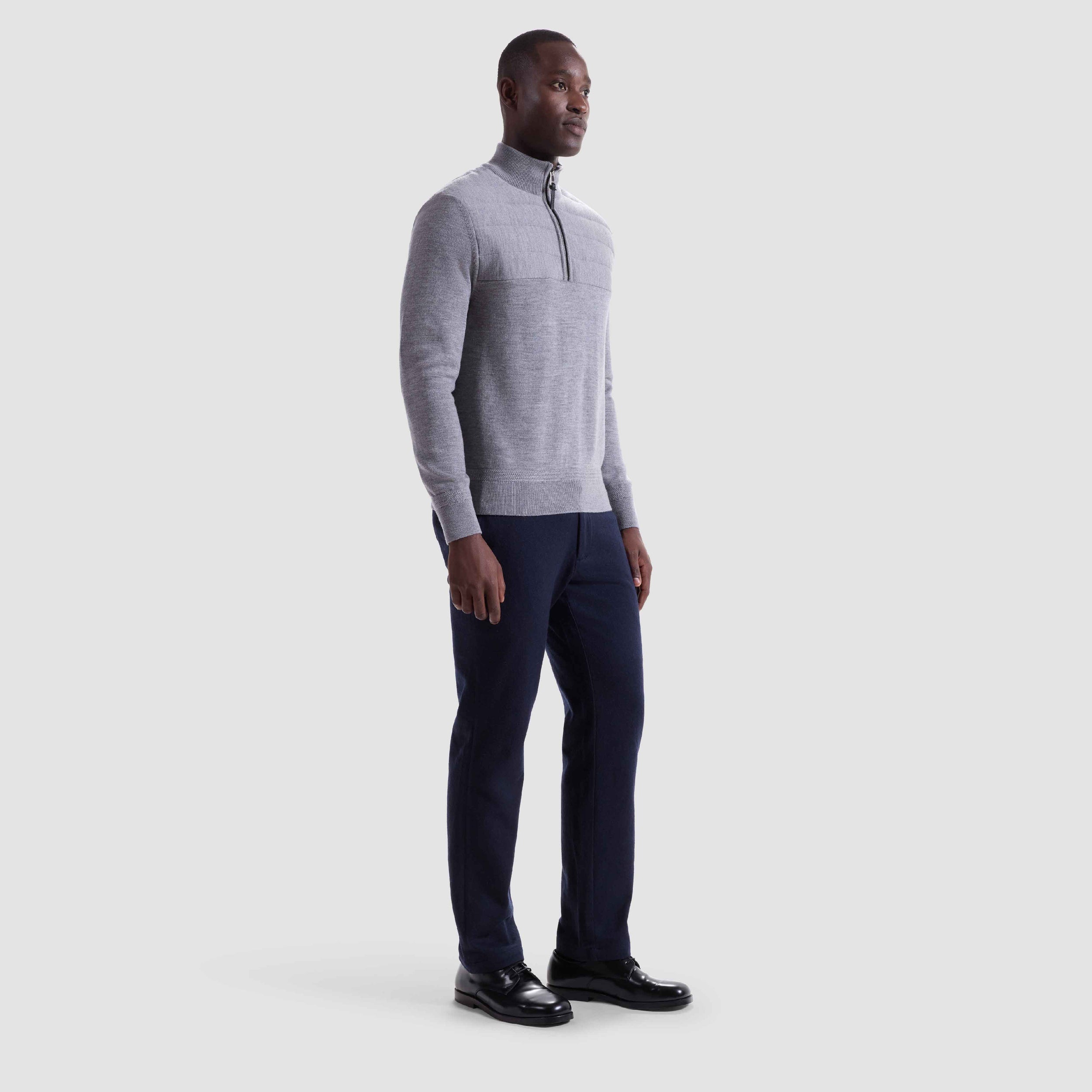 Crafted from 100% extrafine Merino wool, this long sleeve quarter zip sweater features a melange jersey knit body with the upper chest panel in a quilted pattern for added texture and visual interest. The cuffs, and hem include a distinctive patterned detail, enhancing the structure and elevating the overall finish. Ideal for layering or wearing solo, it offers both warmth and contemporary style.