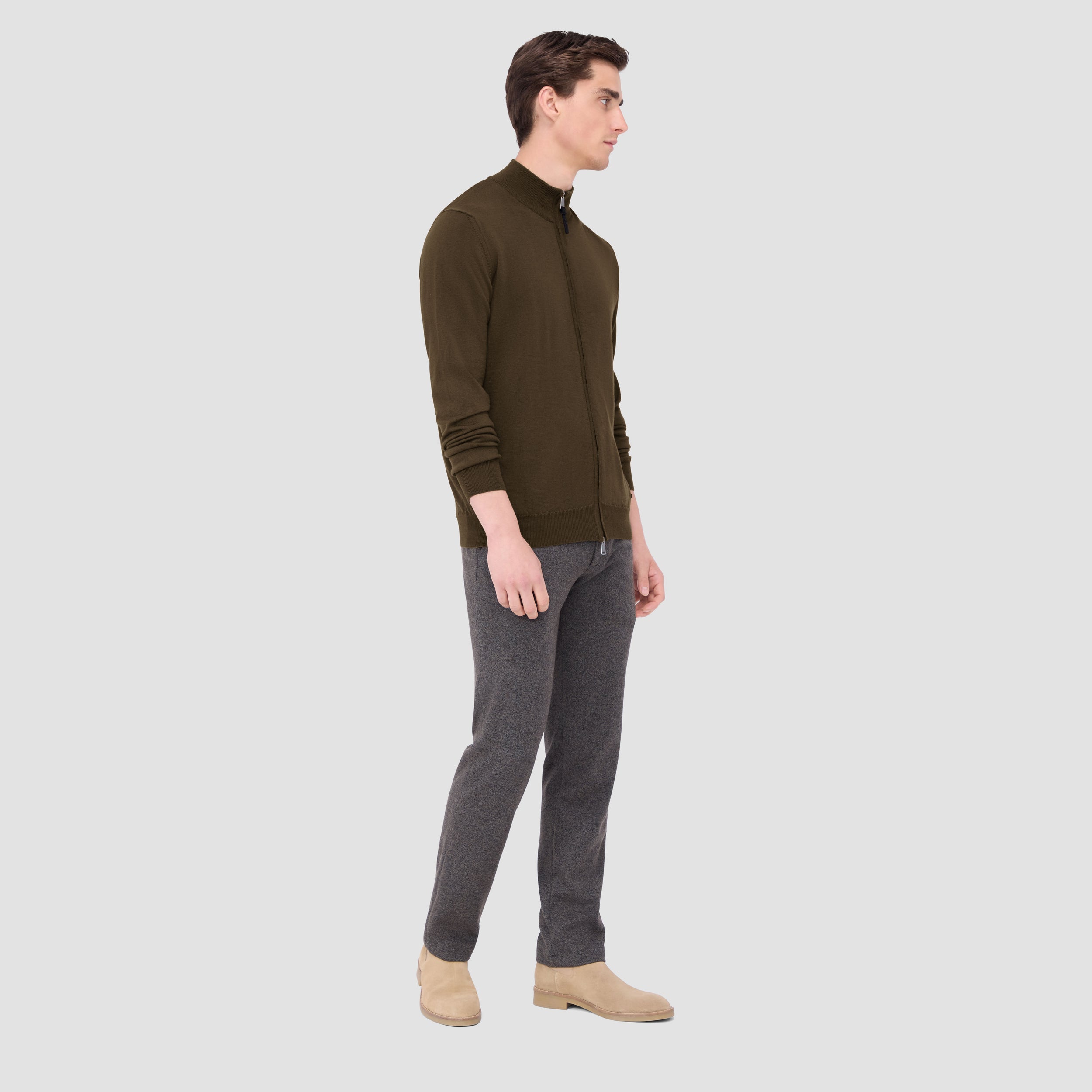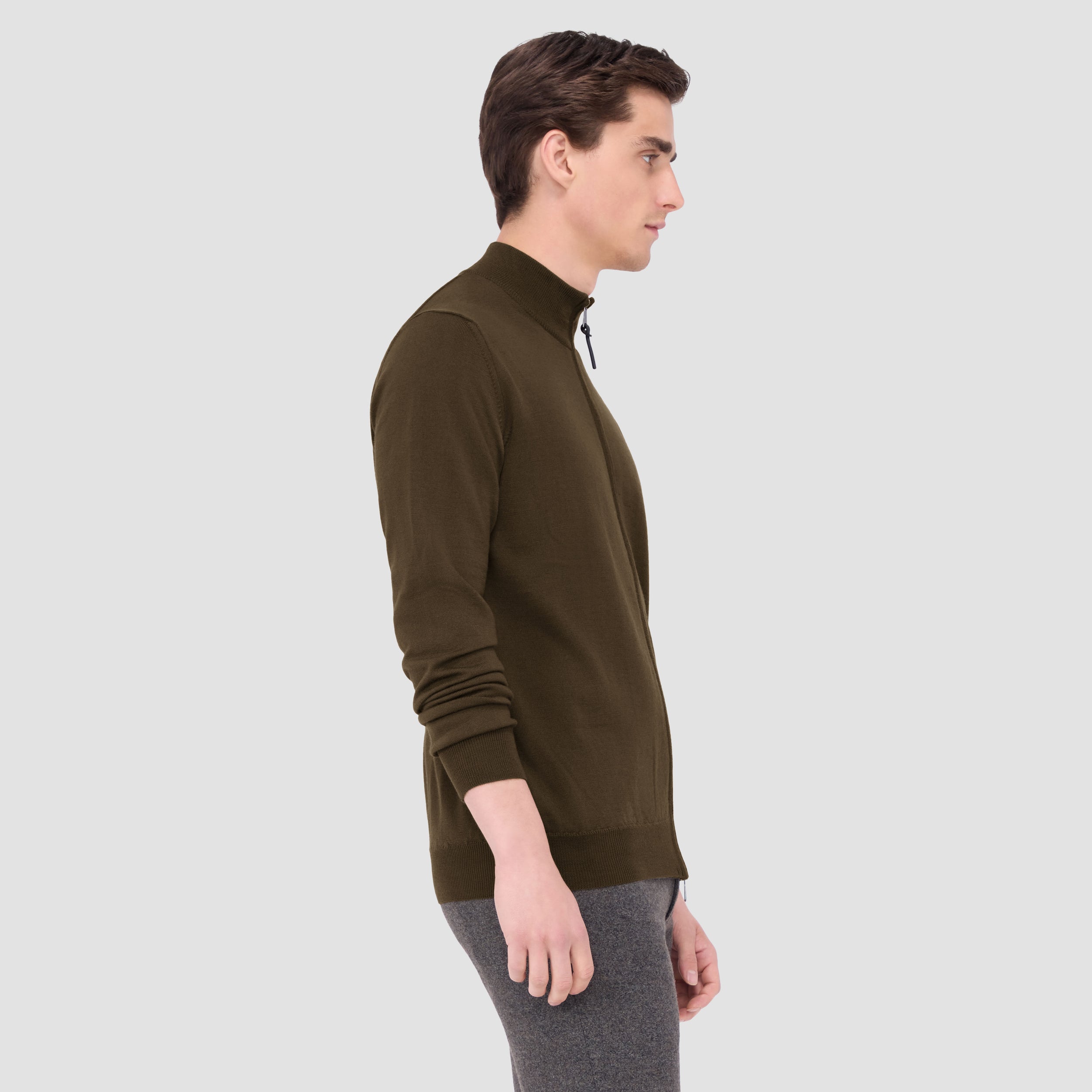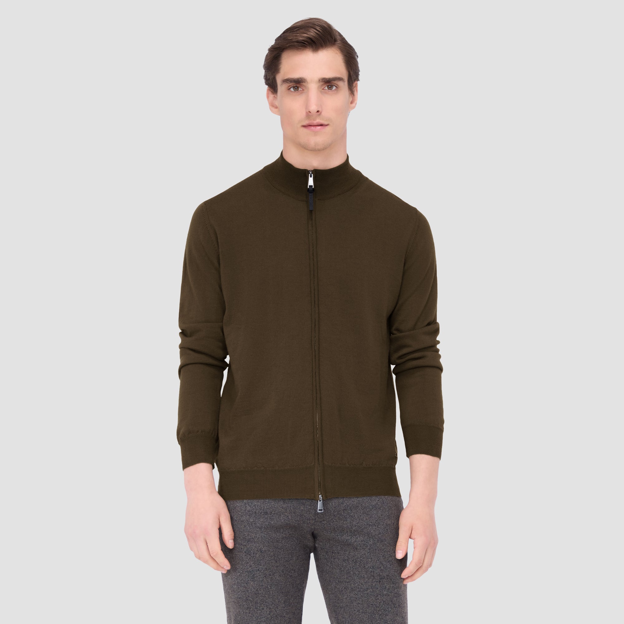 This full-zip sweater in 100% Super Merino wool with Harmony 4.0 special finish is made in Italy and features a two-way zipper, and ribbed mock neck, cuffs, and waistband. Super Merino wool is a high grade, extra fine, exceptionally soft wool that is breathable, moisture-wicking, water repellent, machine-washable, and crease-proof for long lasting performance wash after wash.