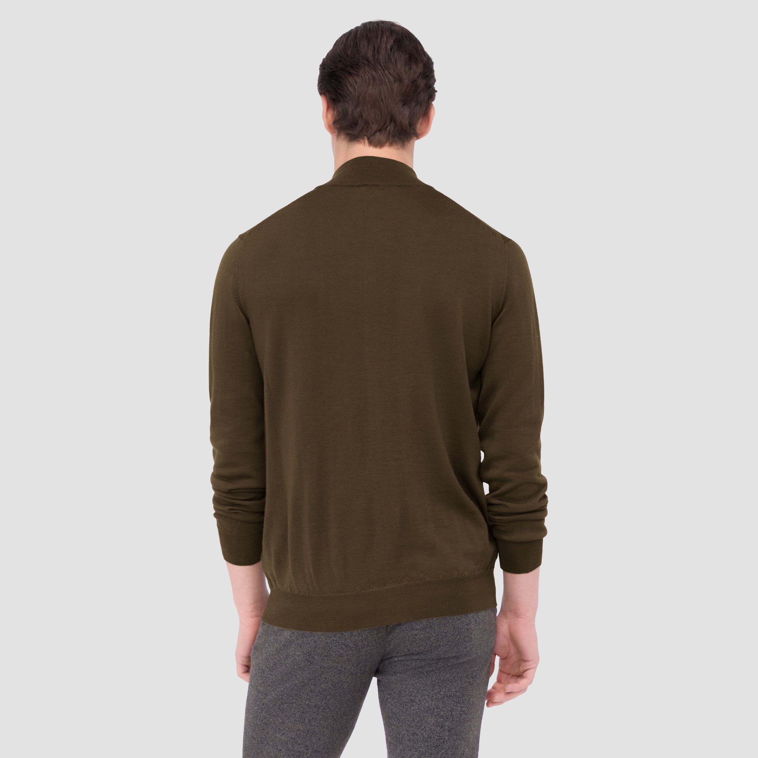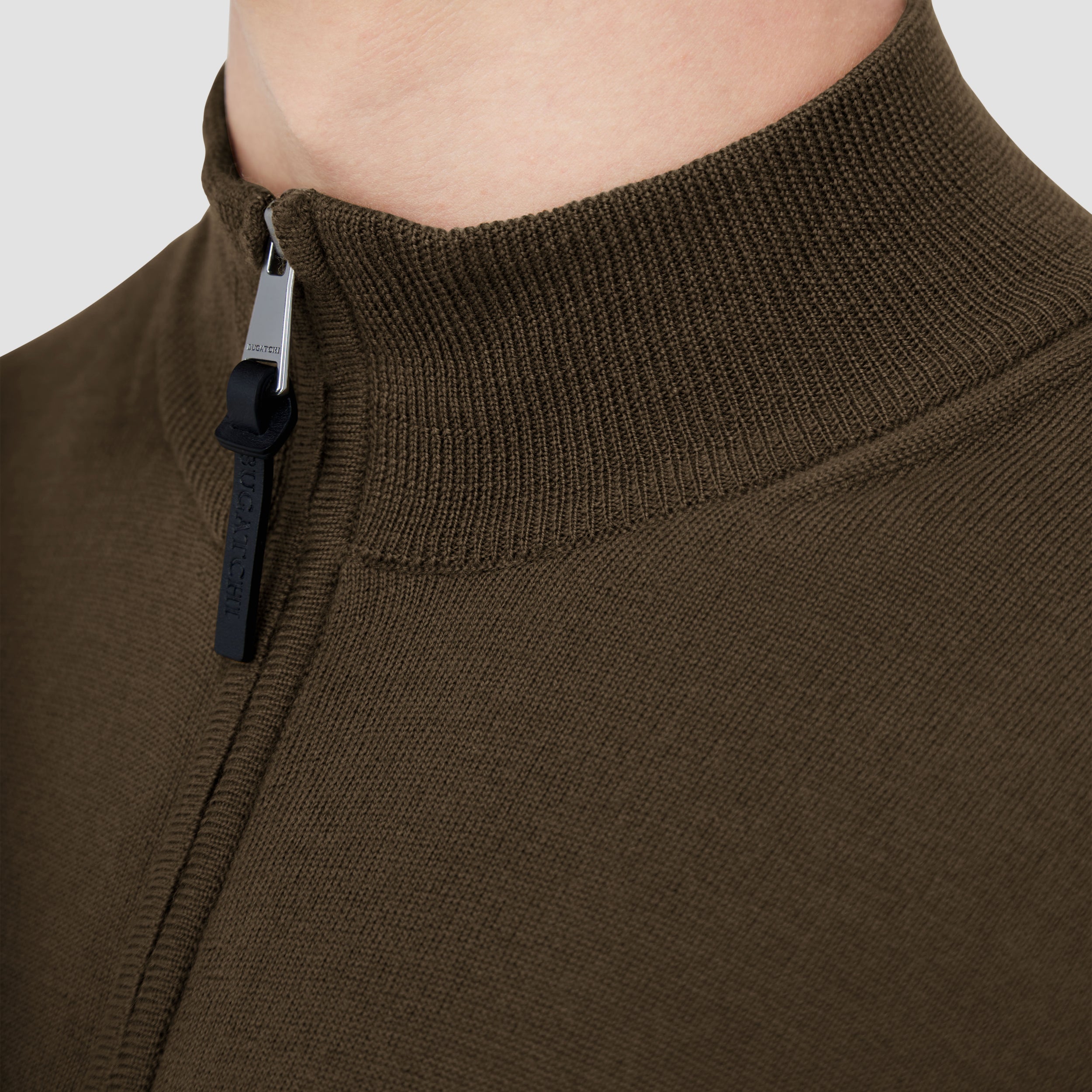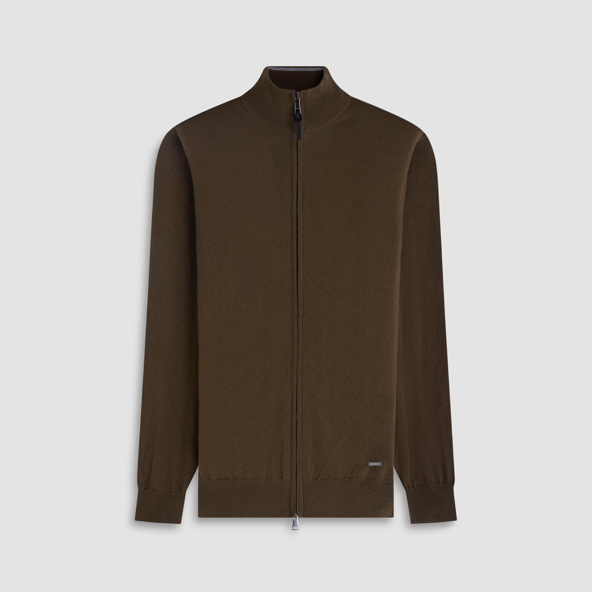 This full-zip sweater in 100% Super Merino wool with Harmony 4.0 special finish is made in Italy and features a two-way zipper, and ribbed mock neck, cuffs, and waistband. Super Merino wool is a high grade, extra fine, exceptionally soft wool that is breathable, moisture-wicking, water repellent, machine-washable, and crease-proof for long lasting performance wash after wash.