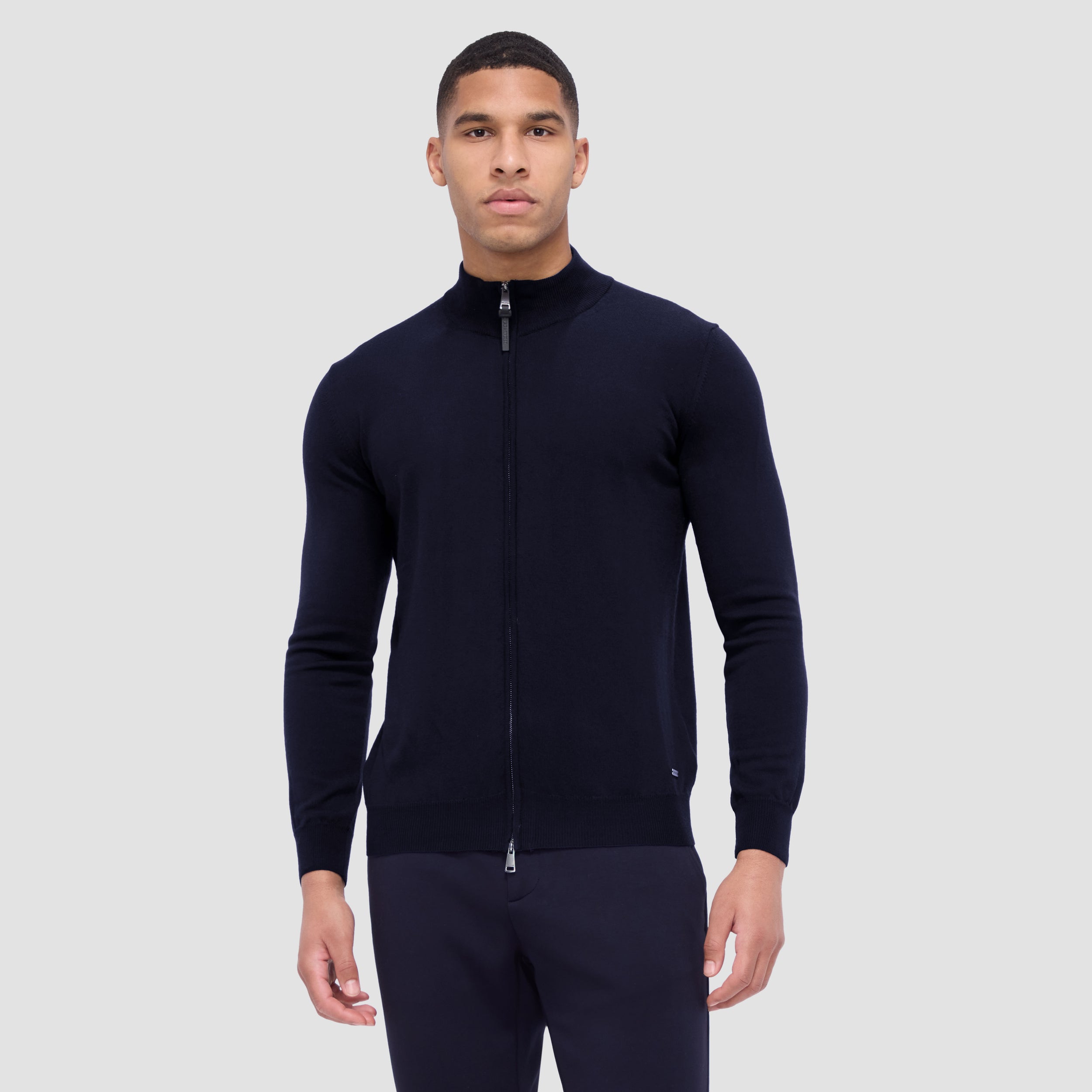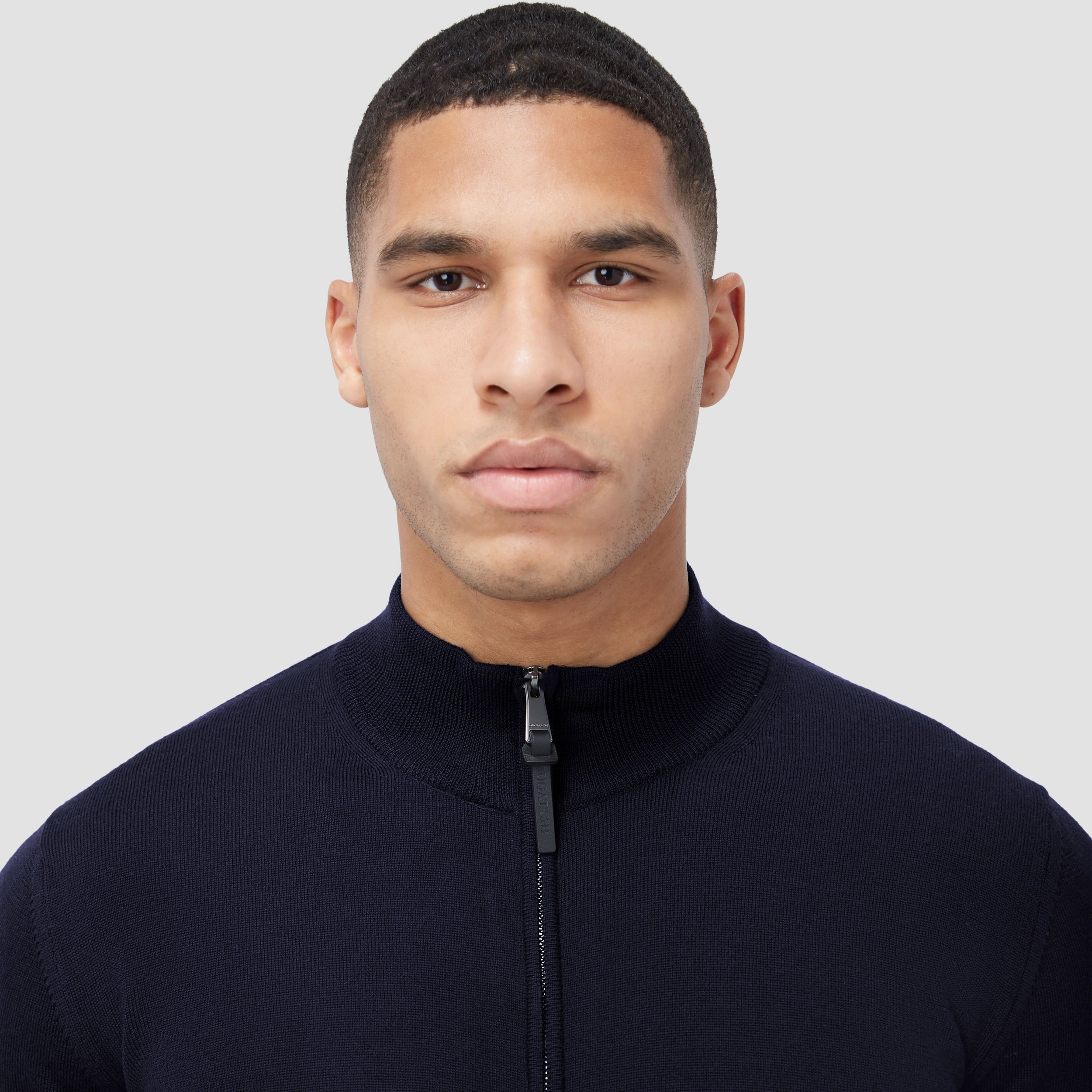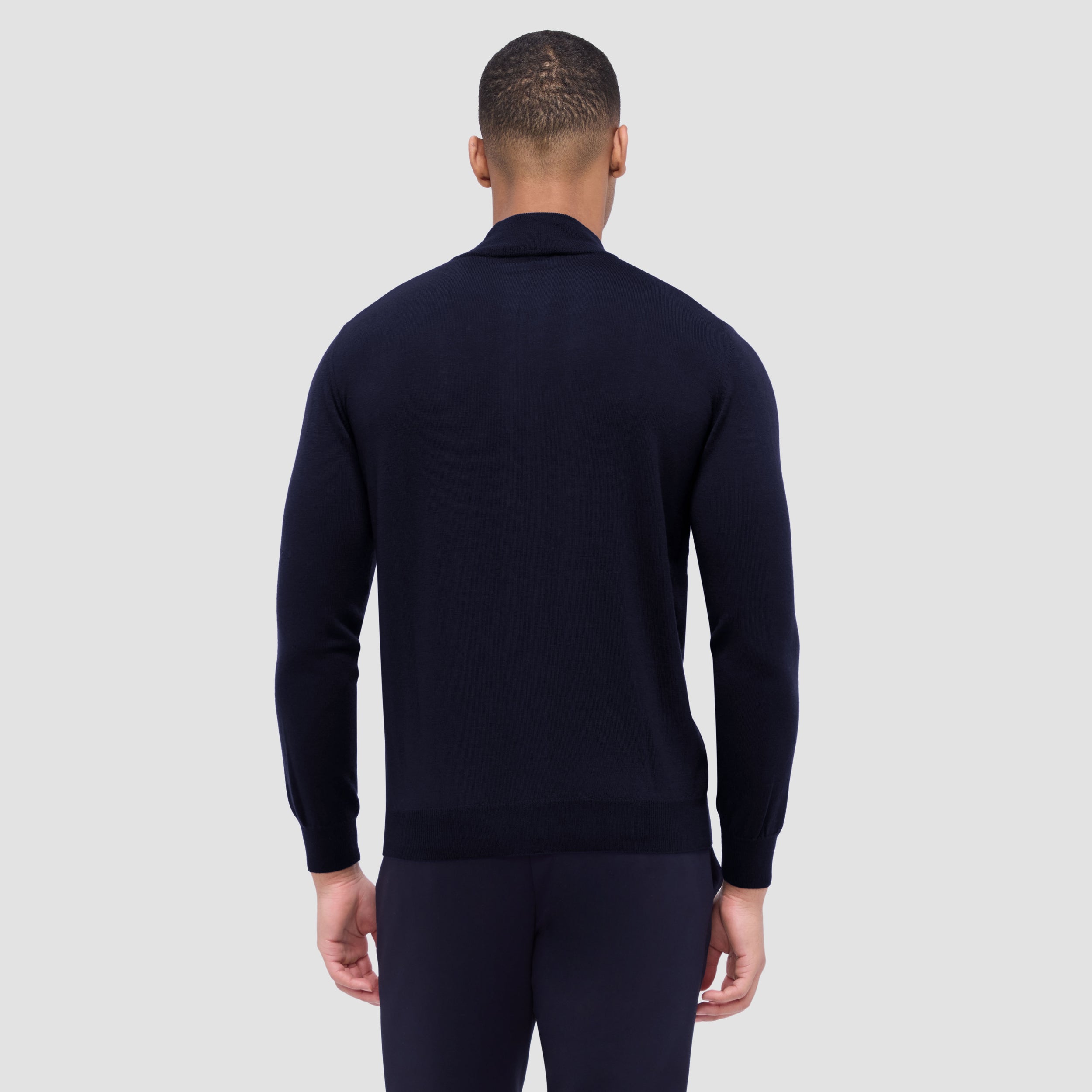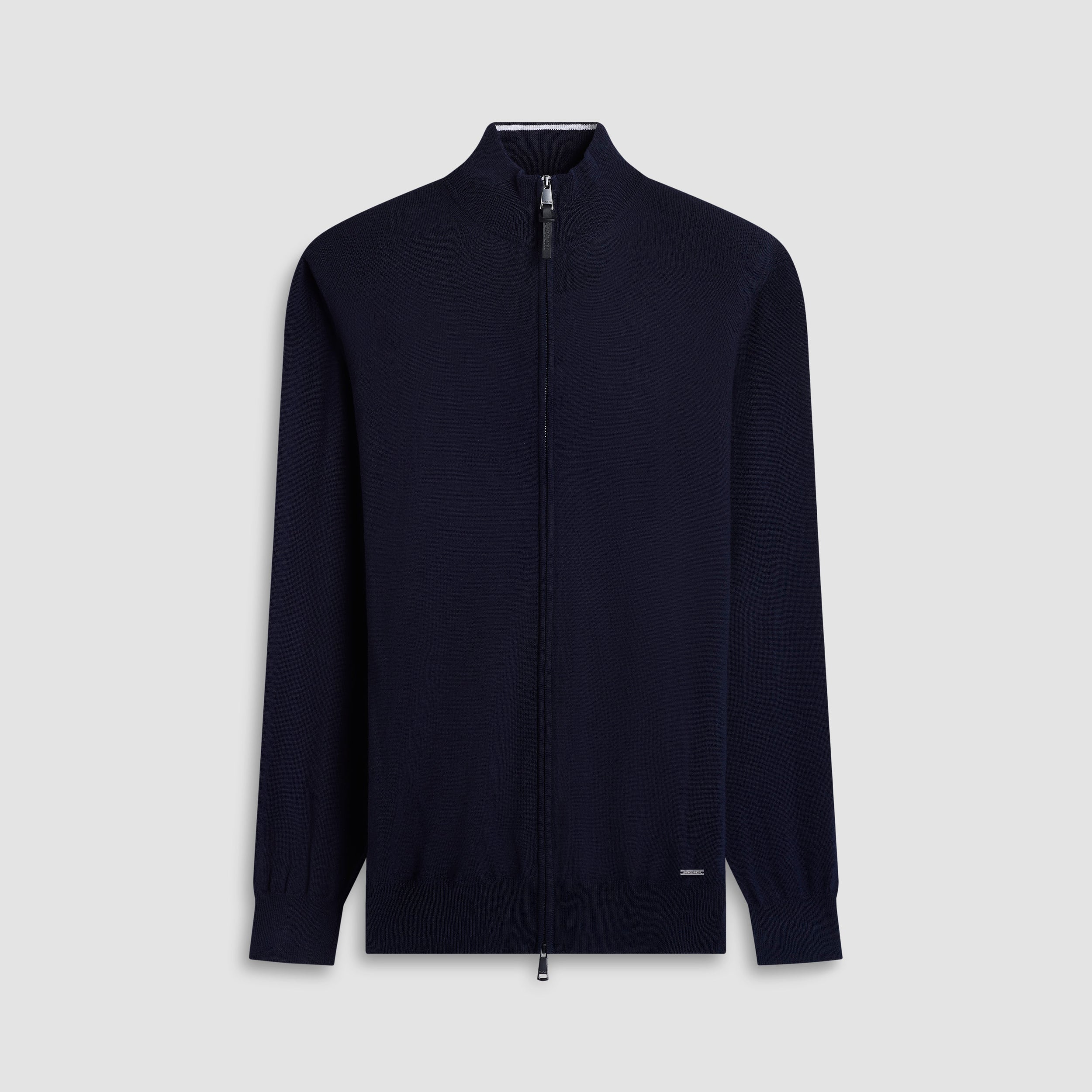 This full-zip sweater in 100% Super Merino wool with Harmony 4.0 special finish is made in Italy and features a two-way zipper, and ribbed mock neck, cuffs, and waistband. Super Merino wool is a high grade, extra fine, exceptionally soft wool that is breathable, moisture-wicking, water repellent, machine-washable, and crease-proof for long lasting performance wash after wash.