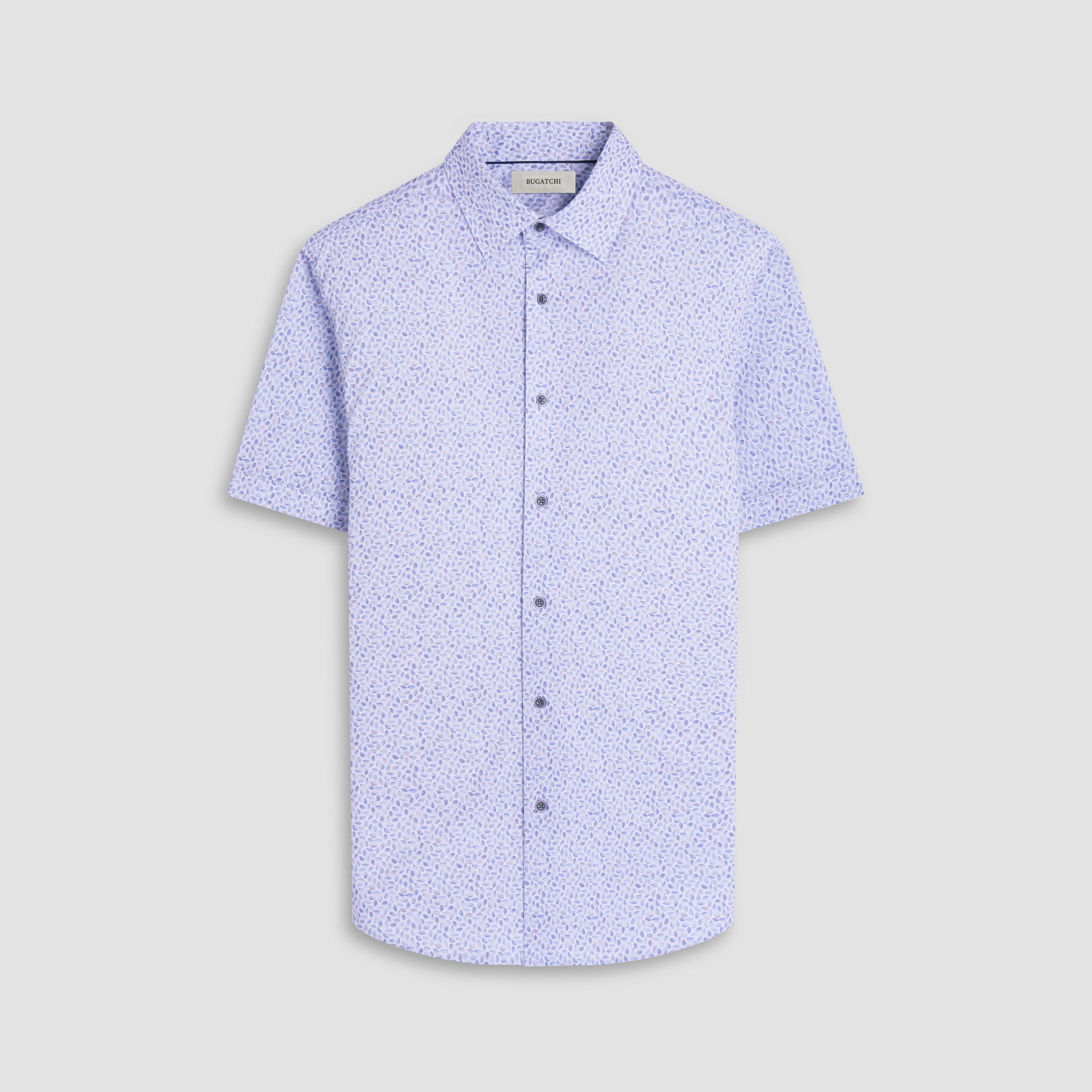 The Miles OoohCotton short-sleeve shirt in abstract print features a point collar and a curved hem for a sleek tucked or untucked look. OoohCotton is a performance, double-mercerized, wrinkle-resistant, breathable, and easy-care cotton blend with 8-way stretch, quick-dry, and thermal comfort properties.