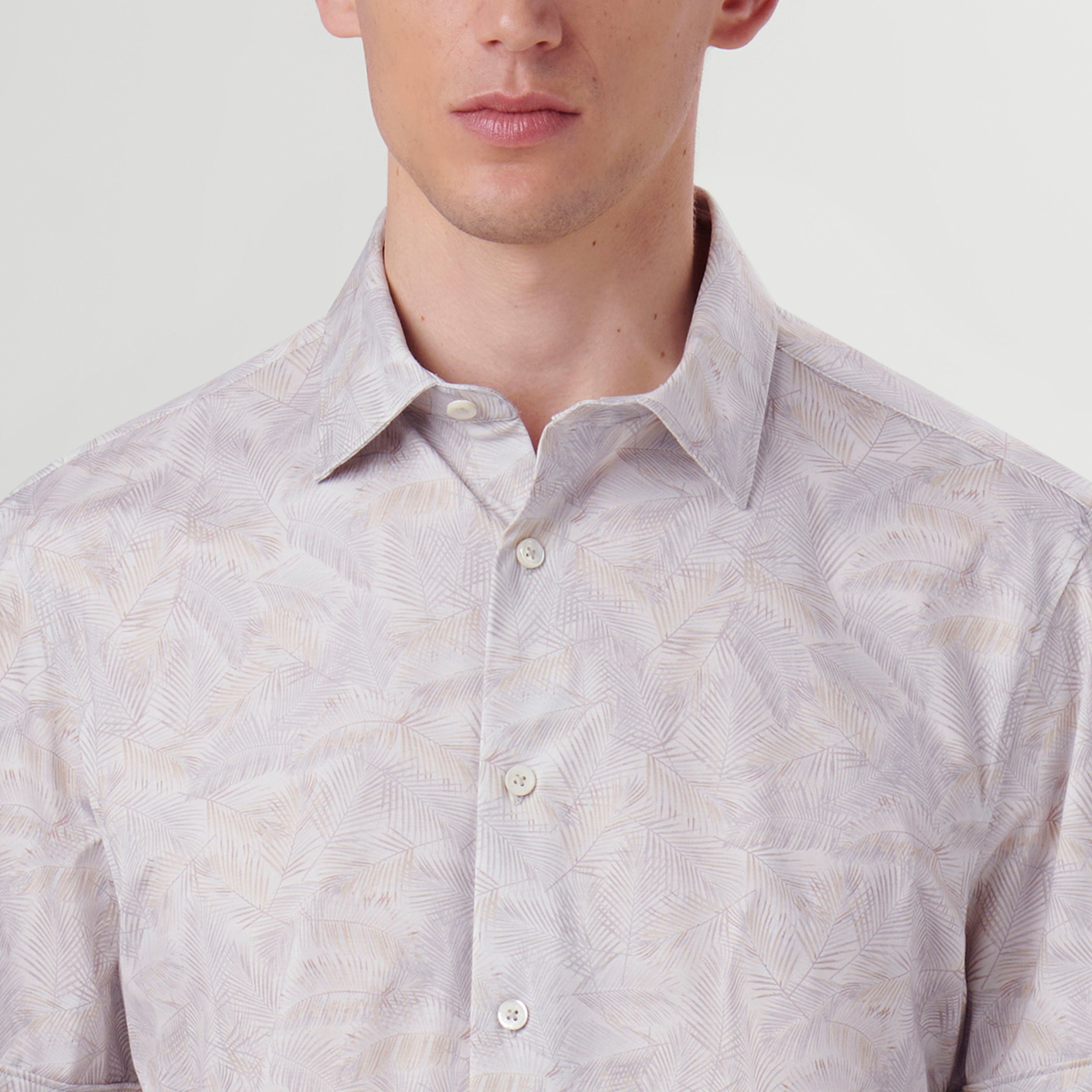Miles short-sleeved shirt in leaf print OoohCotton with point collar, genuine shell buttons and curved hem. OoohCotton is a double mercerized, wrinkle resistant, breathable, easy-care, 8-way stretch cotton blend with quick dry and thermal comfort features.