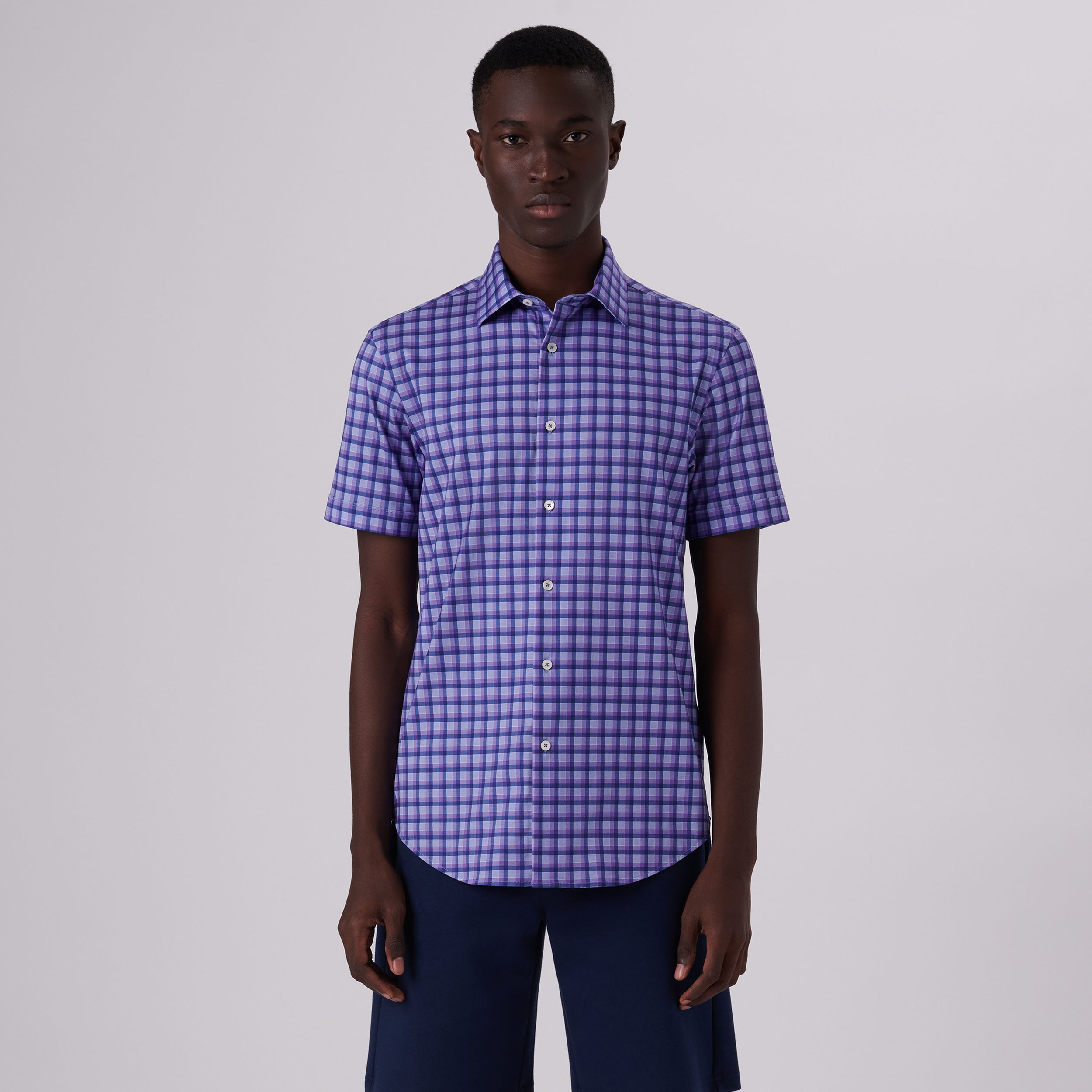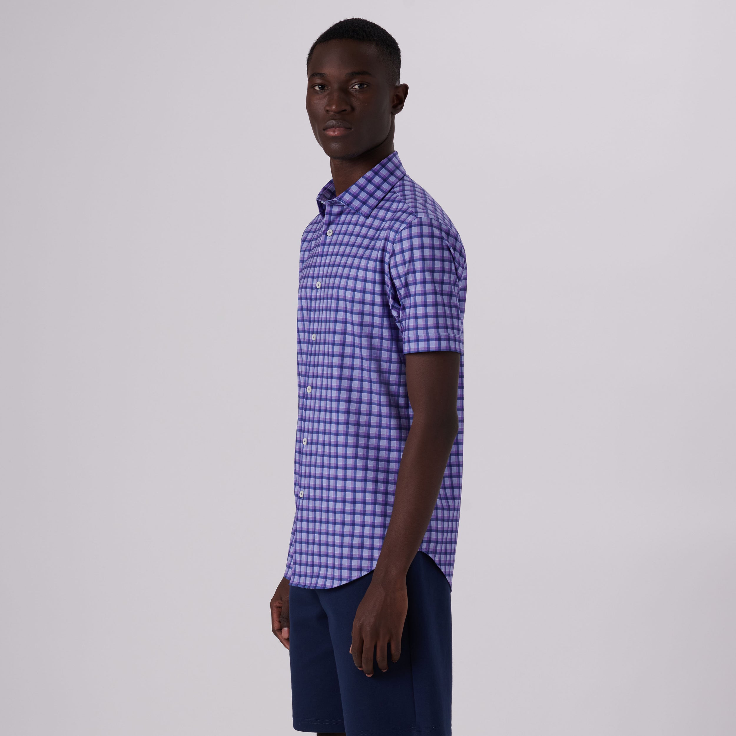Miles Shadow Check Print OoohCotton® Short Sleeve Shirt