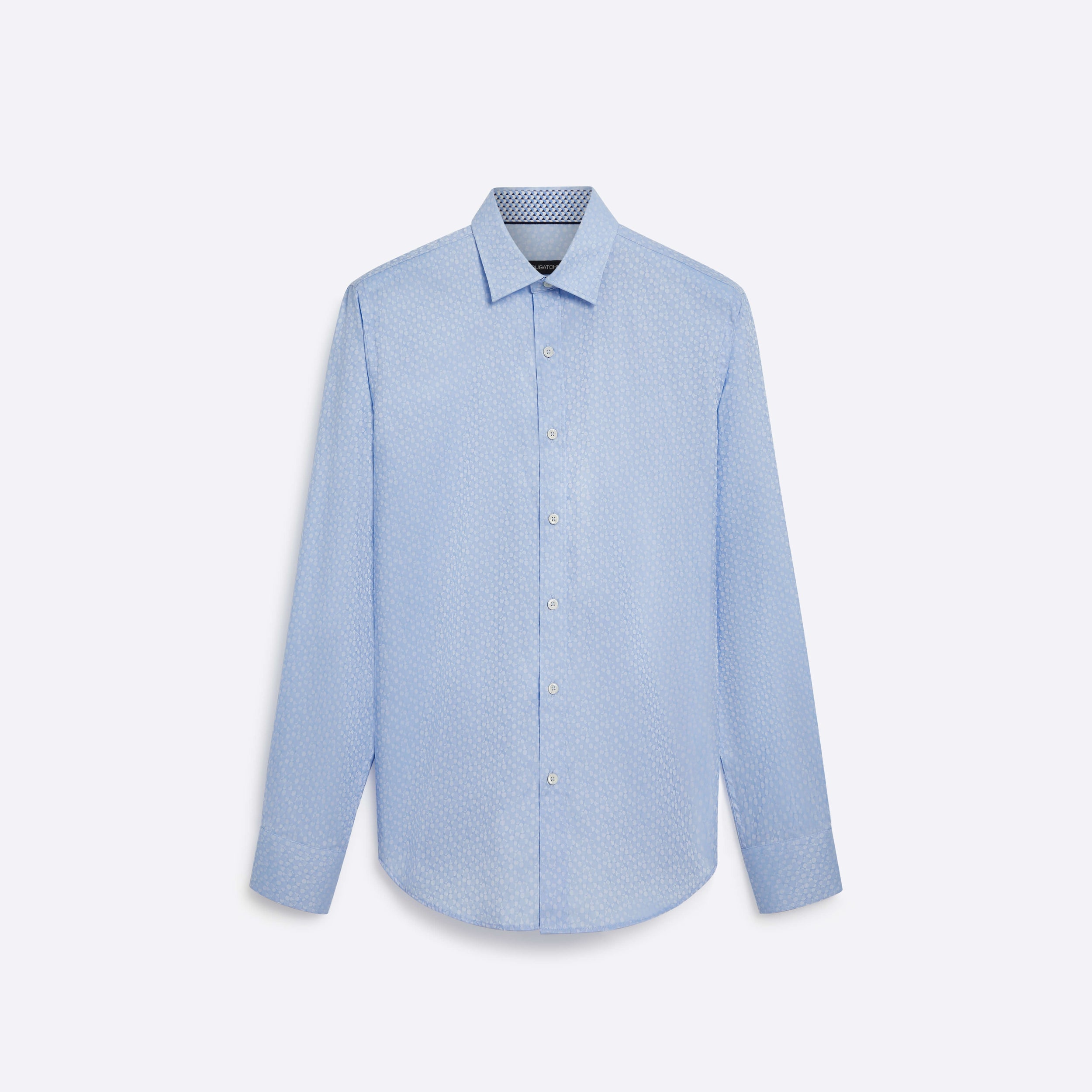Mini Check long sleeve 100% cotton jacquard shirt with point collar, adjustable notched cuffs and a curved hem for a clean tucked or untucked look.