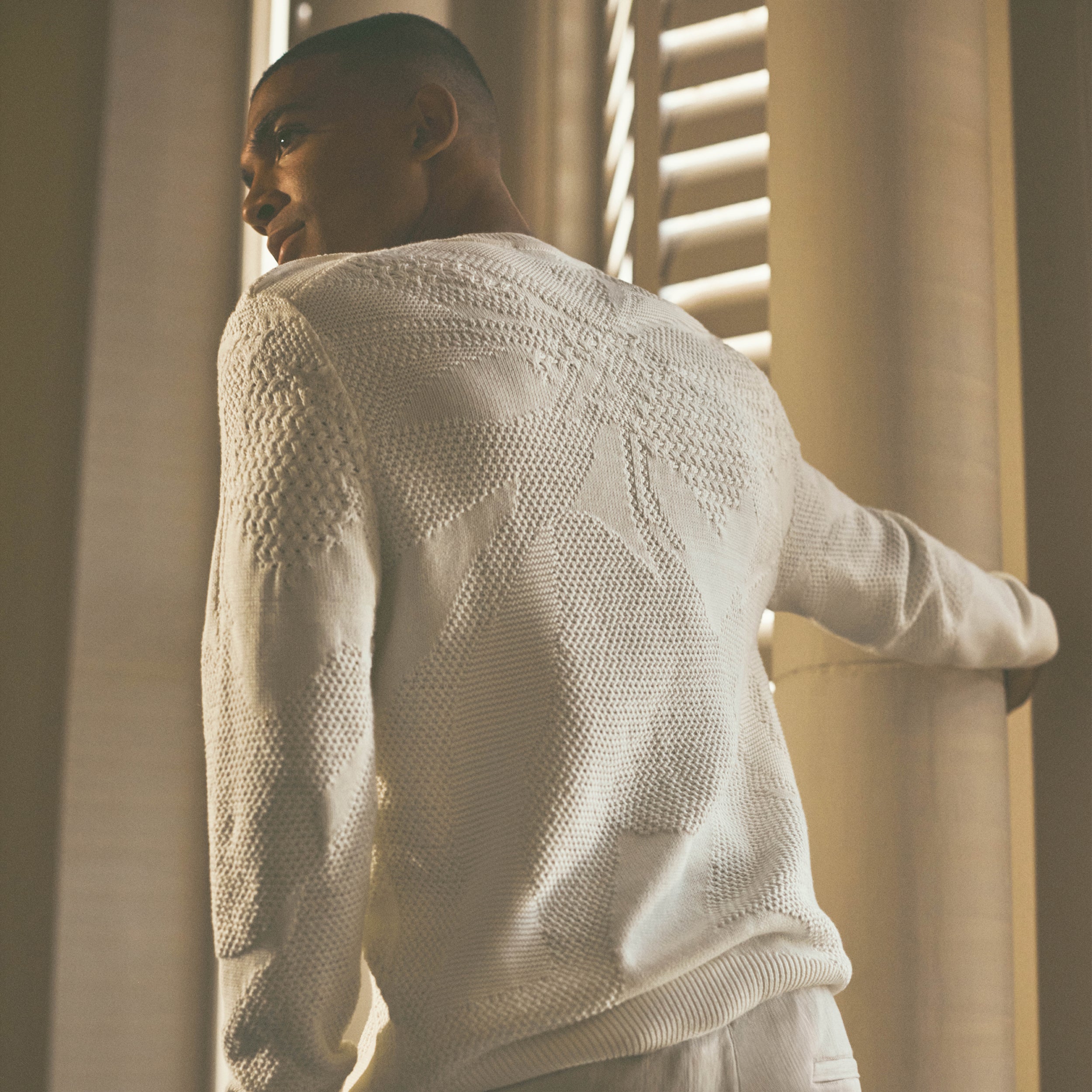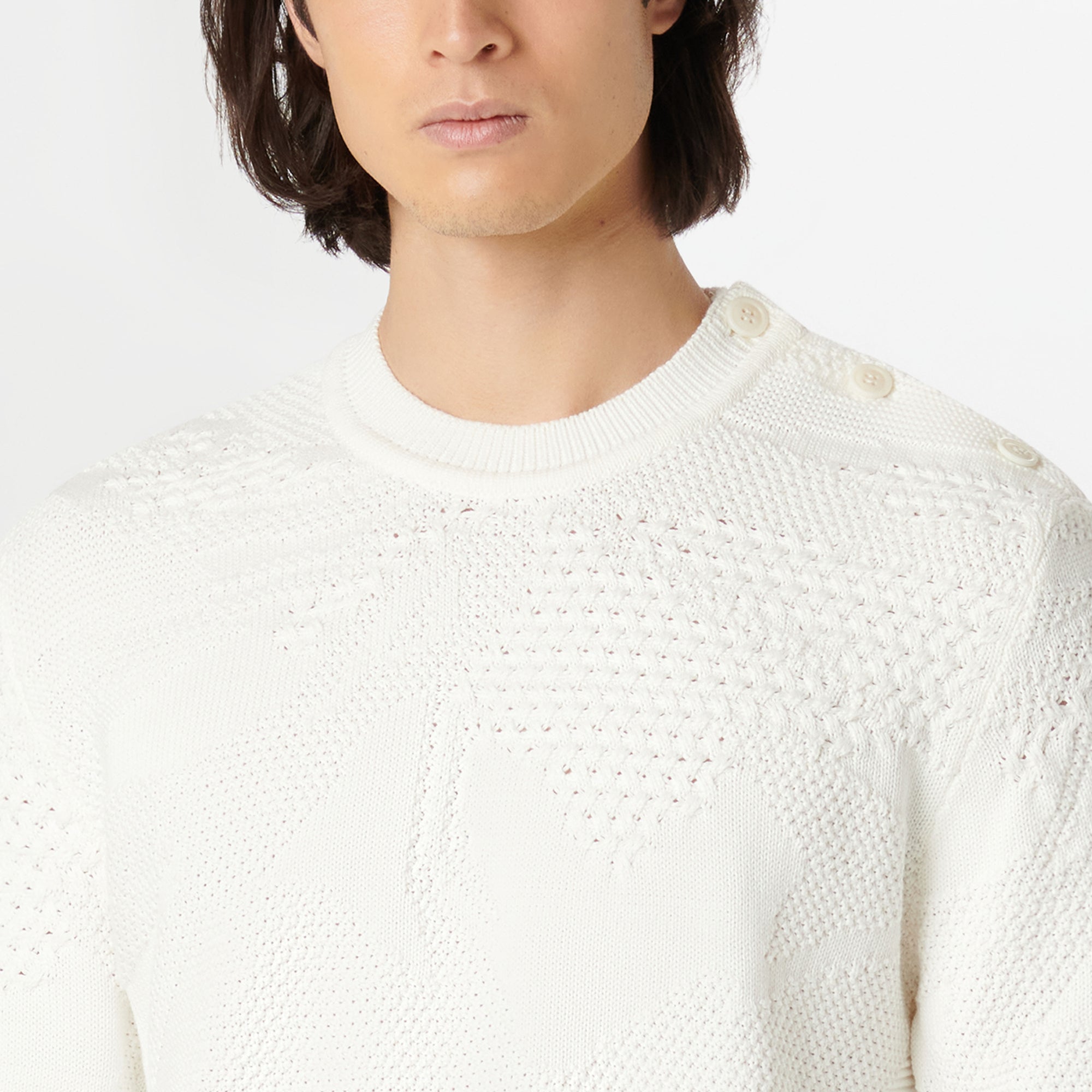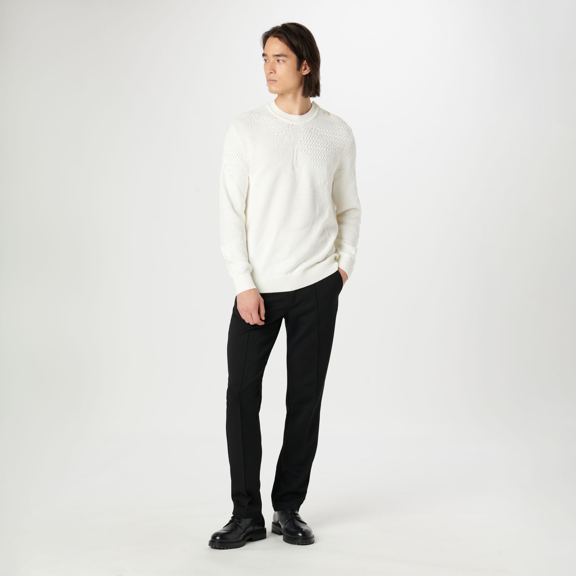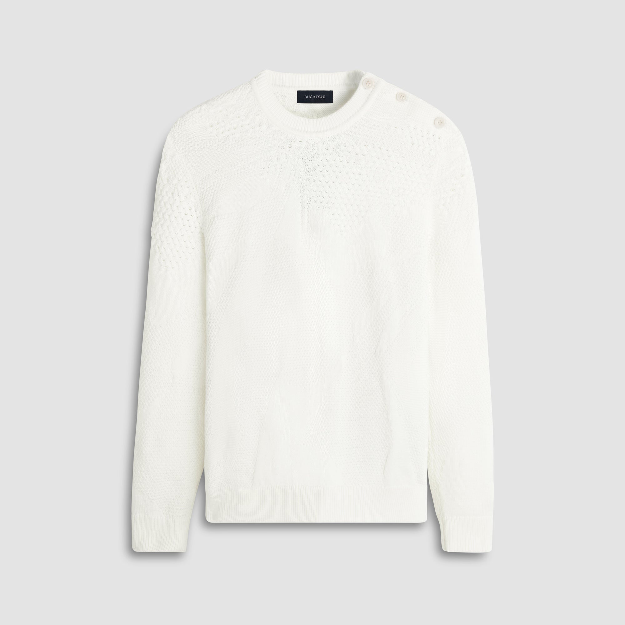 Contemporary and stylish, this crew neck sweater blends various textures in solid mixed stitching using 100% cotton yarn. It boasts a rib collar, cuffs, and waistband, along with unique one-shoulder buttons for added flair. Breathable, moisture-wicking, and chemical-free, this sweater is soft and machine washable with low pilling, it effortlessly transitions from casual to sophisticated, making it a versatile choice for day-to-evening wear.
