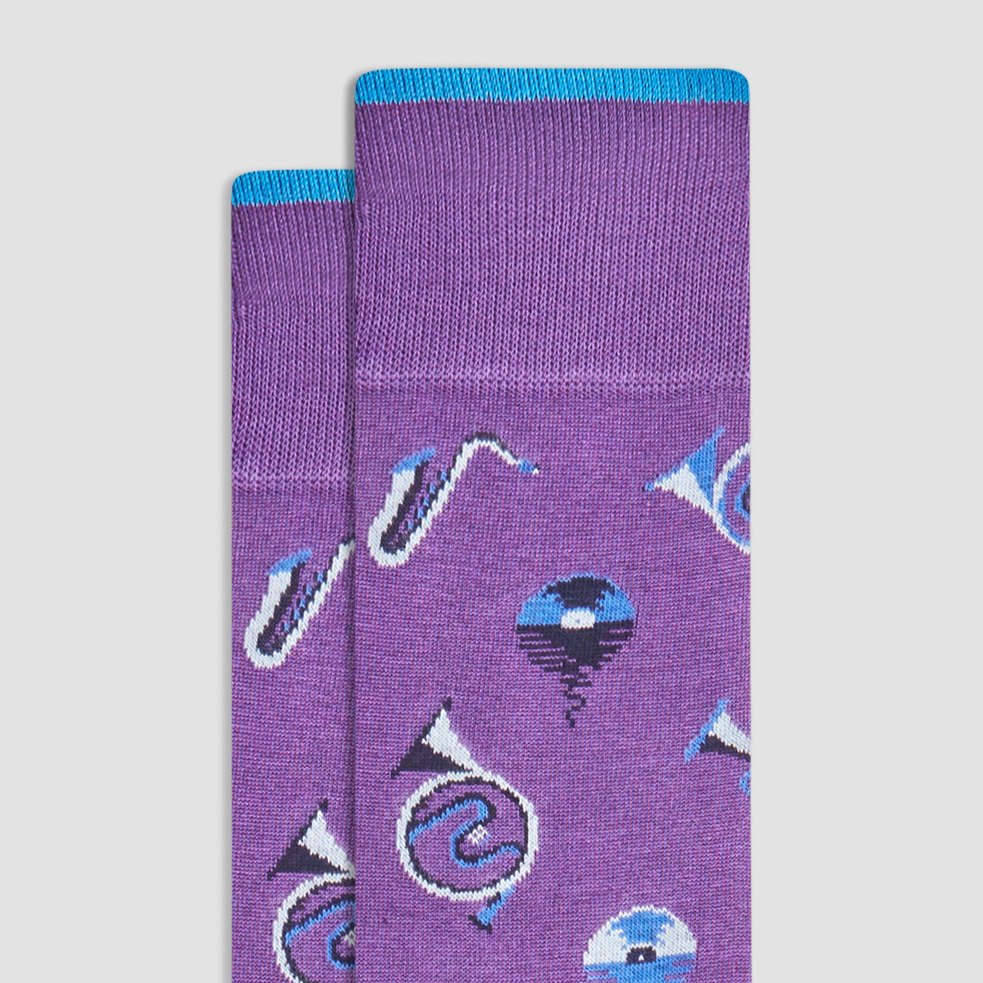 Combining exclusive novelty patterns with Italian craftsmanship, these musical socks are made from a fine gauge mercerized cotton with ribbed cuff band, hand linked toe and reinforced heel seams to complement any wardrobe as a statement piece.