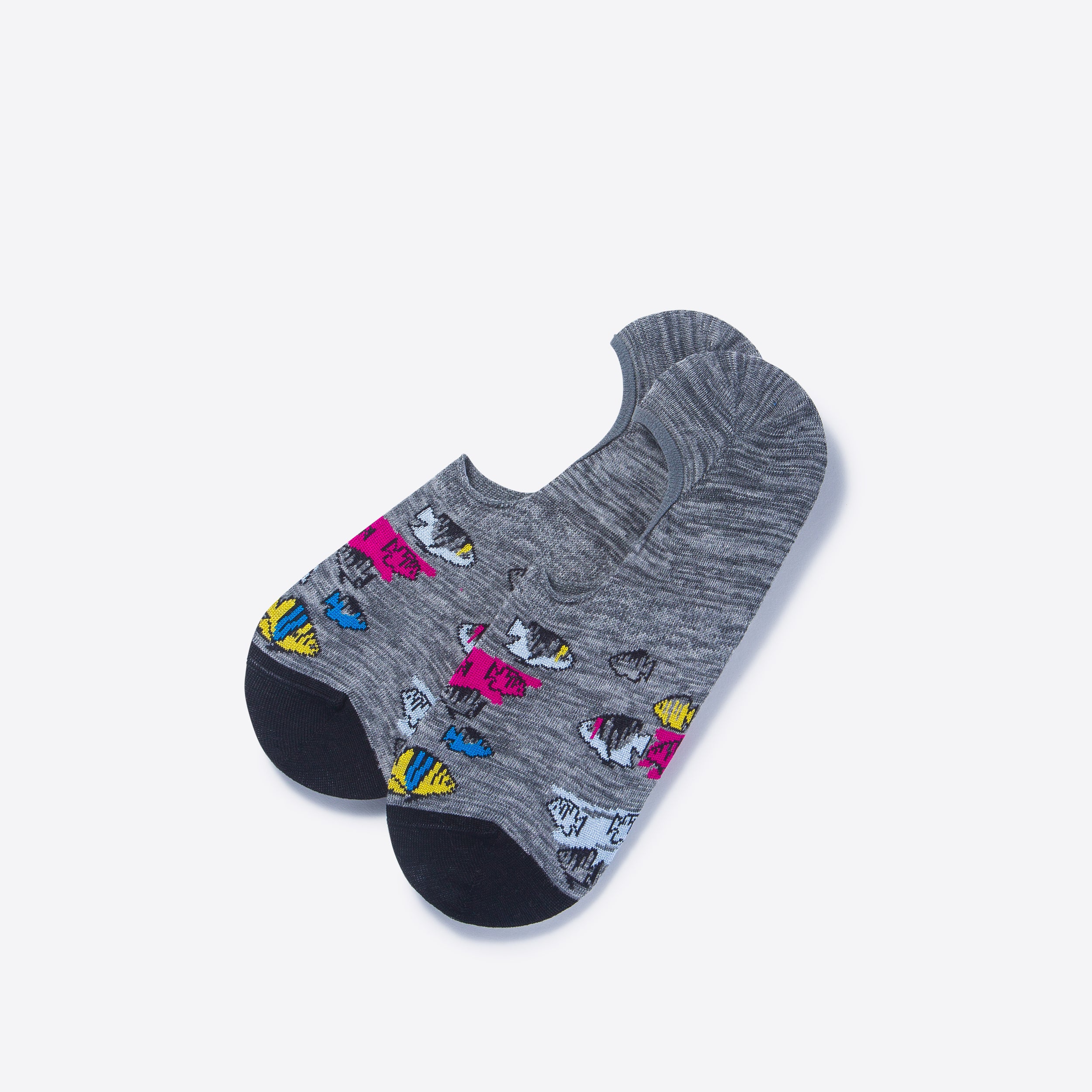 Tropical fish no- show loafer liner socks in fine gauge mercerized cotton blend. Made in Italy.