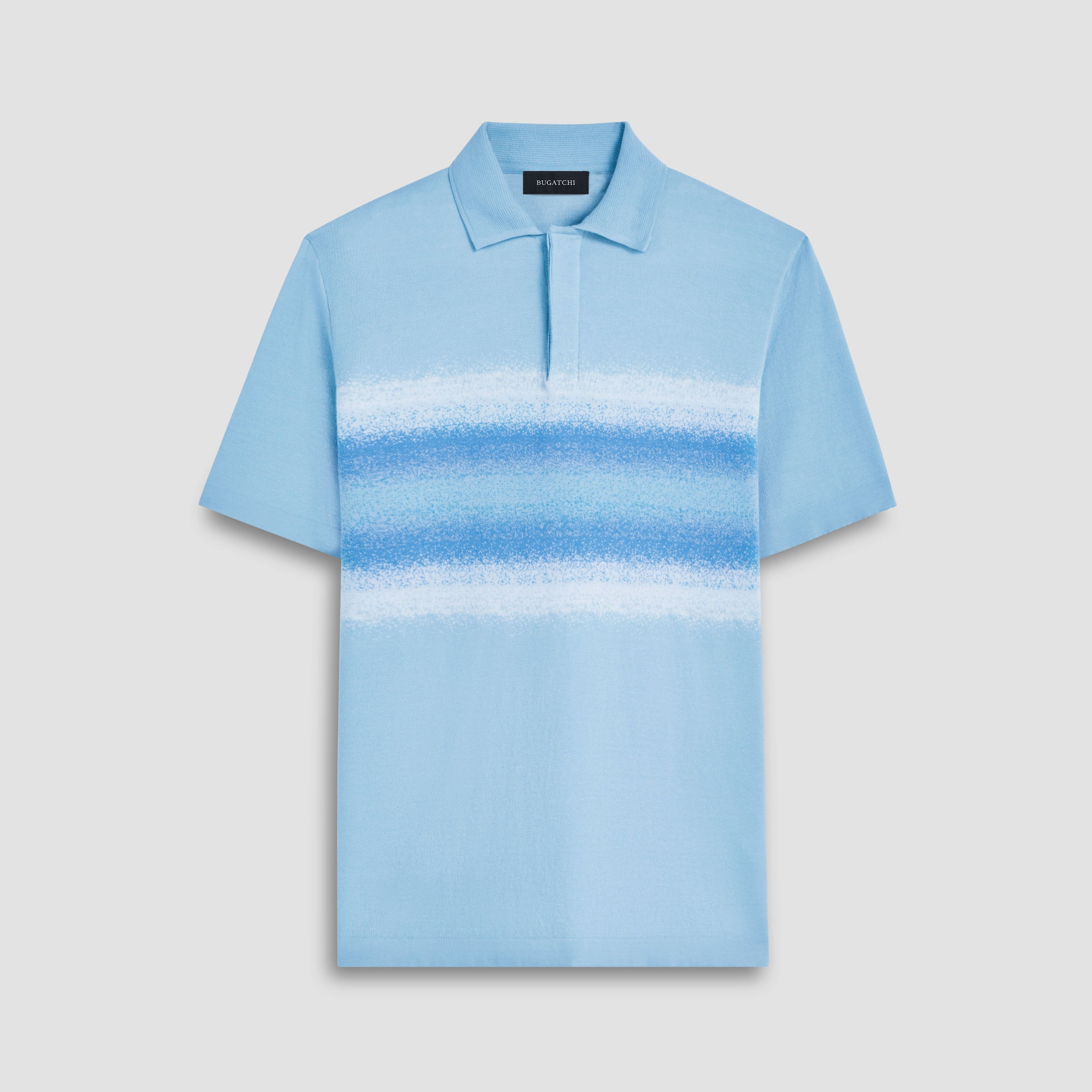 Crafted from a blend of cotton and silk yarns, this short-sleeved polo sweater features ombre stripes, a self collar, and a covered three-button placket. Lightweight, soft, and luxurious, this sweater is machine washable, low-pilling, and promises to retain its pristine appearance and refined quality over time.