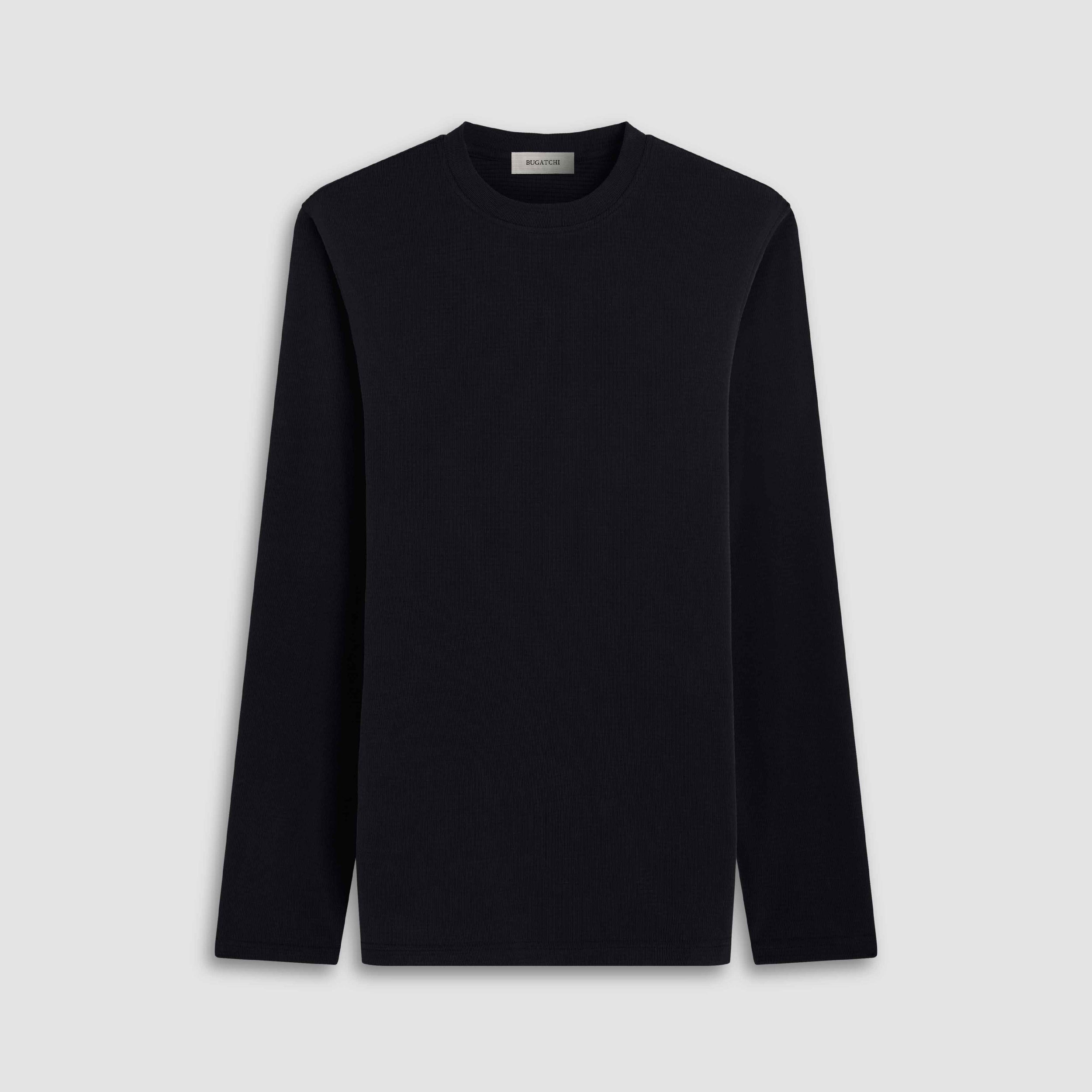 The Orion long-sleeved crew neck pullover in soft-feel, breathable, cool microfiber performance fabric offers a comfortable fit and exceptional durability in a distinctive ottoman rib texture that adds depts and luxury. Perfect for any occasion, worn alone or layered, its classic silhouette and incredible softness make it a timeless wardrobe essential.