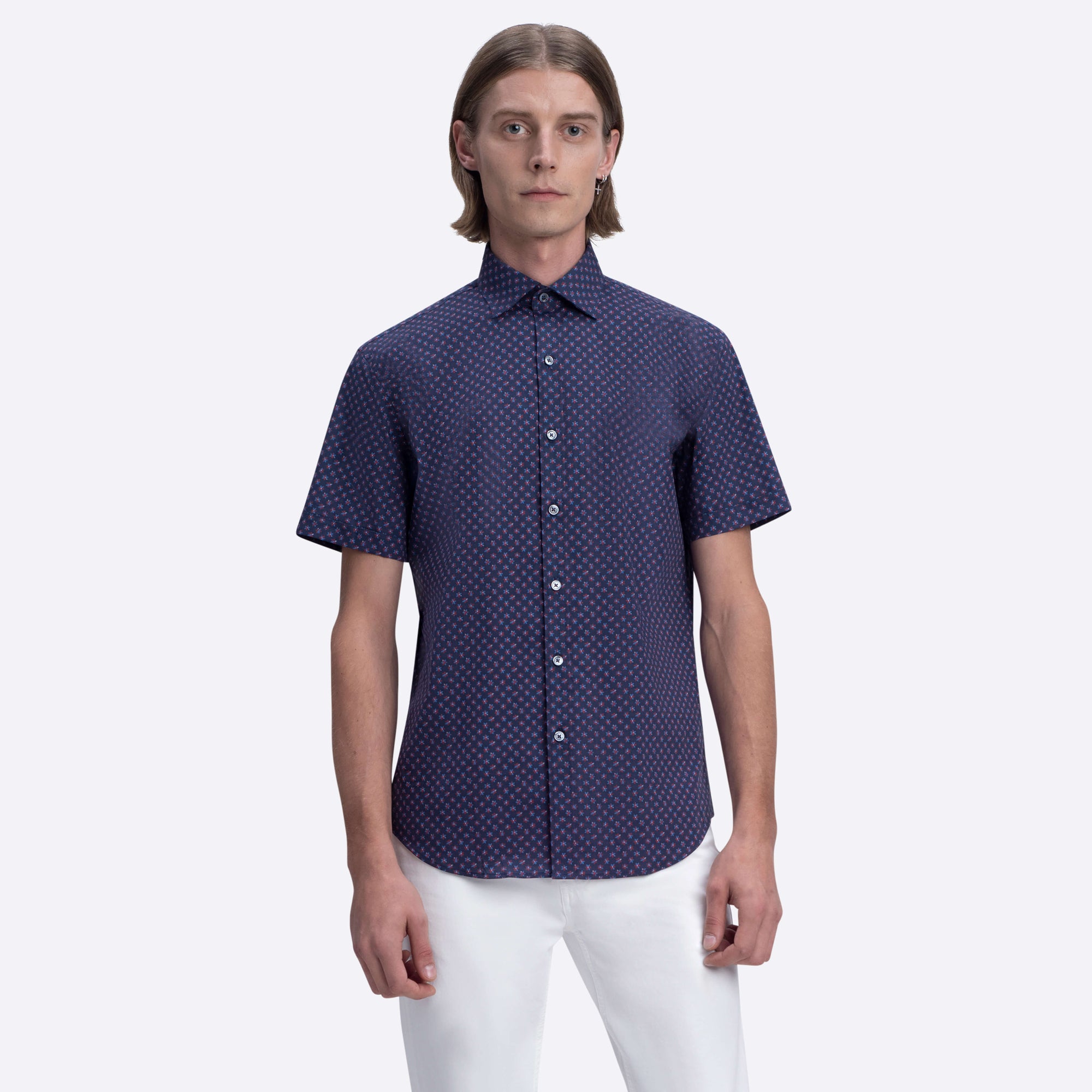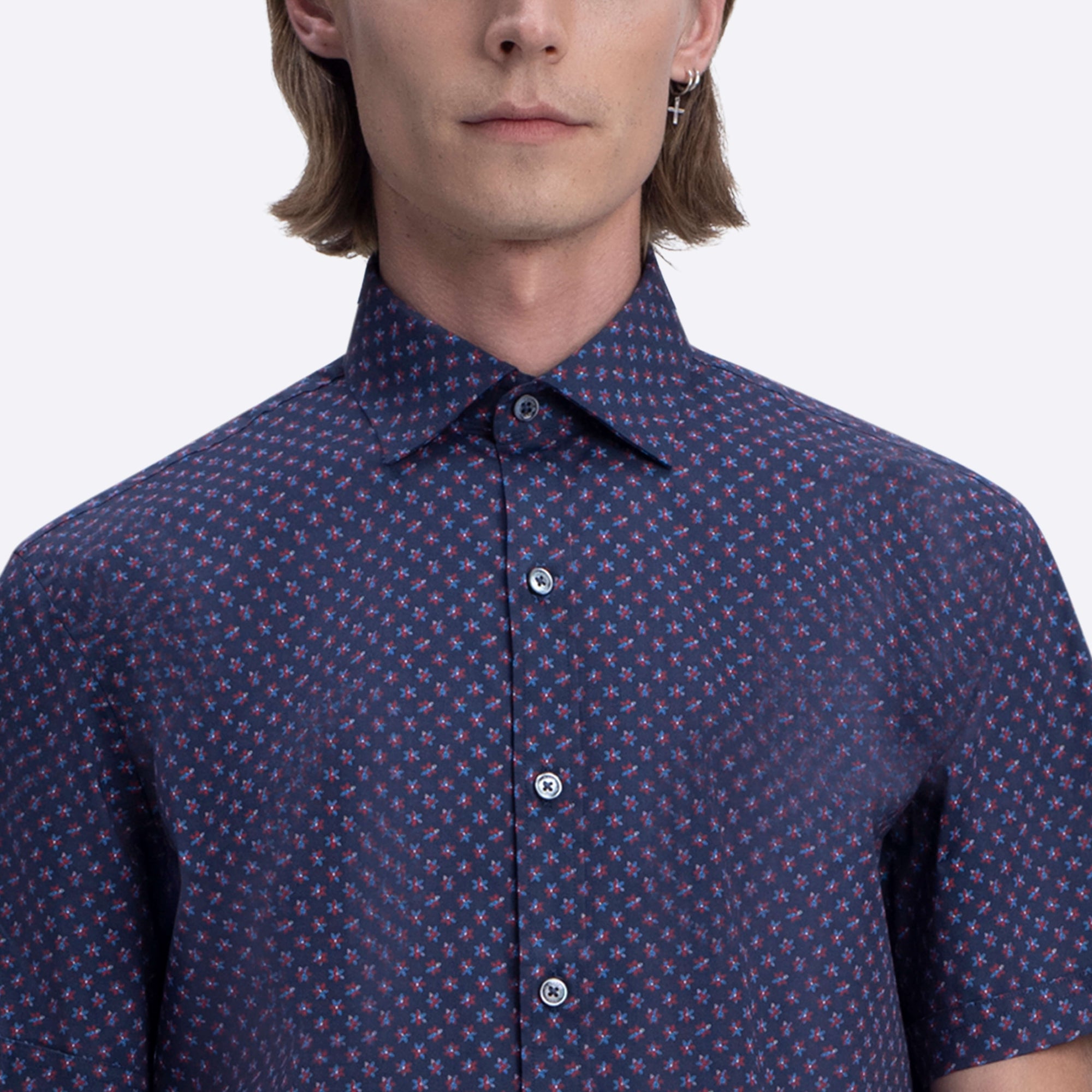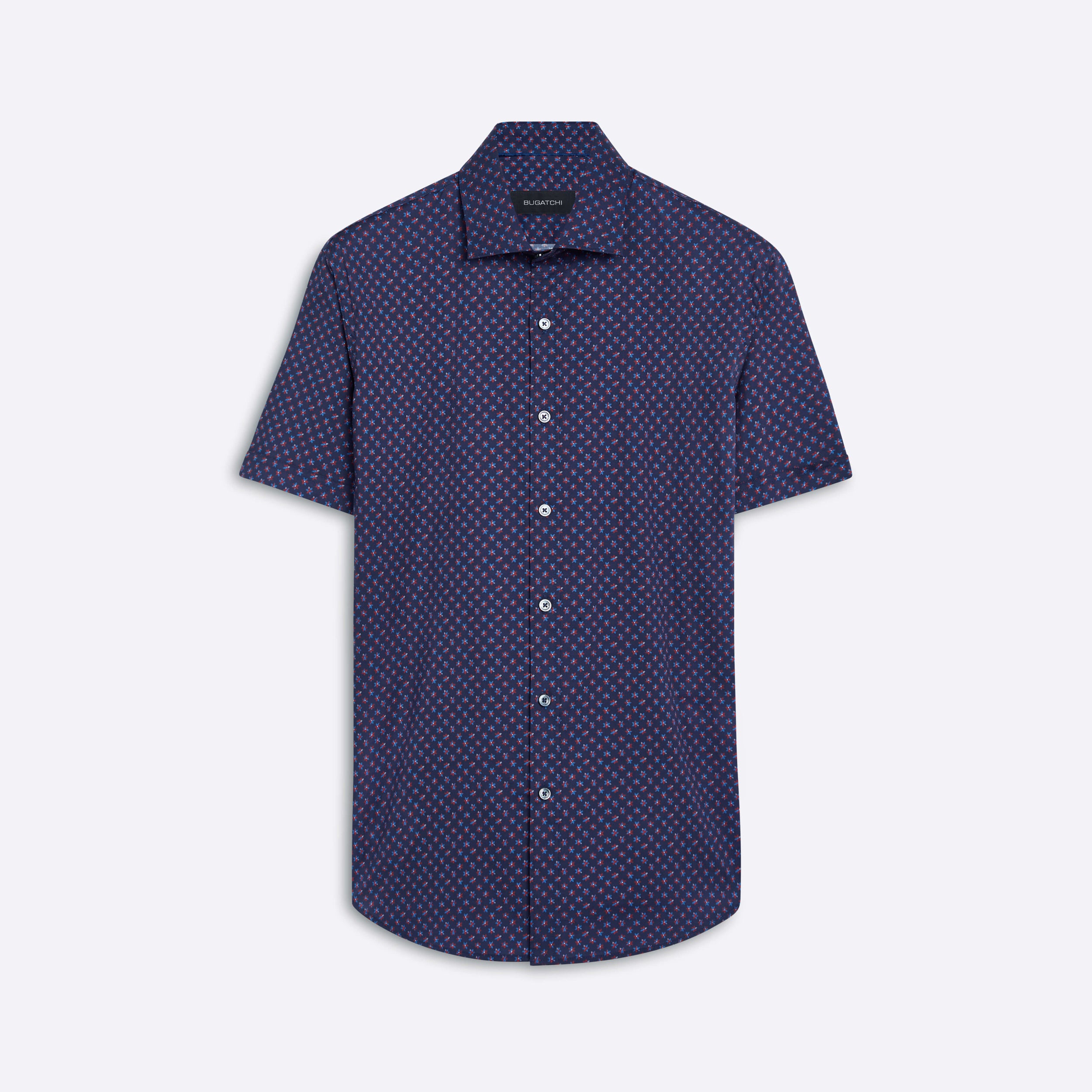 ORSON short-sleeved shirt in allover floral print COMFORT STRETCH cotton with point collar and curved hem.
