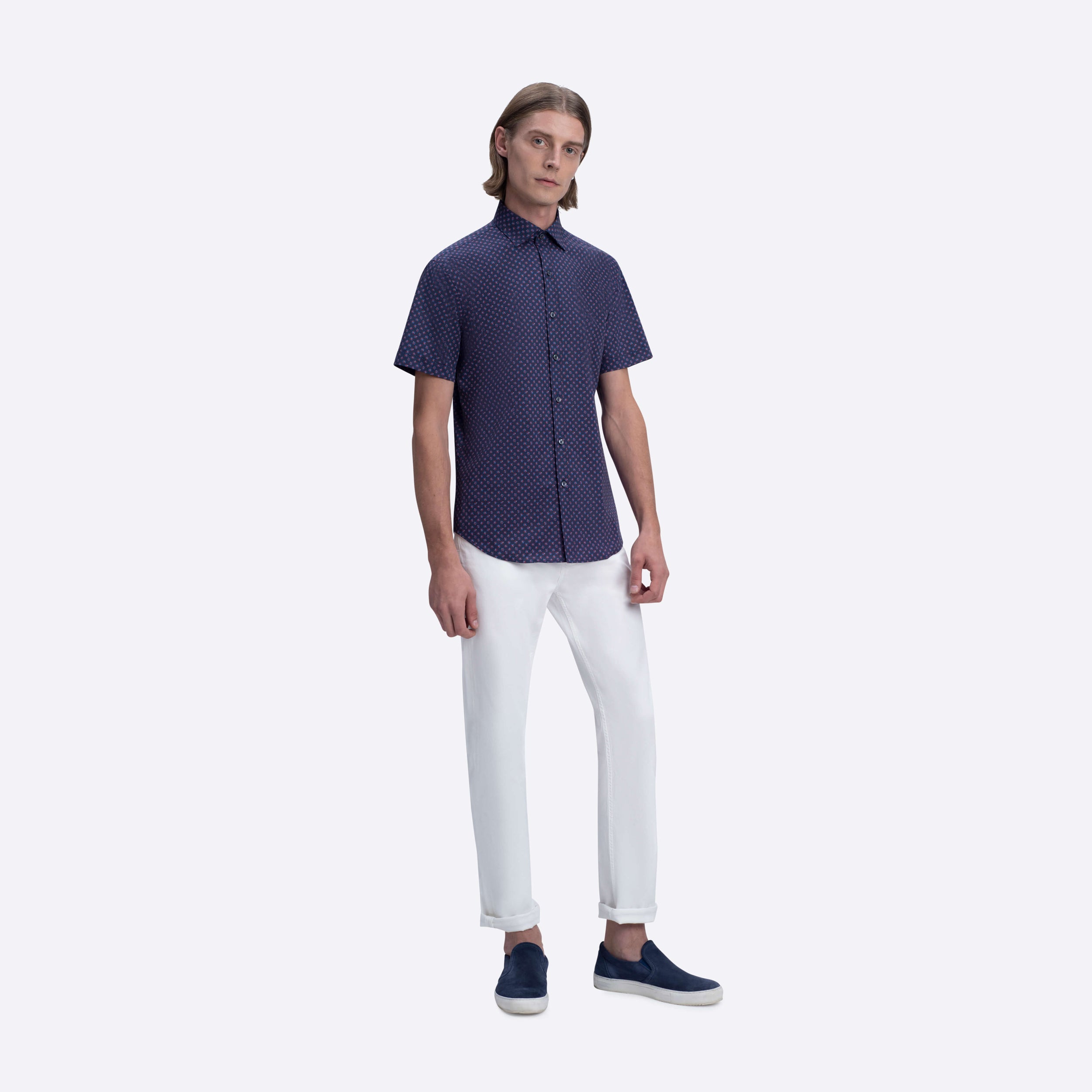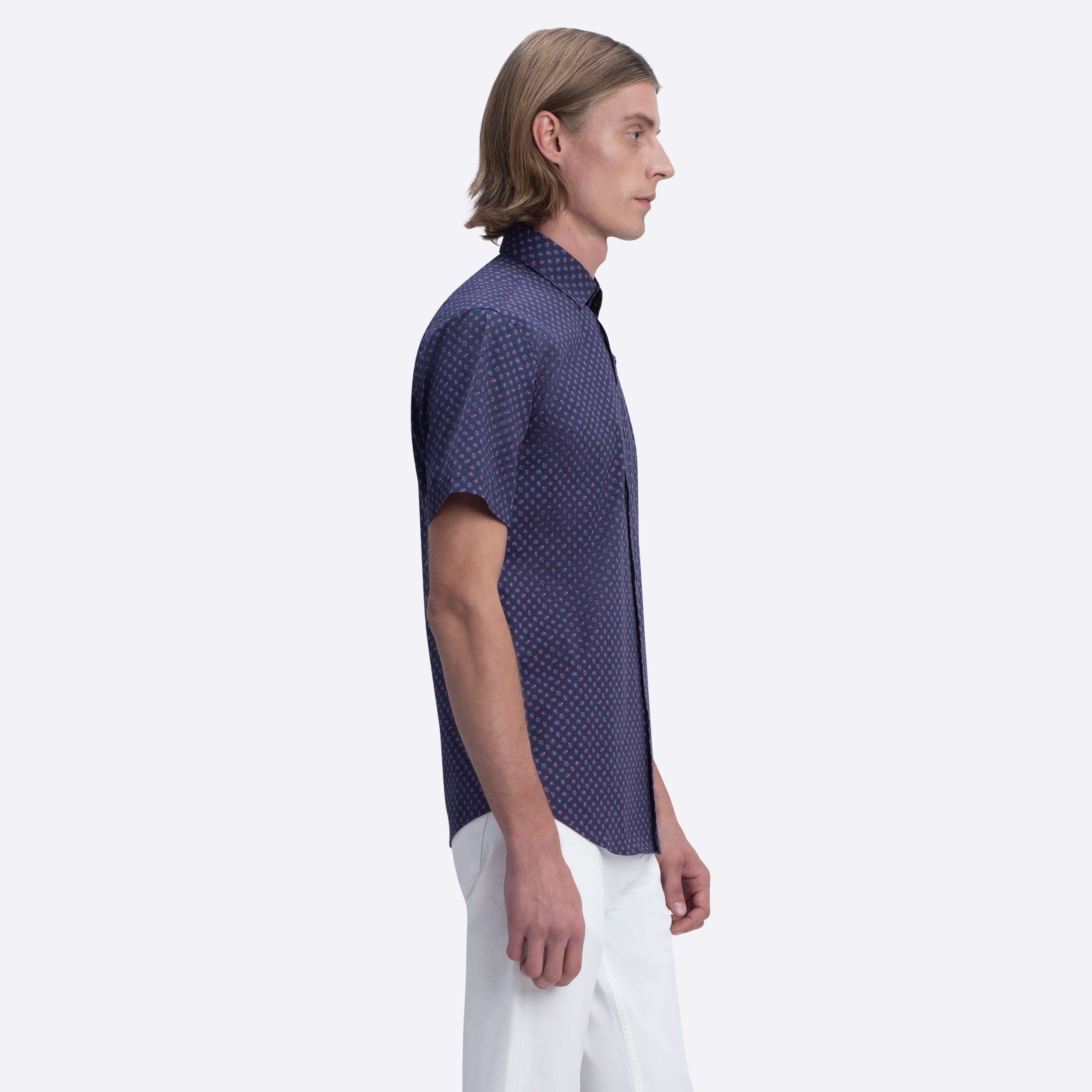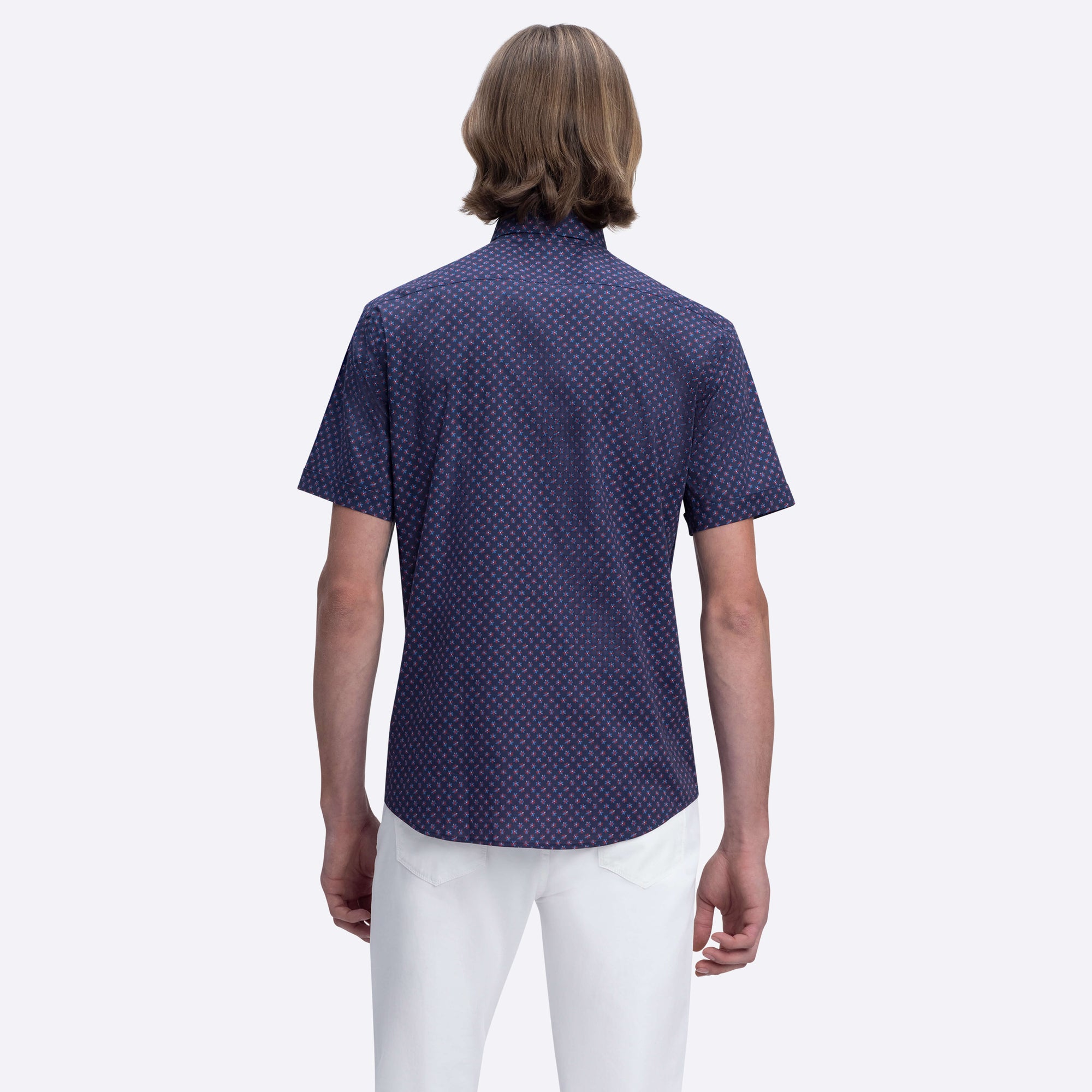 ORSON short-sleeved shirt in allover floral print COMFORT STRETCH cotton with point collar and curved hem.