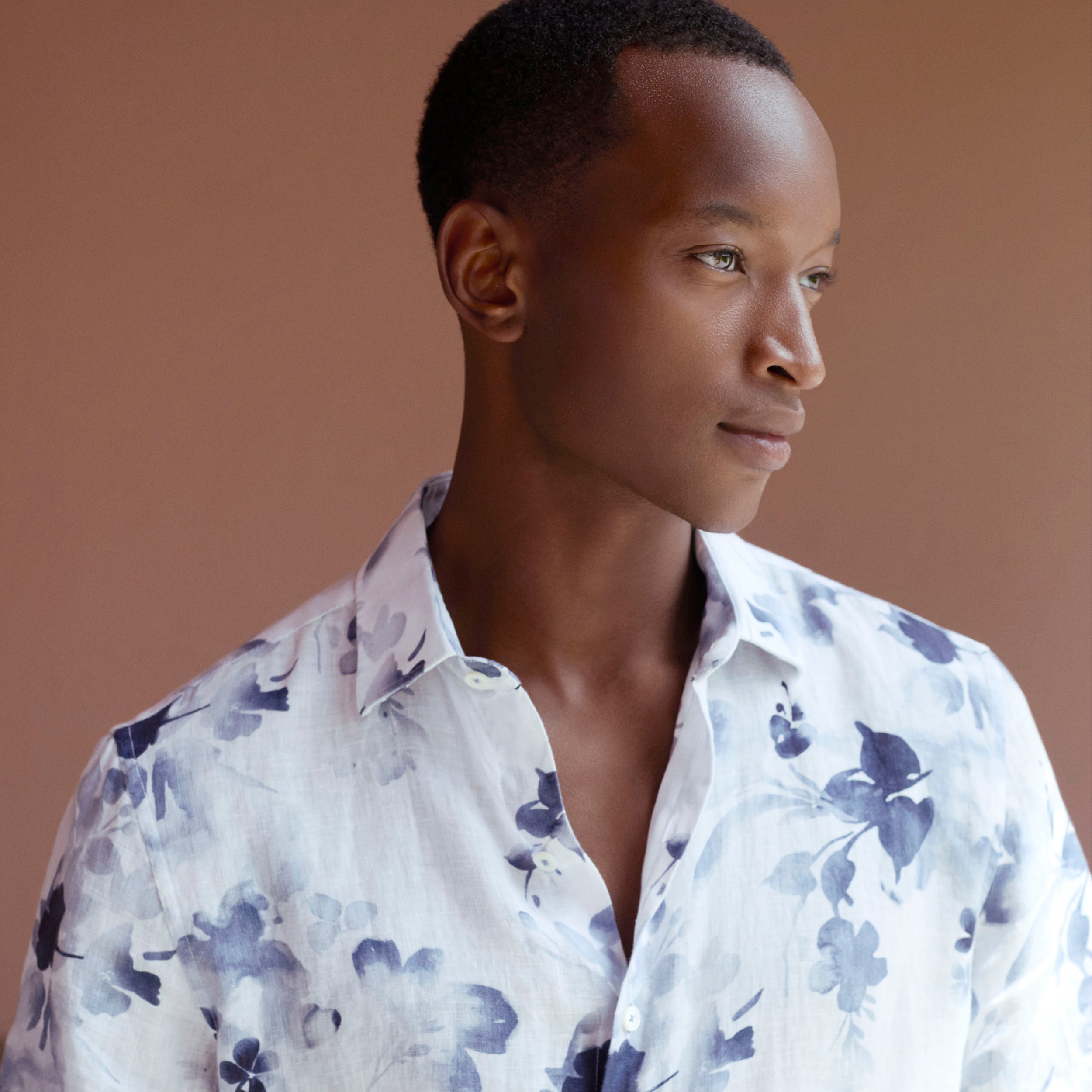 The Orson short-sleeve shirt in floral print is crafted from 100% Italian linen and features a point collar, mother-of-pearl buttons, and a curved hem that can be worn tucked or untucked, making it the perfect choice for both casual and semi-formal occasions.