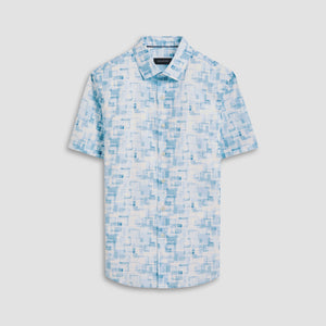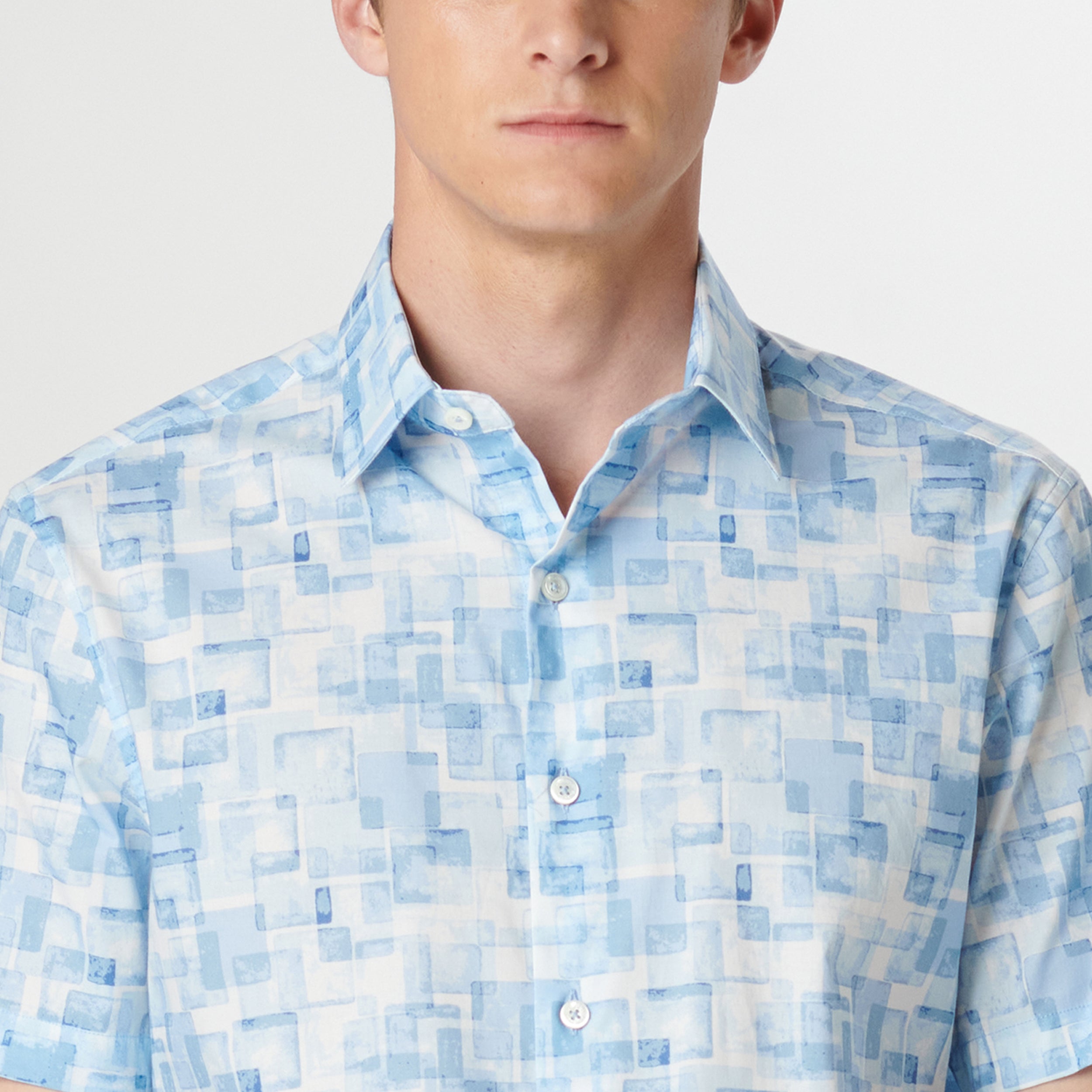 The Orson short-sleeved shirt is crafted from Comfort Stretch cotton and features a geometric print, a spread collar, and a curved hem.