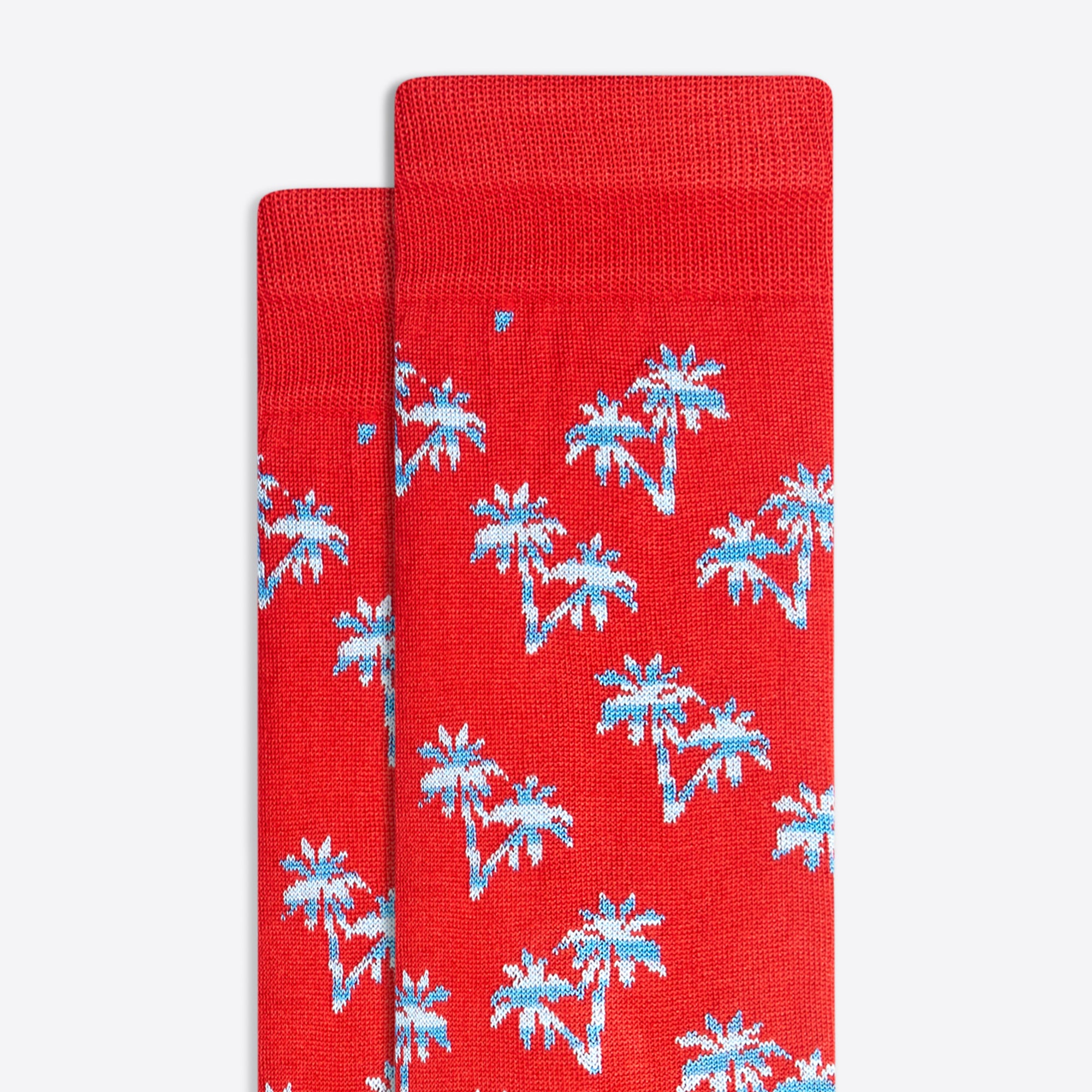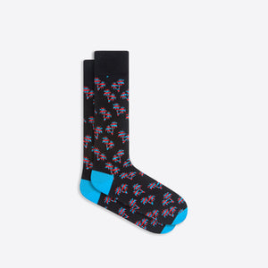 Palm trees mid-calf socks in fine gauge mercerized cotton blend with rib knit cuff band, hand linked toe and reinforced heel seams. Made in Italy.