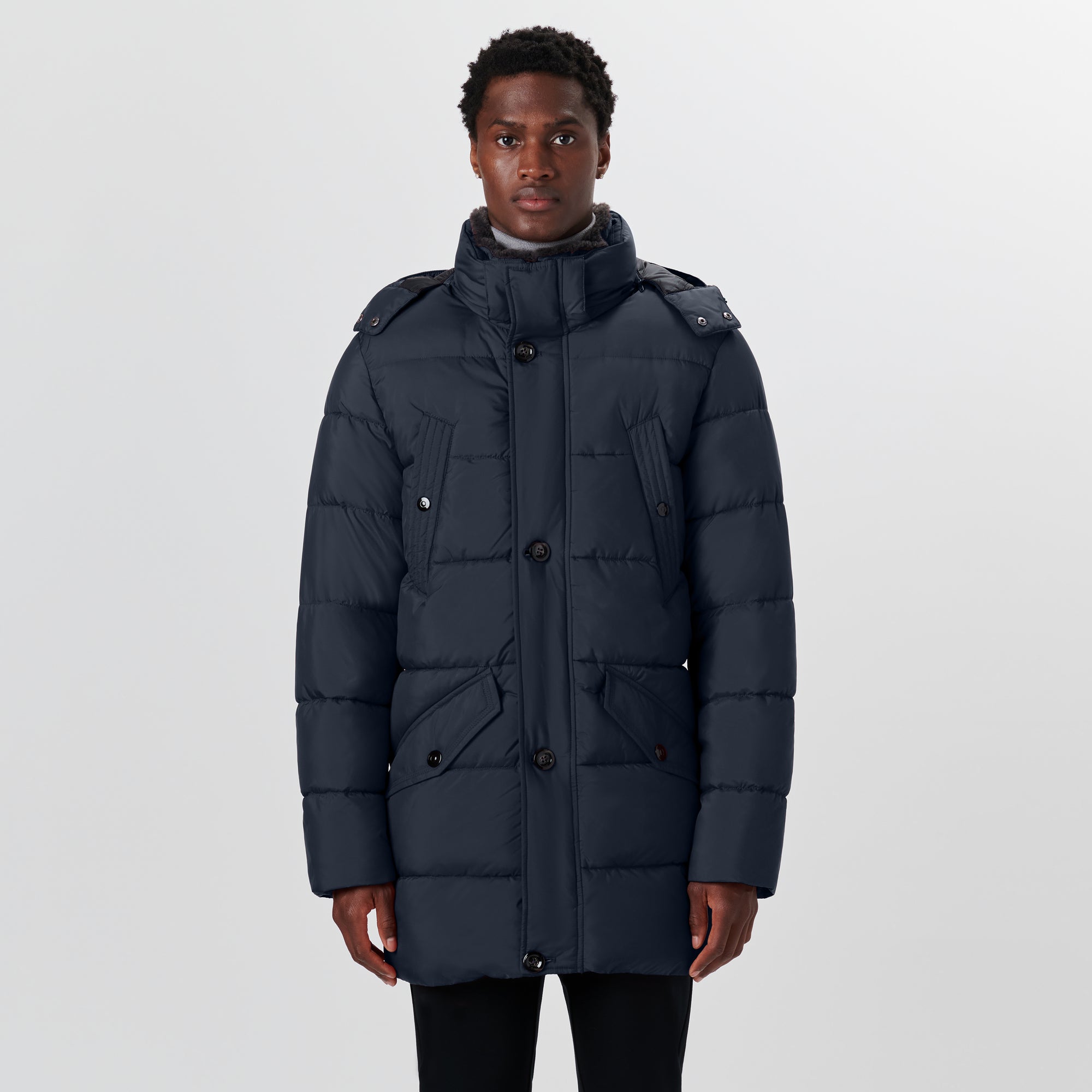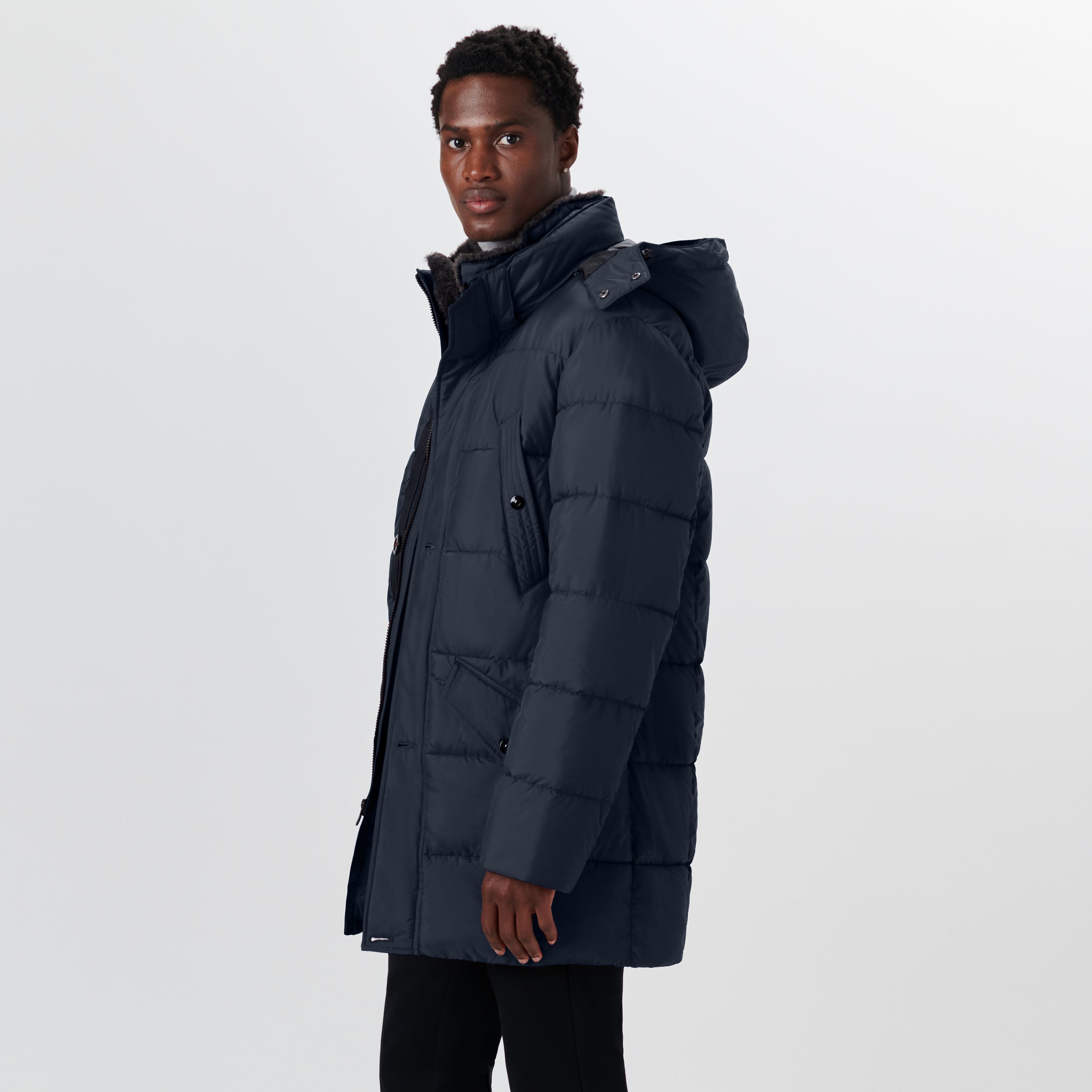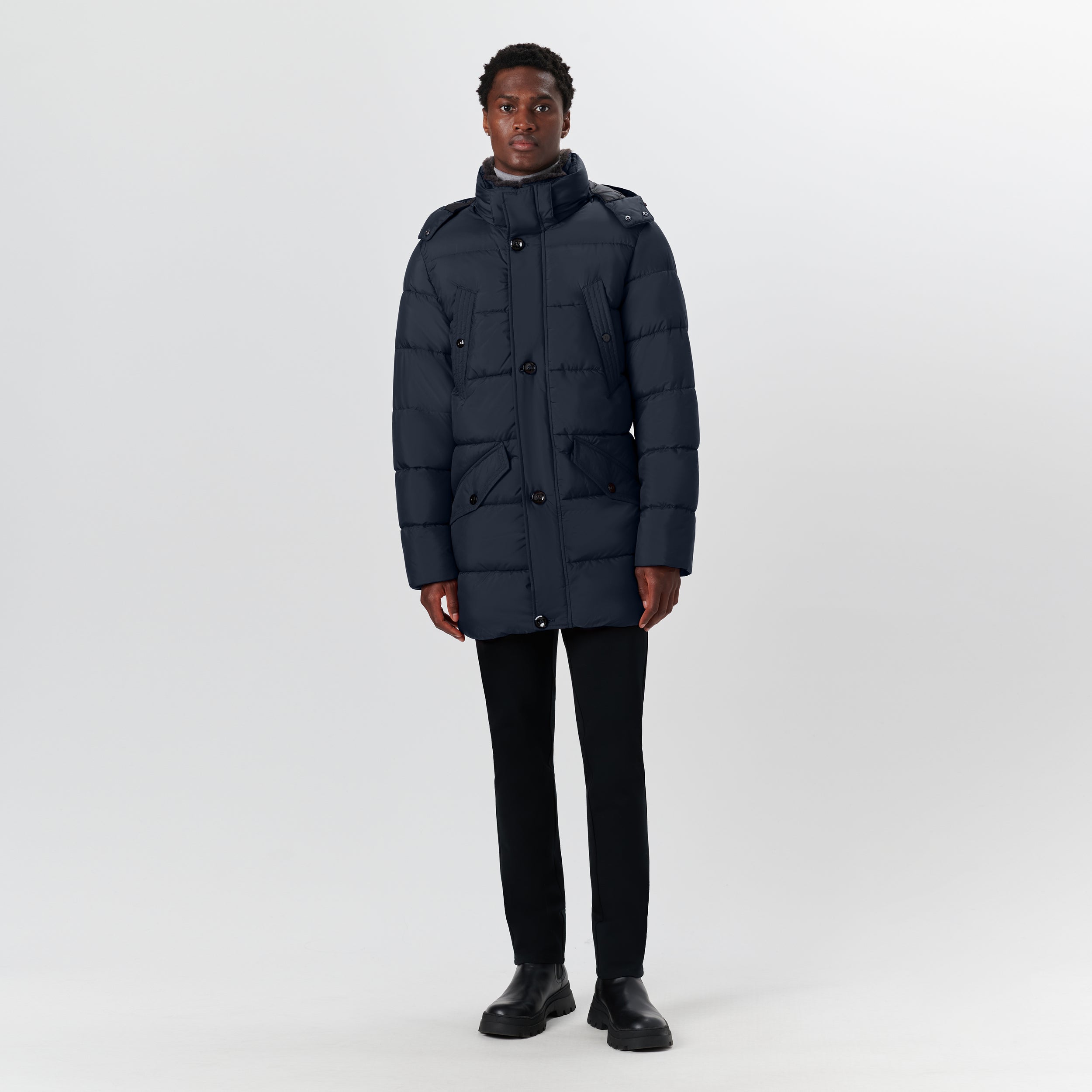Water repellent, certified Sorona Aura filled puffer parka with removable hood, faux-fur collar, two-way zipper and buttons closure, and four pockets. Sorona Aura is a lightweight and breathable insulation with long-lasting shape retention and warmth. Outerwear made from this innovative and partially plant-based insulation benefit from exceptional breathability and comfort, at a lower environmental footprint.