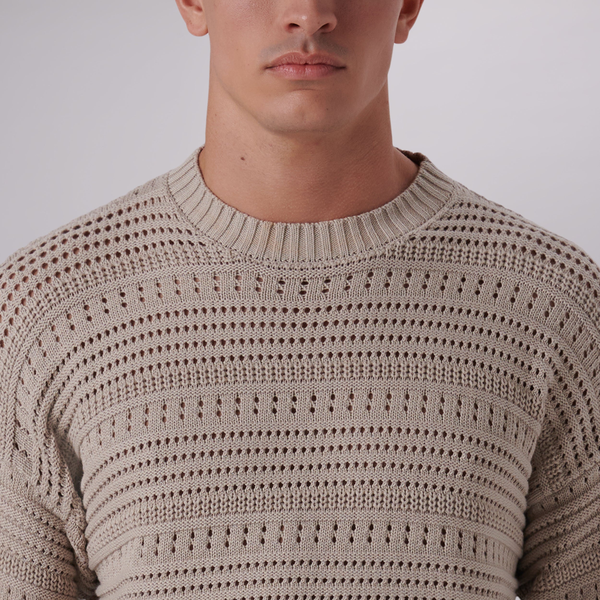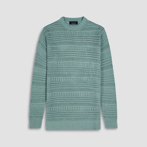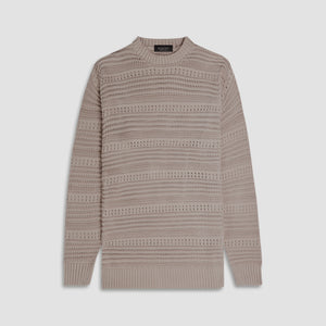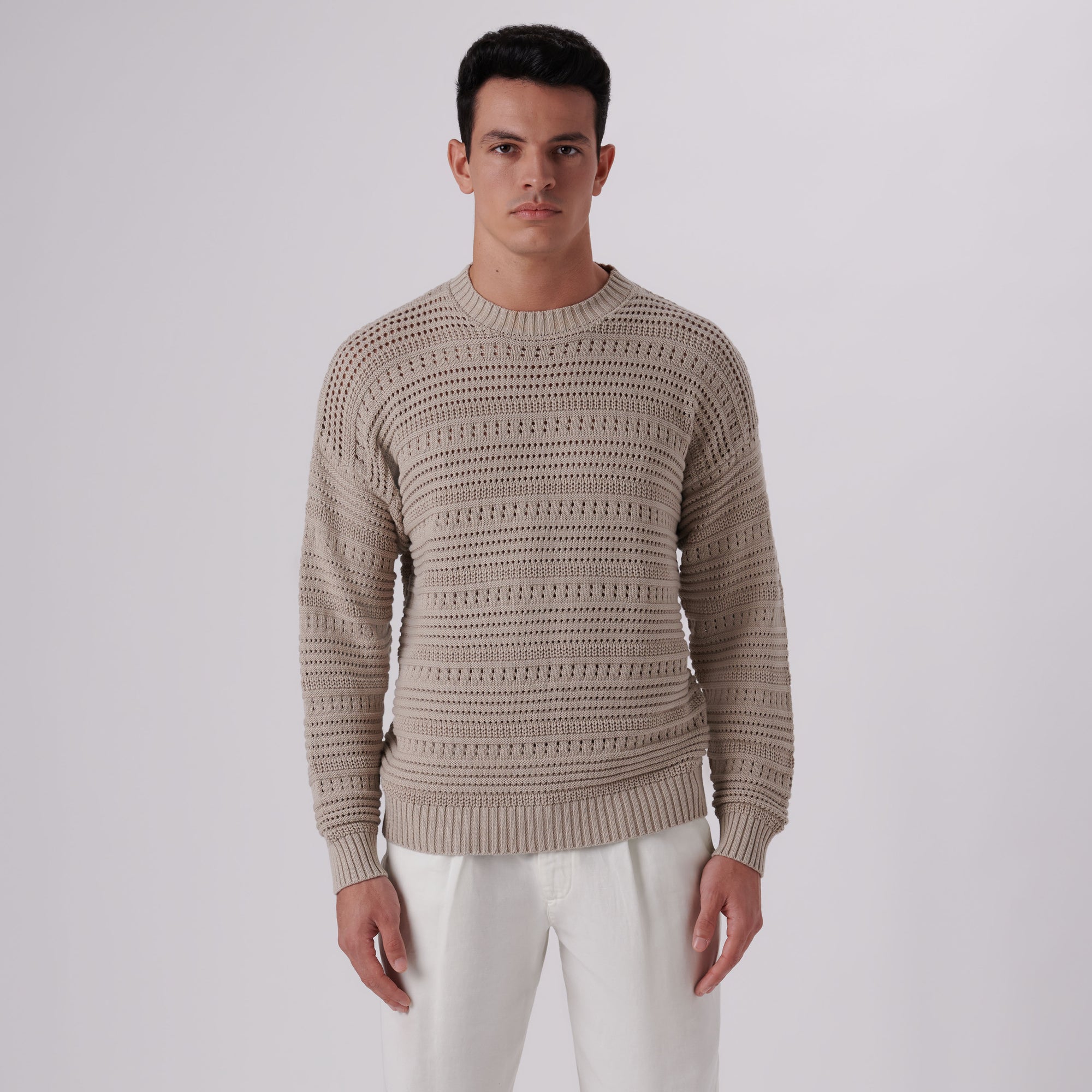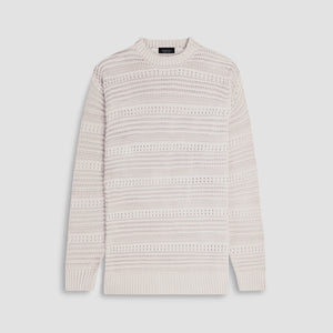 Patterned long-sleeved crew neck sweater in 100% cotton with rib knit collar, cuffs and waistband. Made in Italy.