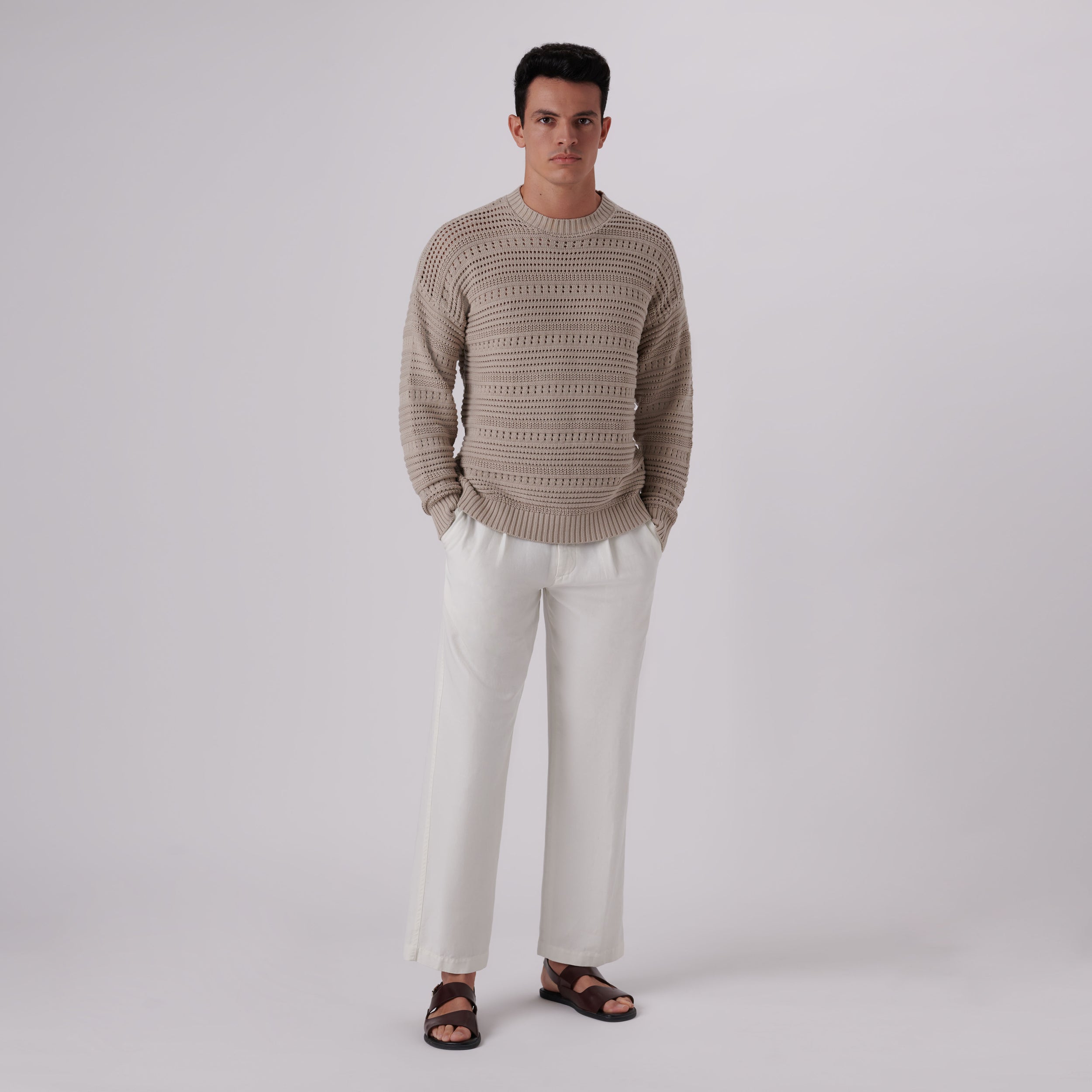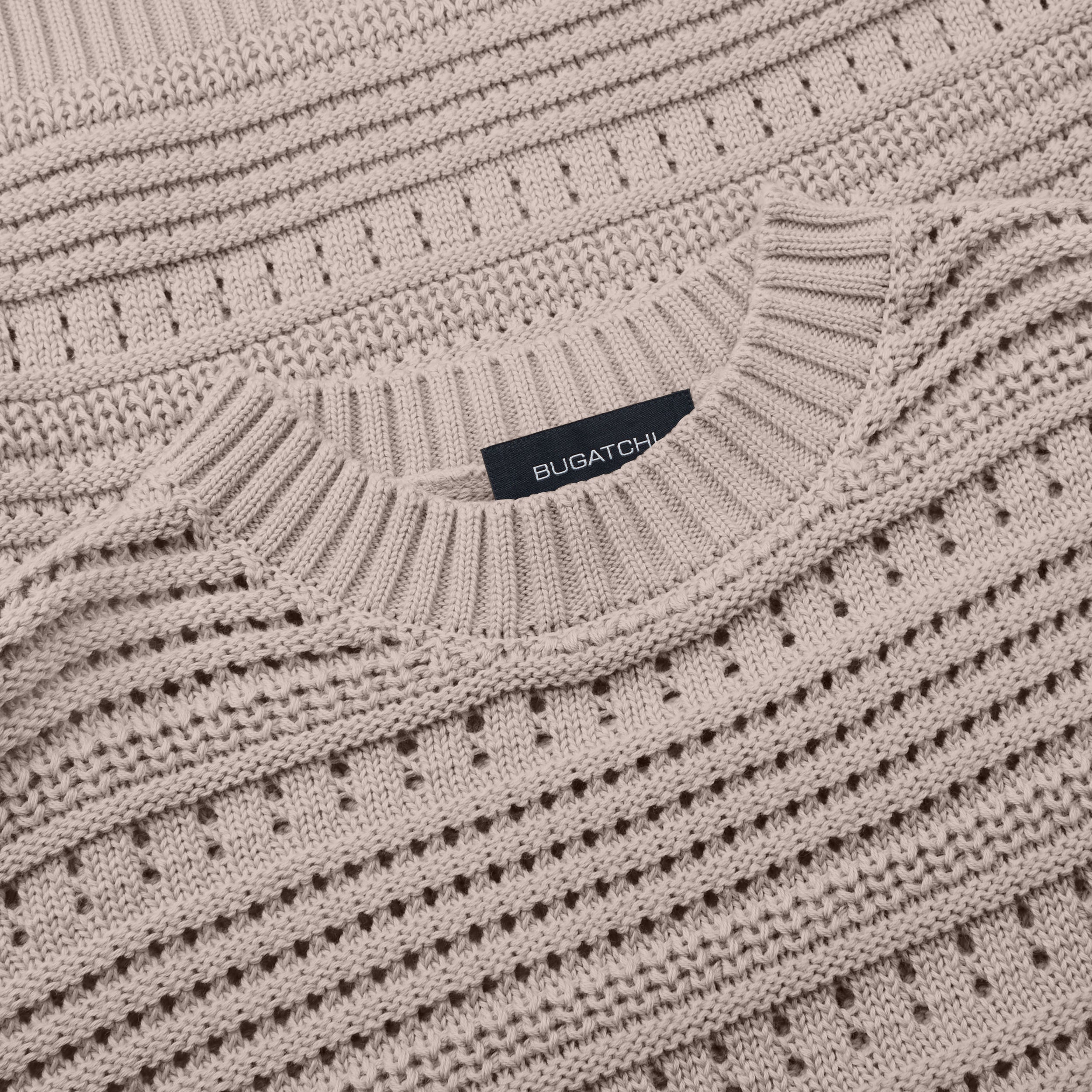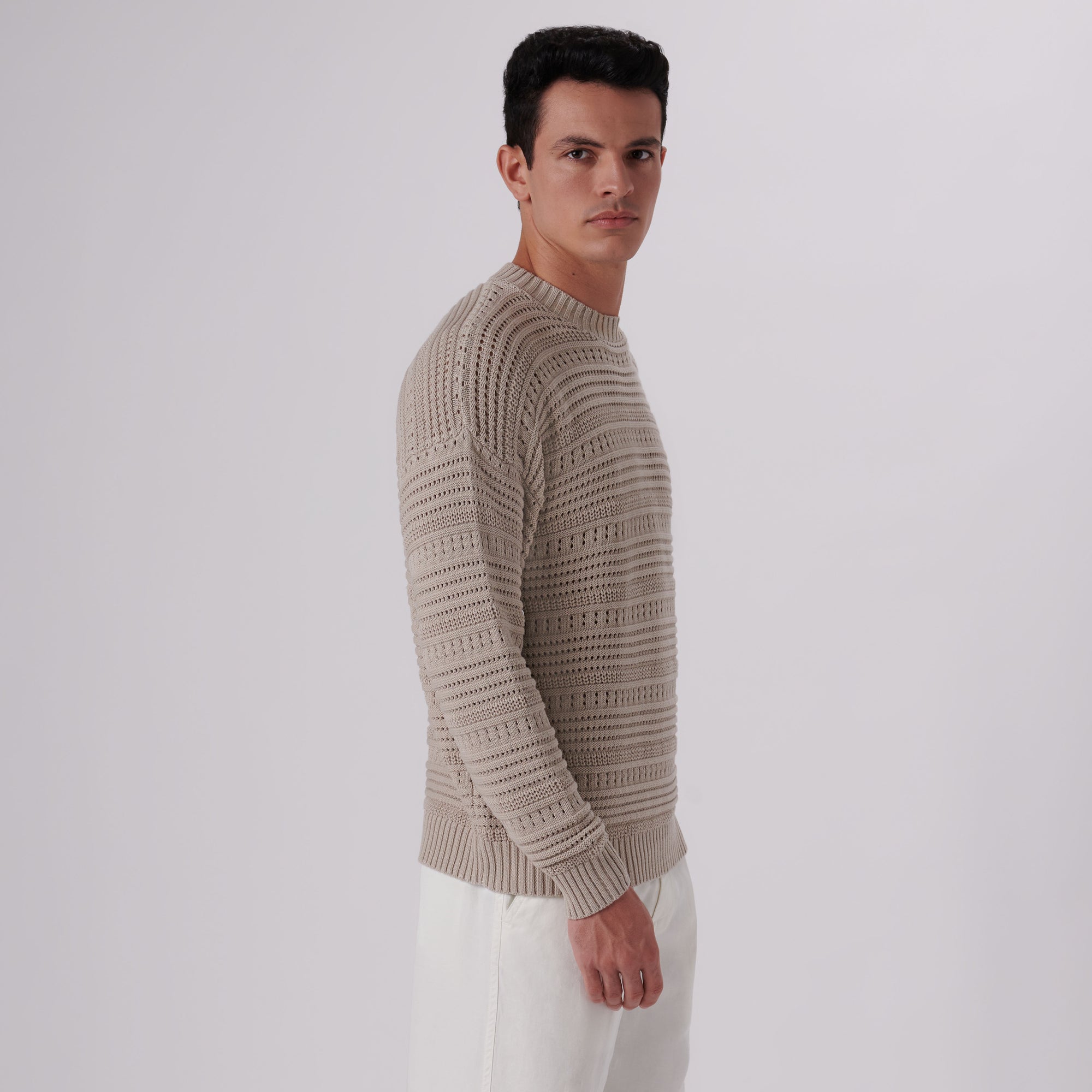 Patterned long-sleeved crew neck sweater in 100% cotton with rib knit collar, cuffs and waistband. Made in Italy.