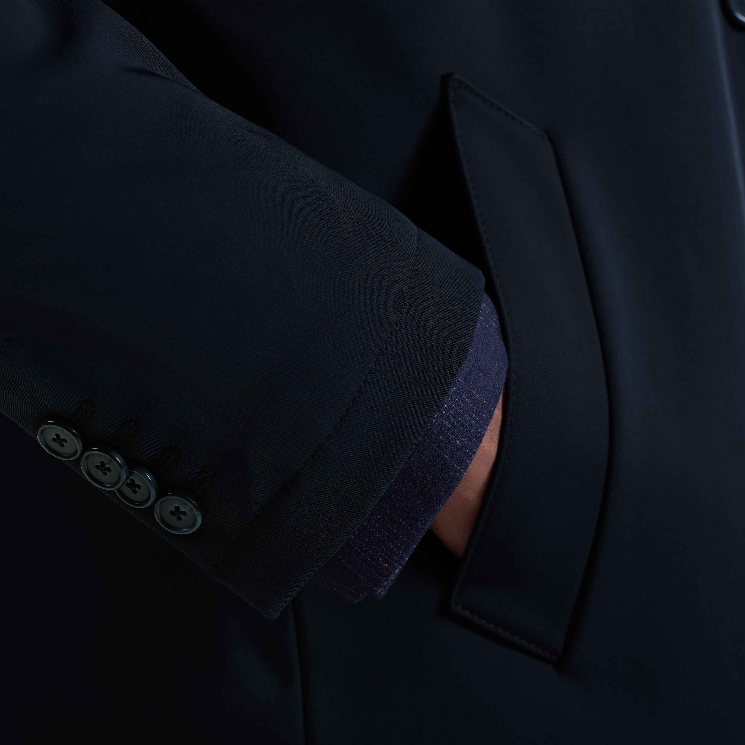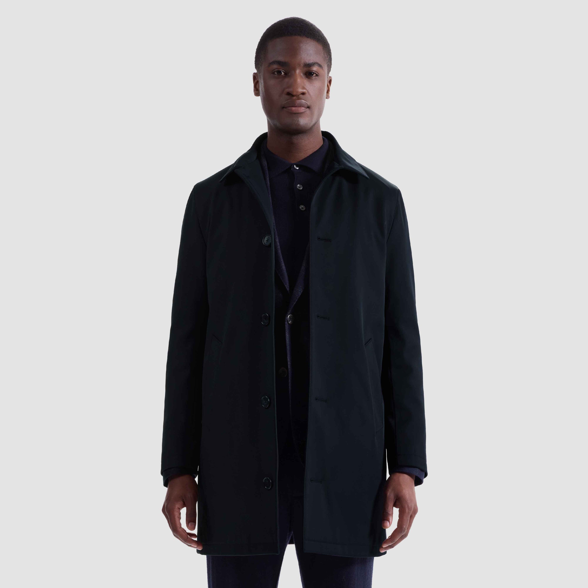 Italian-made car coat crafted from water-repellent performance fabric with a fully lined interior. Featuring a notched collar, full button closure with eco-friendly corozo buttons, and angled welt pockets, this updated classic silhouette is designed for both style and function.