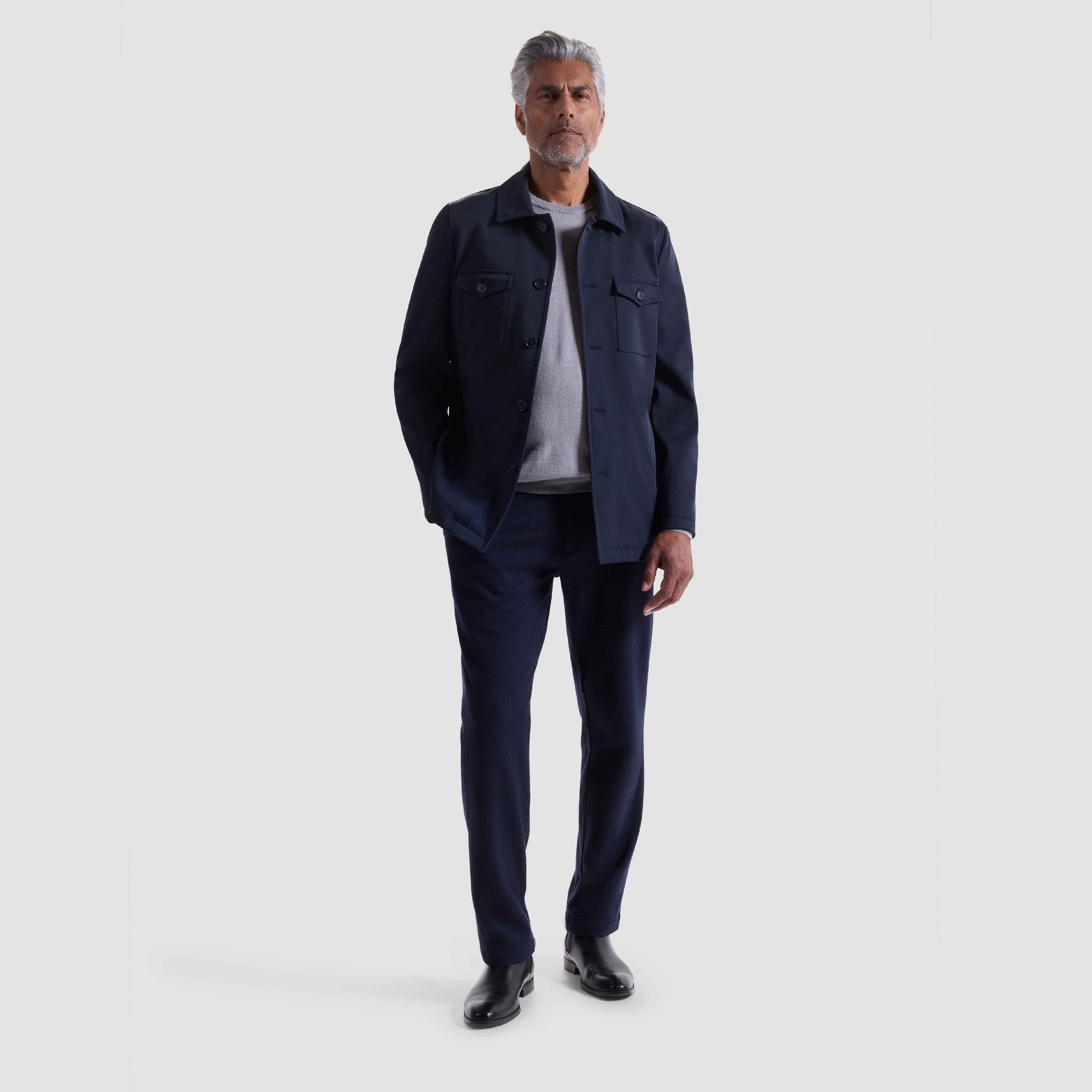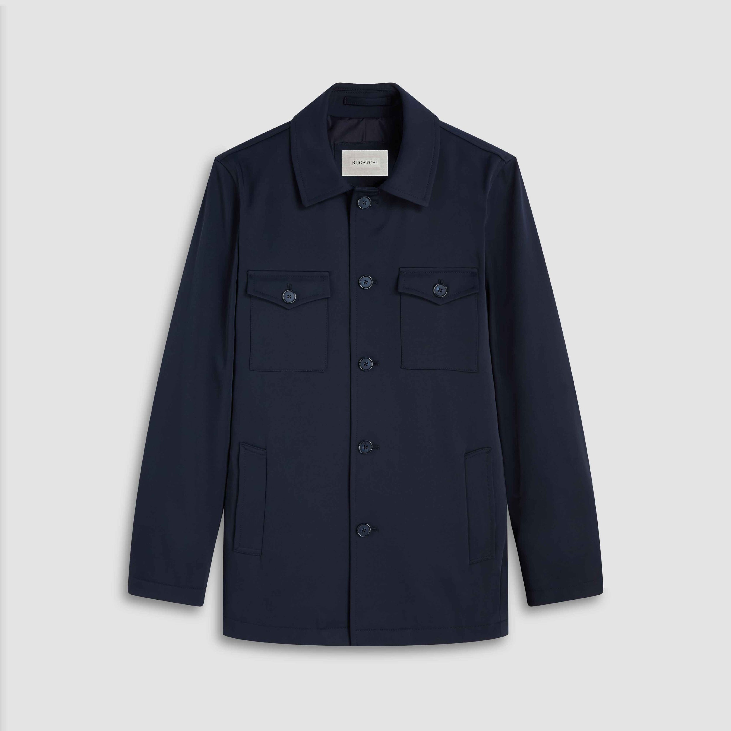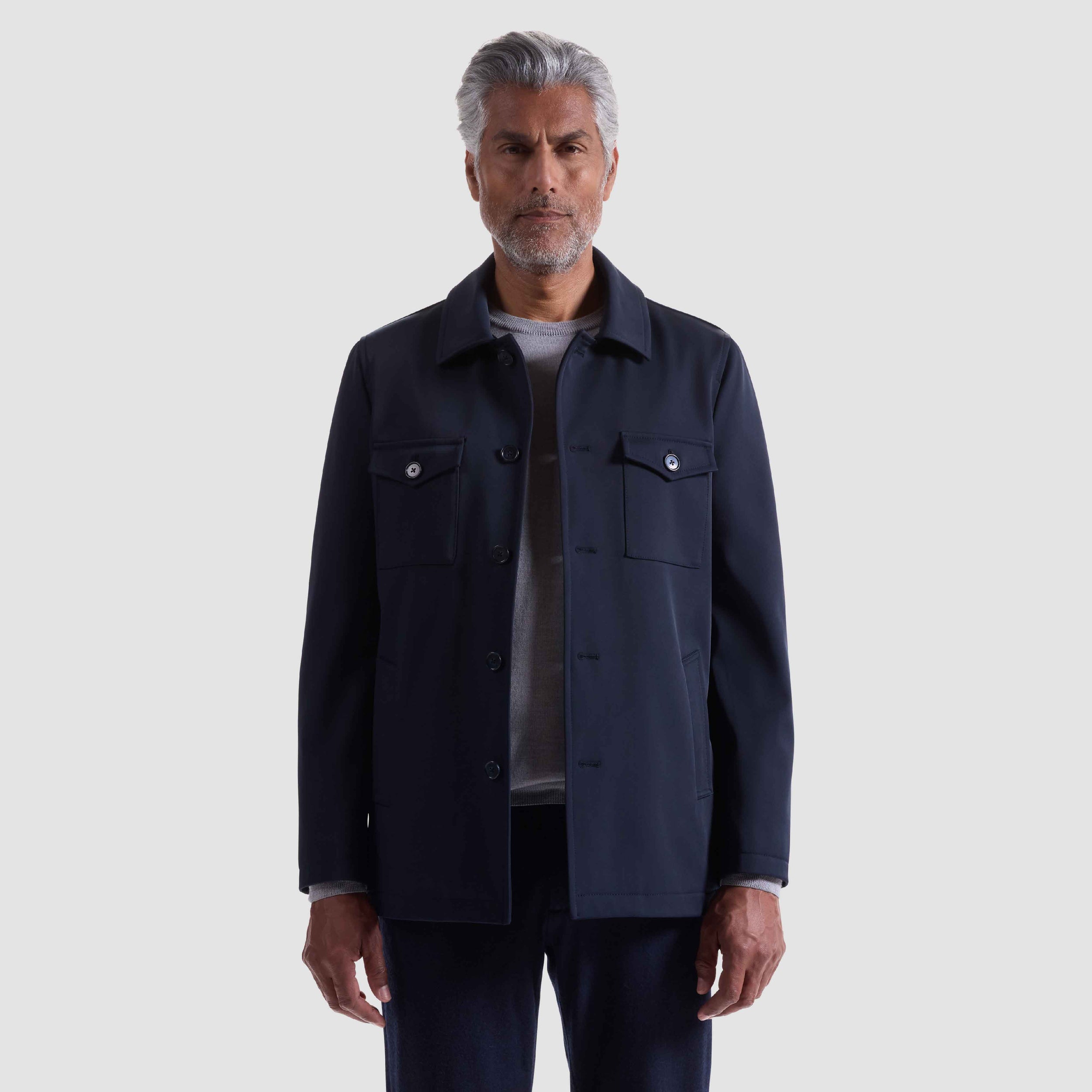 Italian-made field jacket in water-repellent performance fabric with a fully lined interior. Designed with a classic point collar, full button closure, and utilitarian pockets, this versatile piece blends refined style with practical functionality.